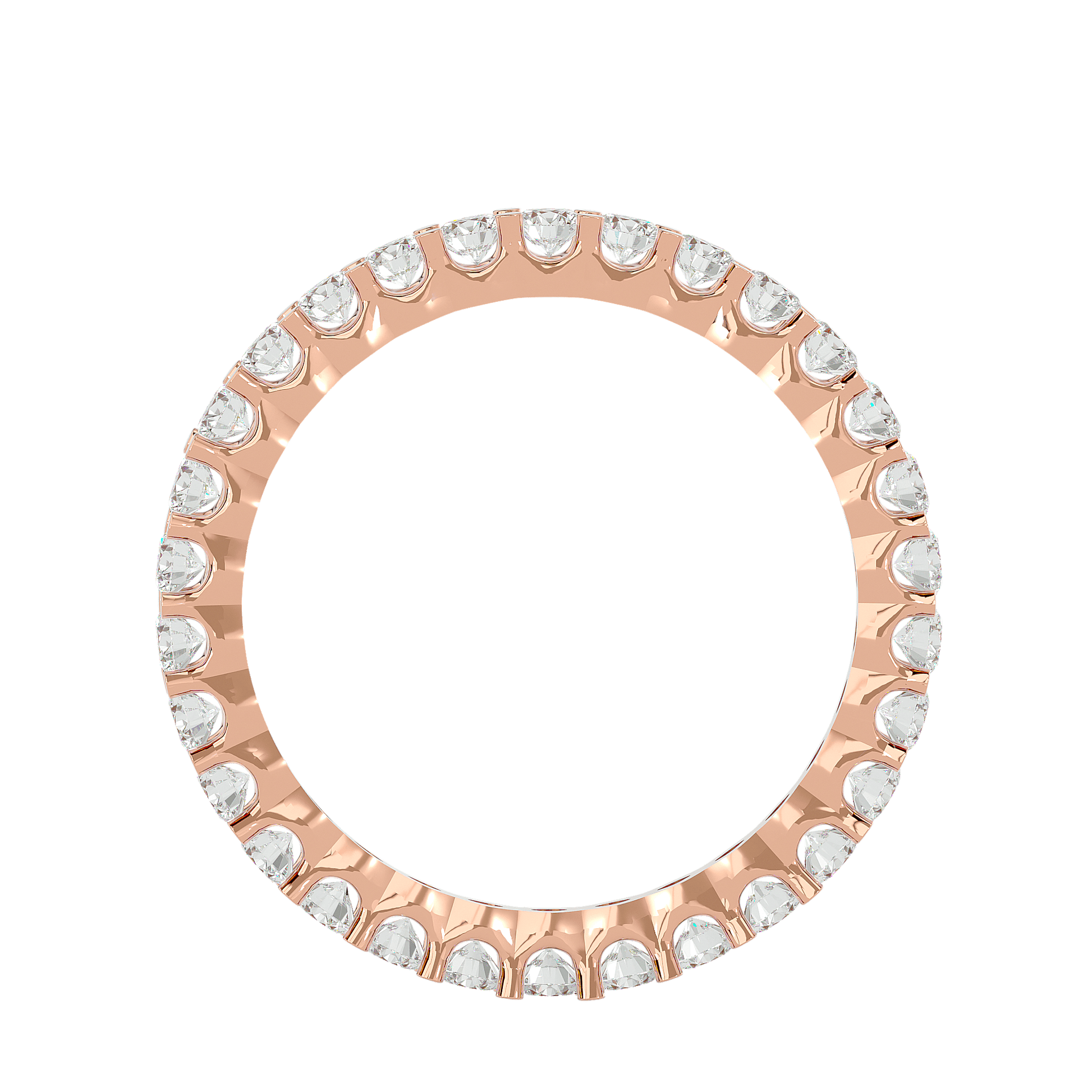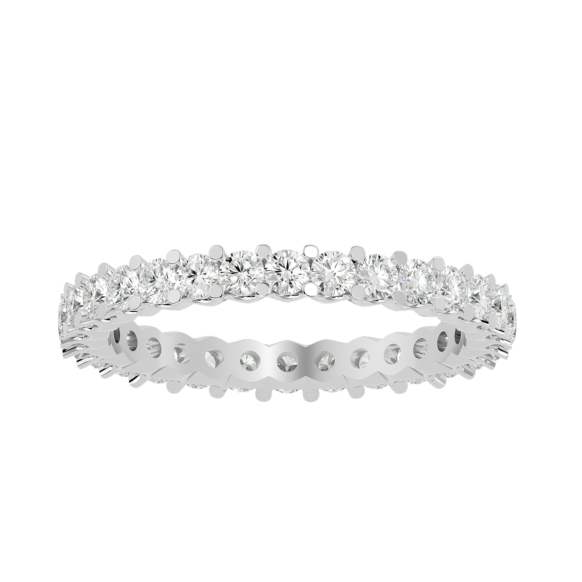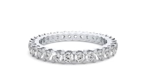 A timeless symbol of brilliance, the Angelique Band features a full eternity of round diamonds, each held in an elegant shared prong setting to maximize light and radiance. Designed for effortless sophistication, its seamless silhouette exudes refinement and grace.
