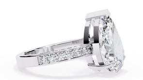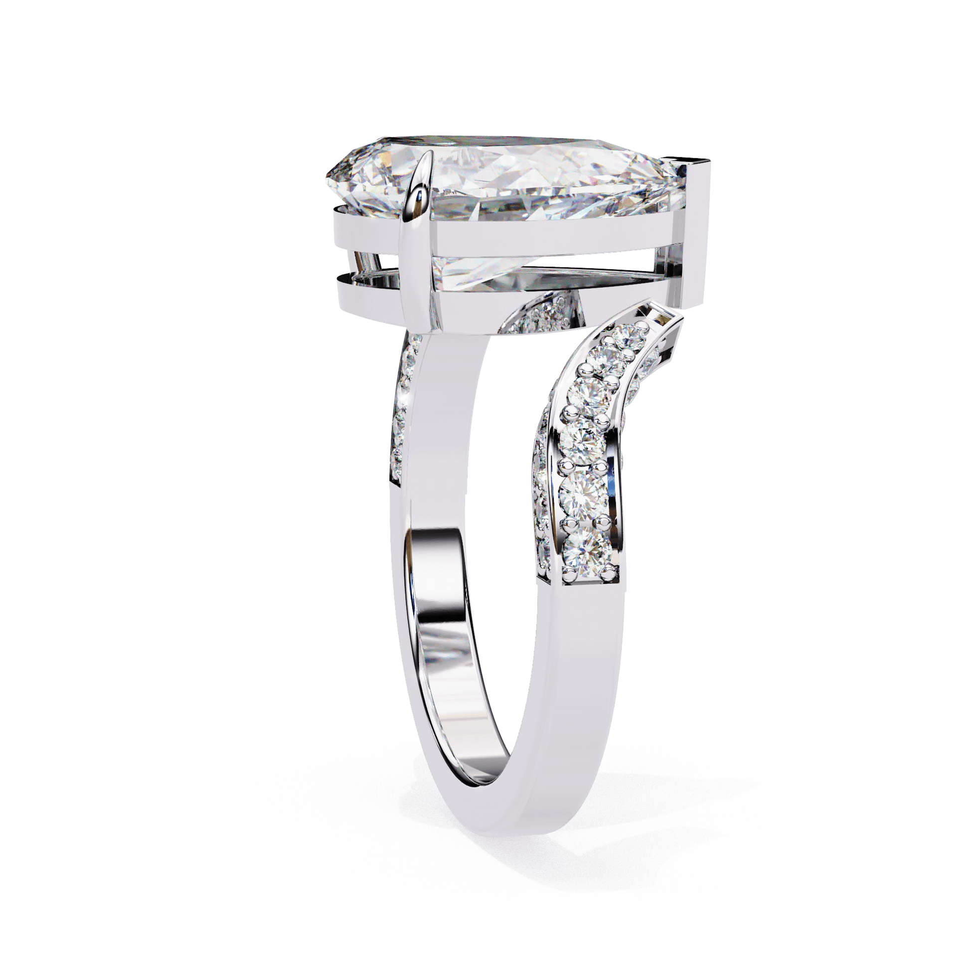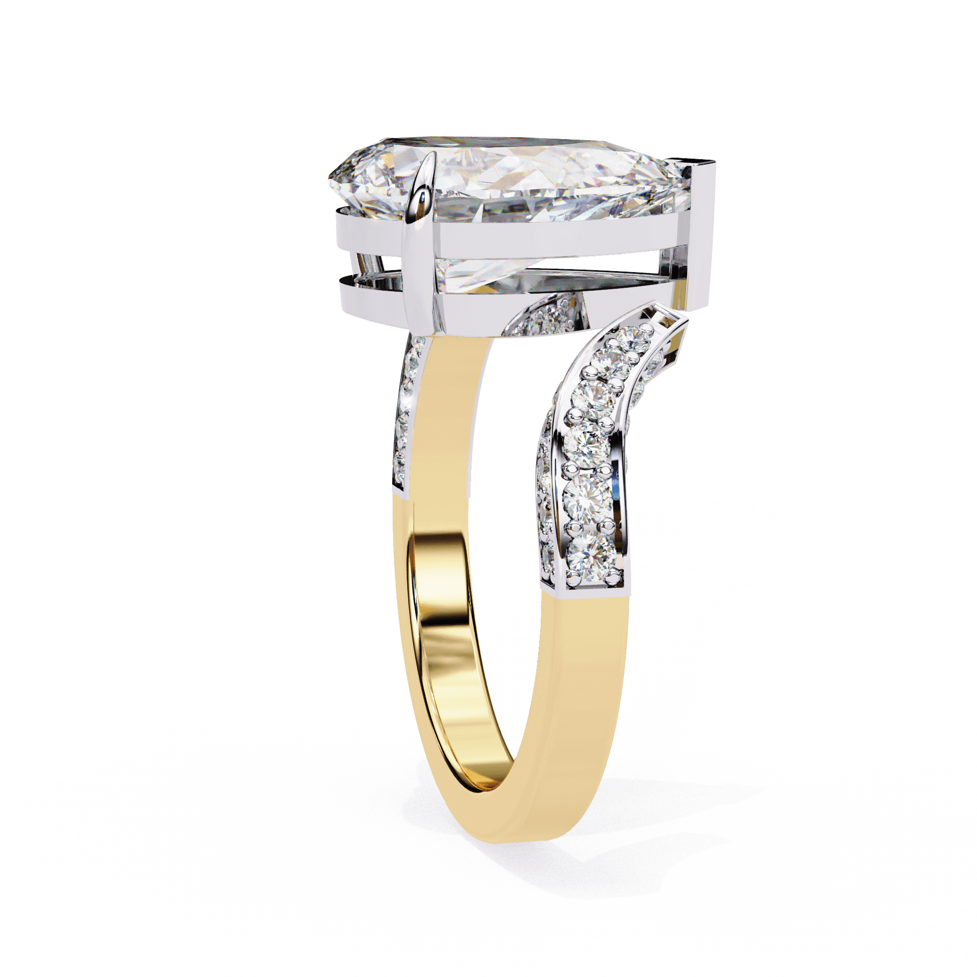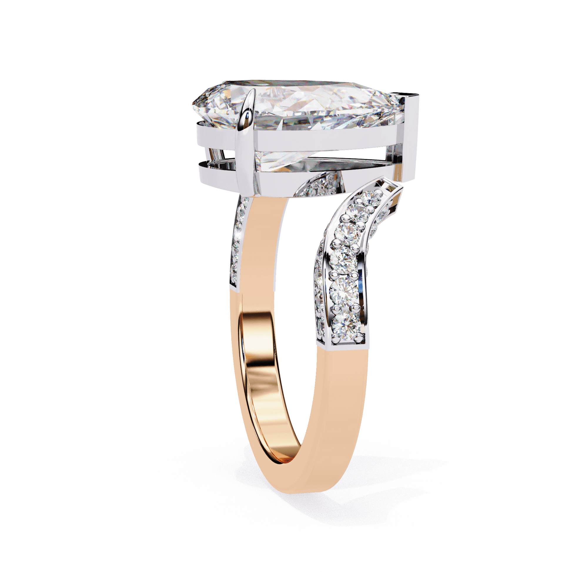 Aria is a masterpiece of elegance and architectural beauty. At its heart, a pear-cut diamond is secured in a delicate 3-claw basket setting, with a V-prong at the point for added protection. The open split shank design adds a sense of airiness and modern sophistication, drawing the eye toward the center stone.