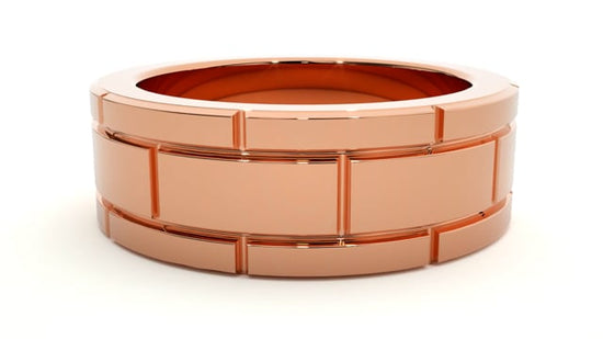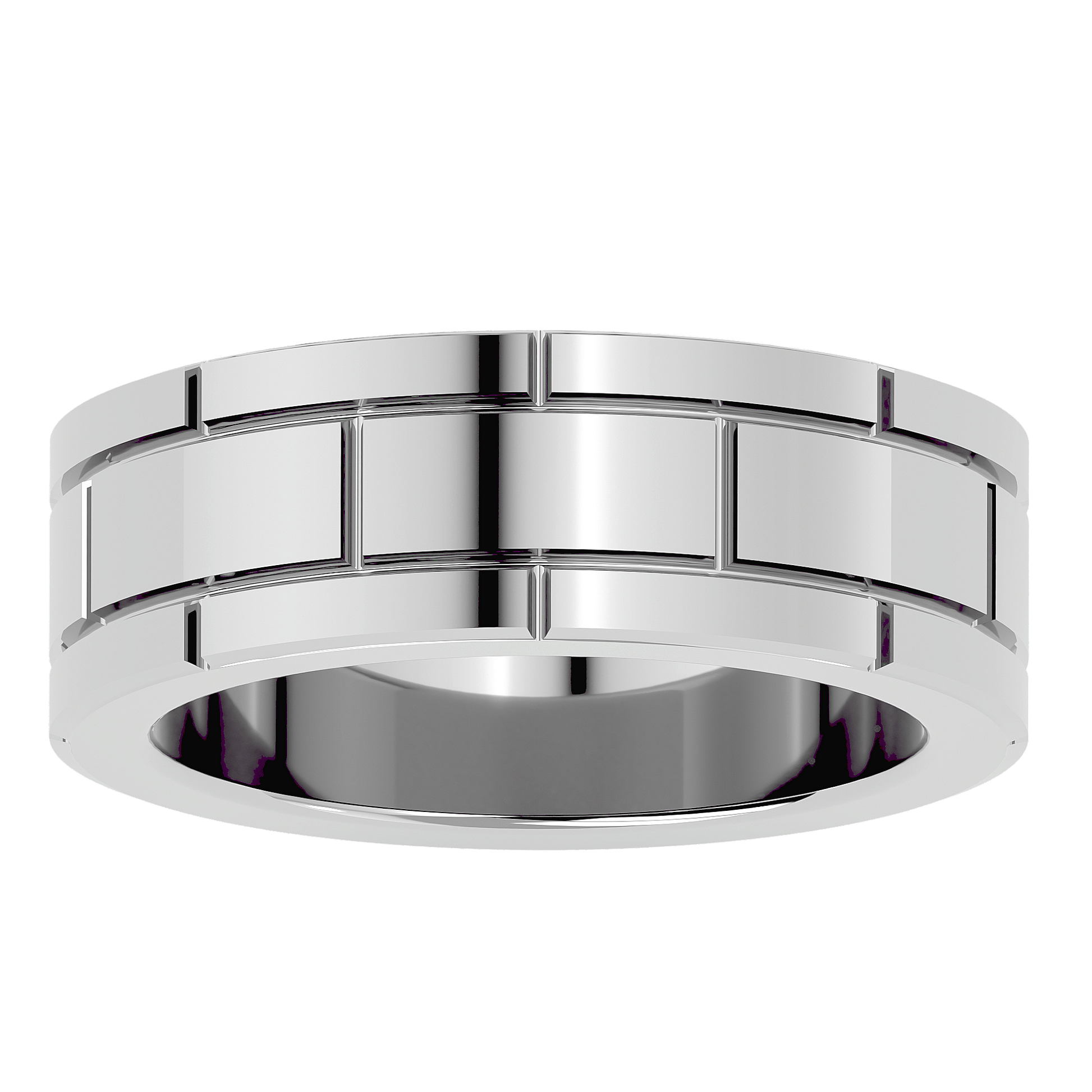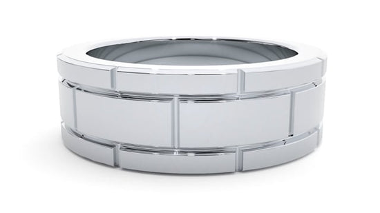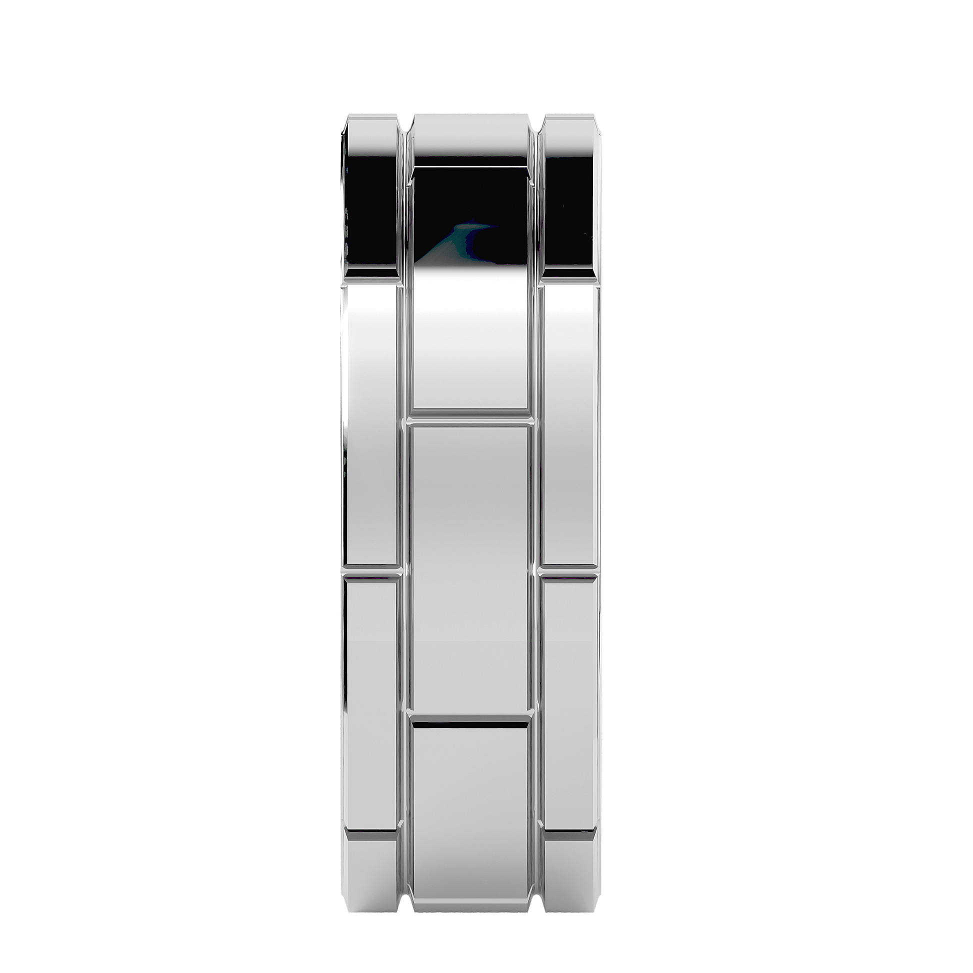 A wedding band crafted for the man who values resilience and structure, Atlas embodies strength in its design. Its distinctive brickwork-inspired pattern symbolizes the unwavering foundation of love and commitment.