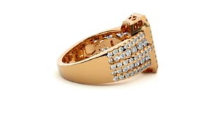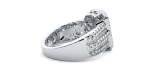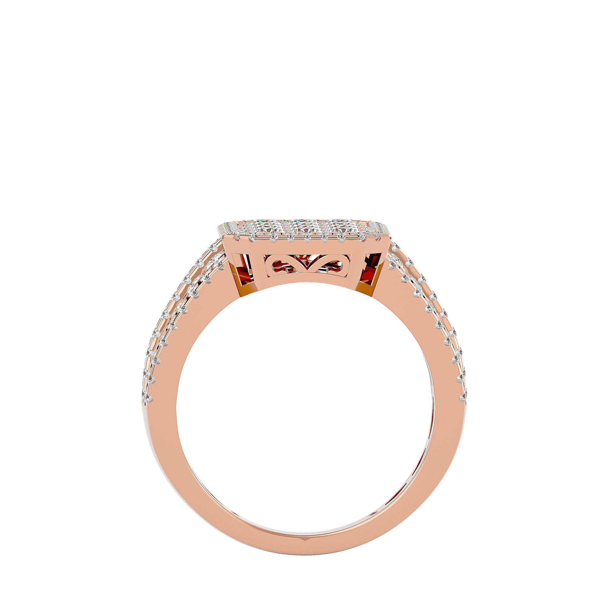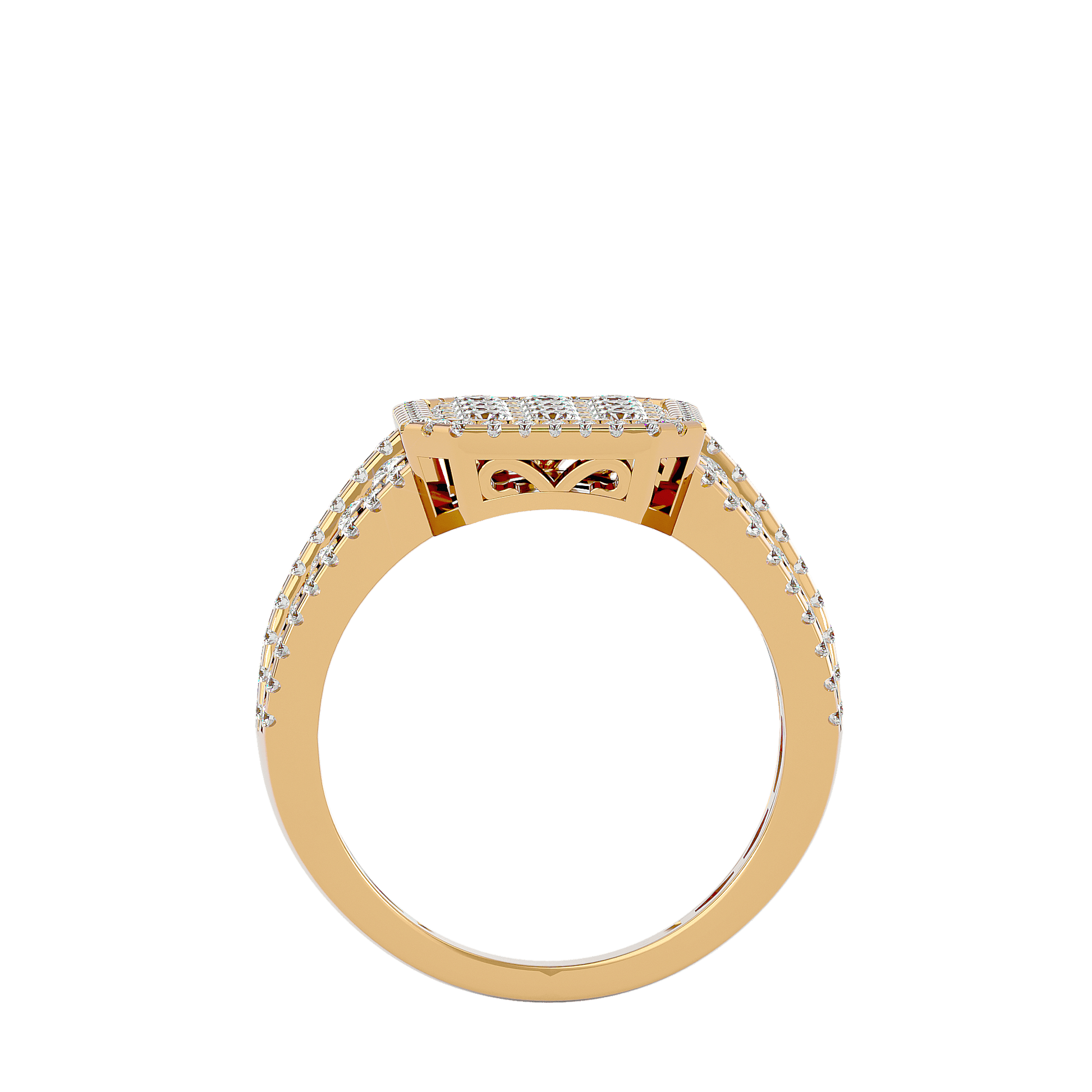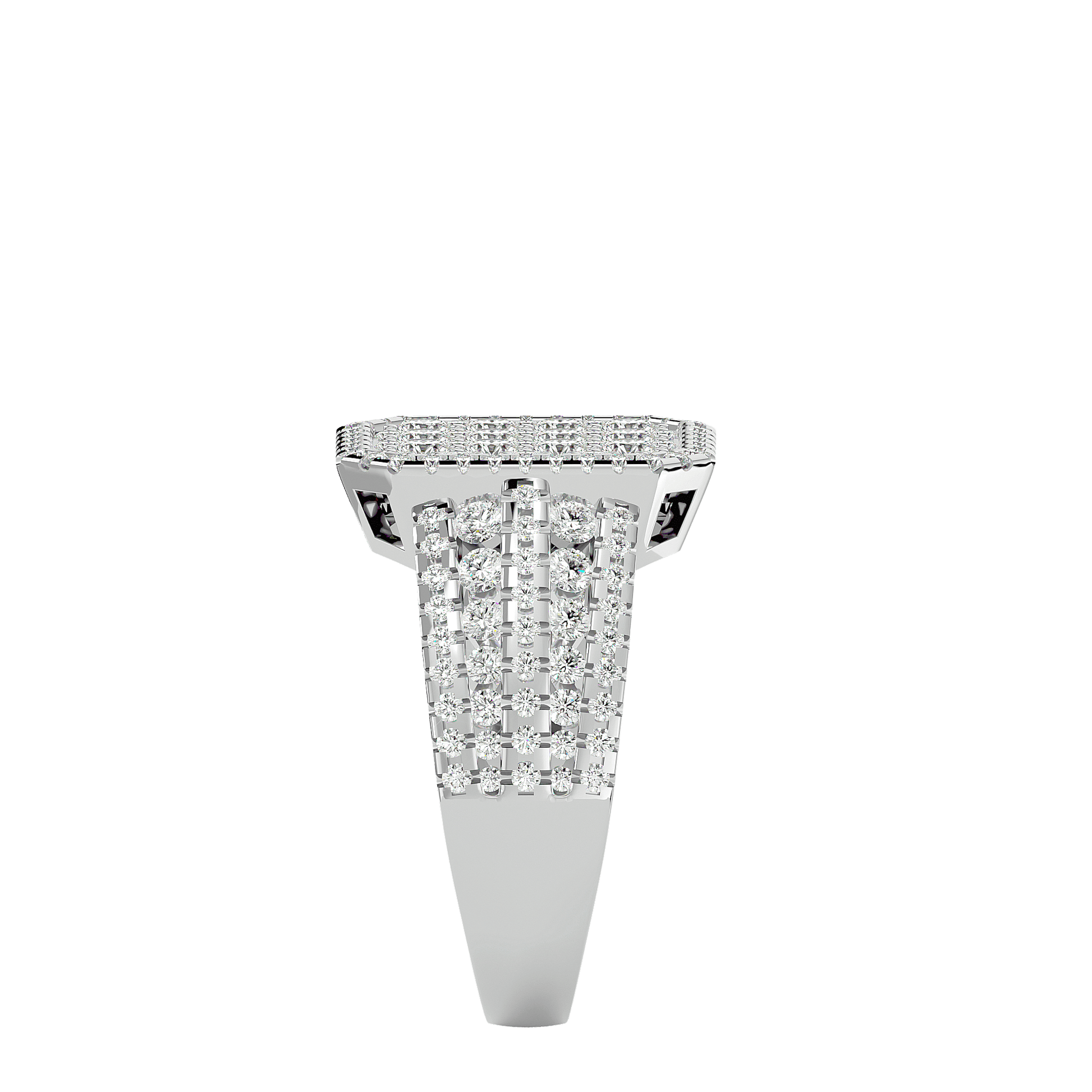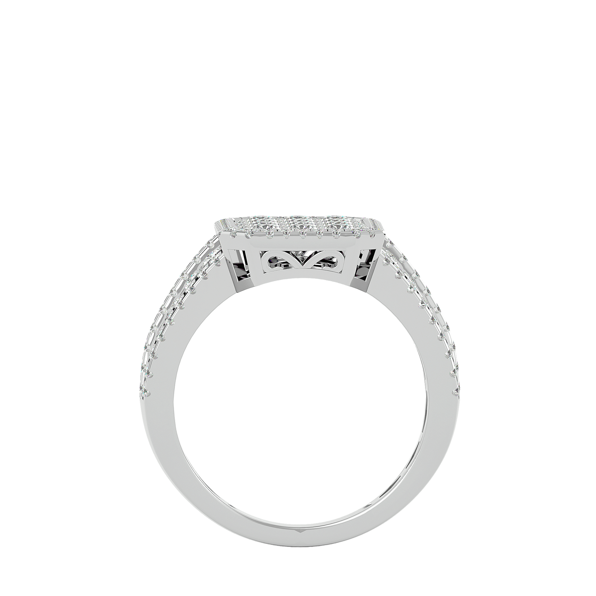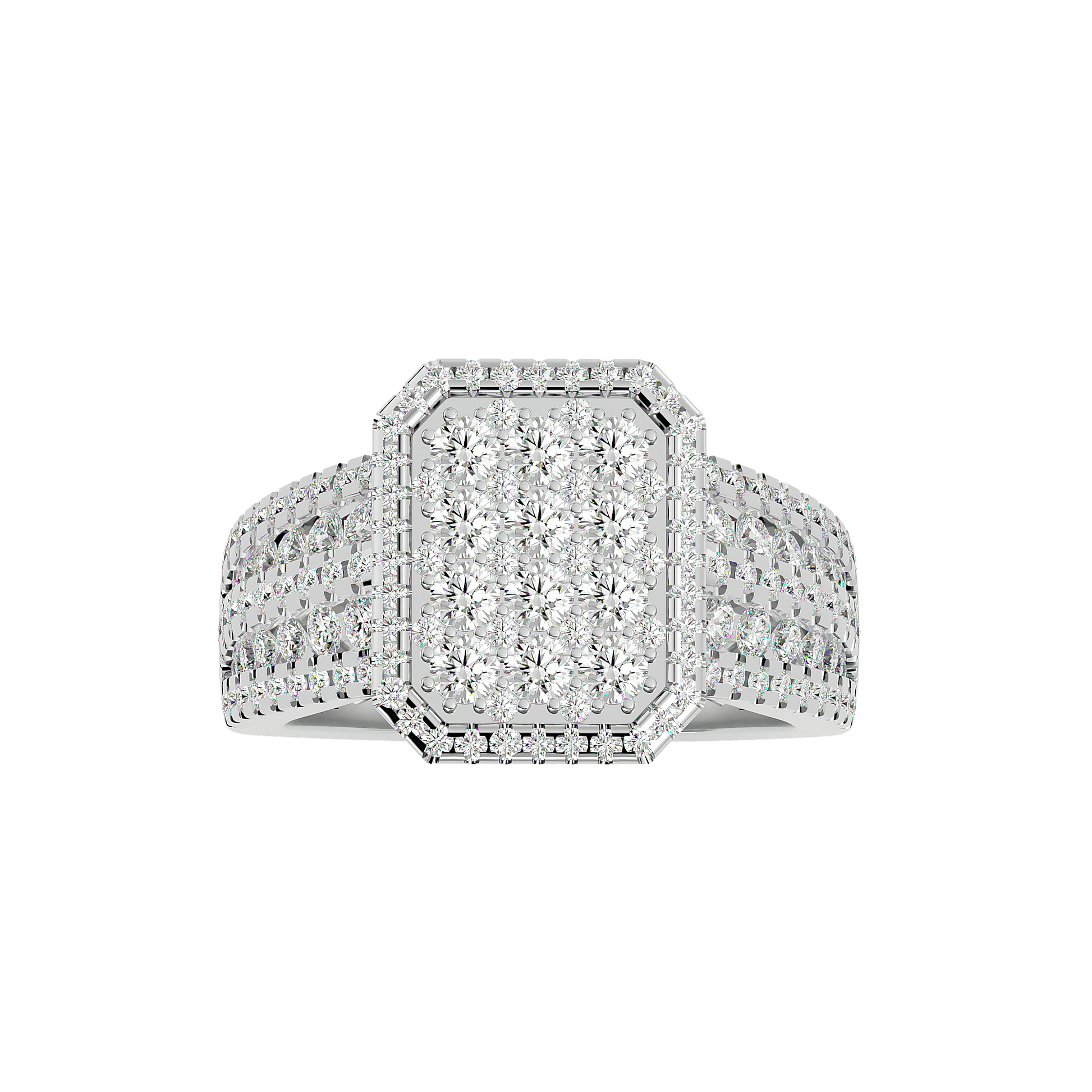 Designed for those who command attention, Aurelius is a ring of unapologetic presence and prestige. A square diamond cluster centerpiece sits atop a single pavé halo, amplifying its brilliance. The multi-row pavé band completes the design, ensuring a look of refined strength.