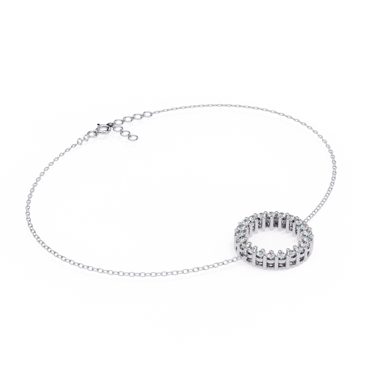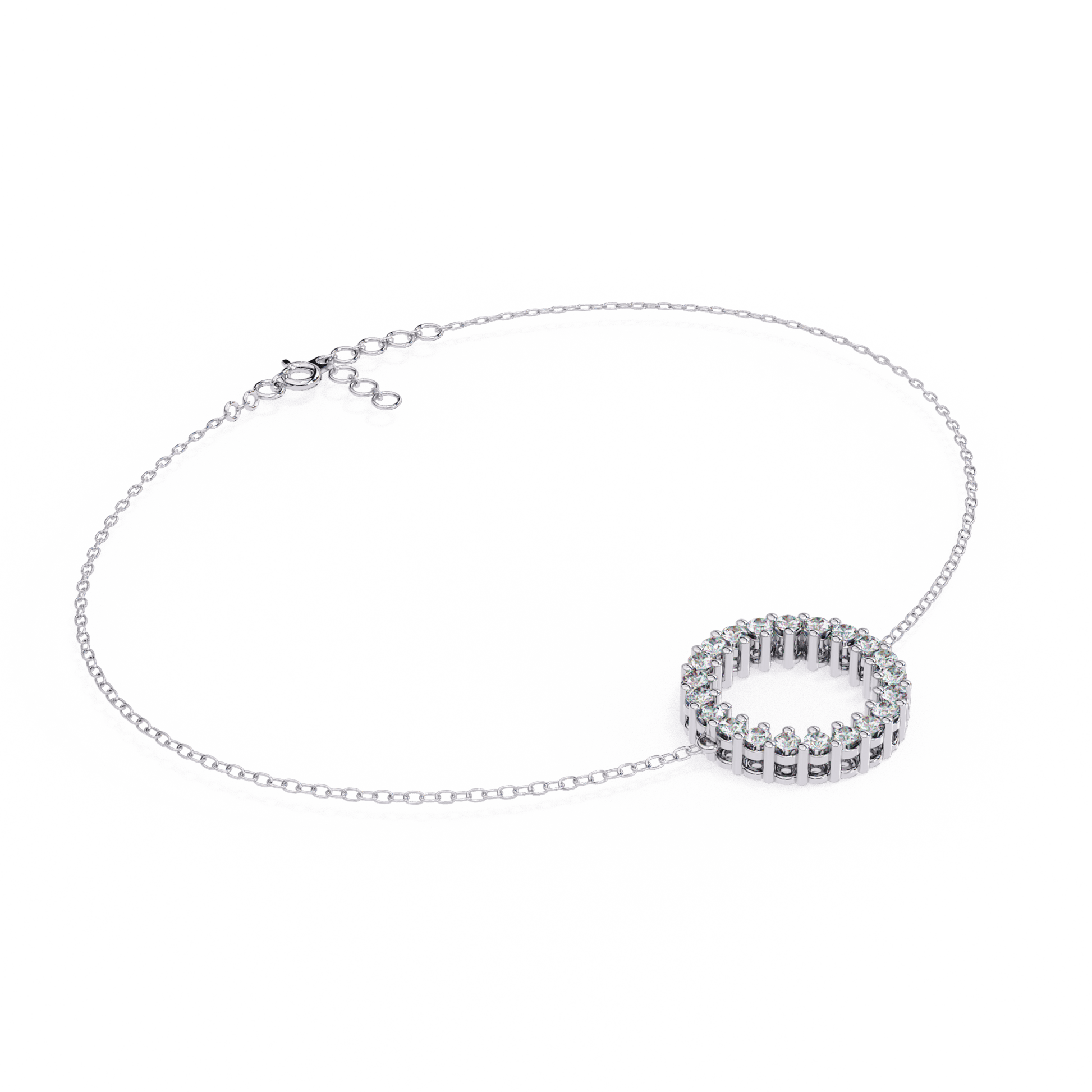 Avi is a strikingly modern take on geometric elegance. A perfect circle of round brilliant diamonds, offering dimension from every angle. Suspended by her chain, Avi pairs structure with minimalism for a distinctive look that’s both refined and effortlessly versatile.
