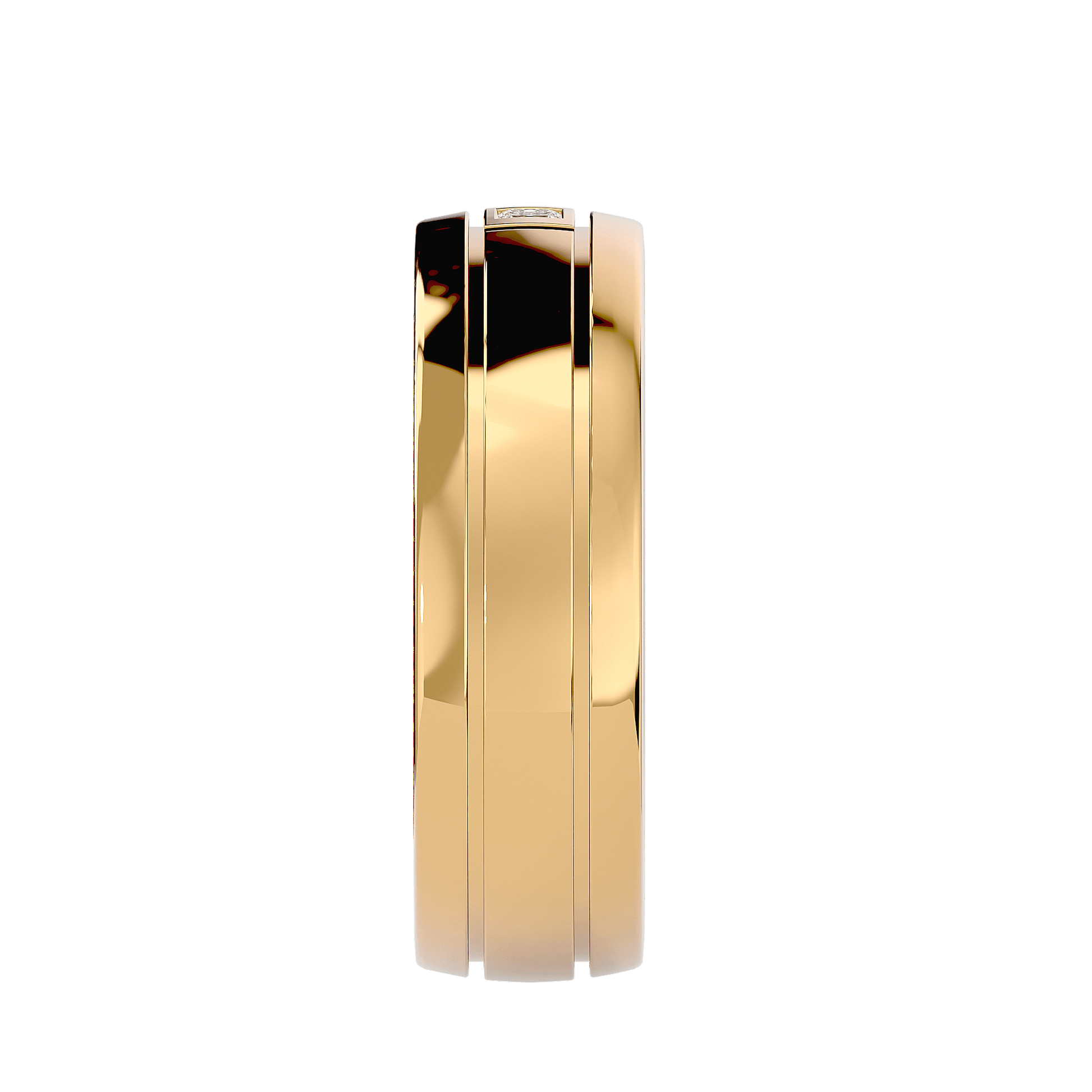 Crafted for those who appreciate clean lines and modern design, Caspian features a dual-channel cut that enhances its bold, polished look. A princess-cut diamond is set within a squared channel, creating a striking focal point that blends strength with sophistication.