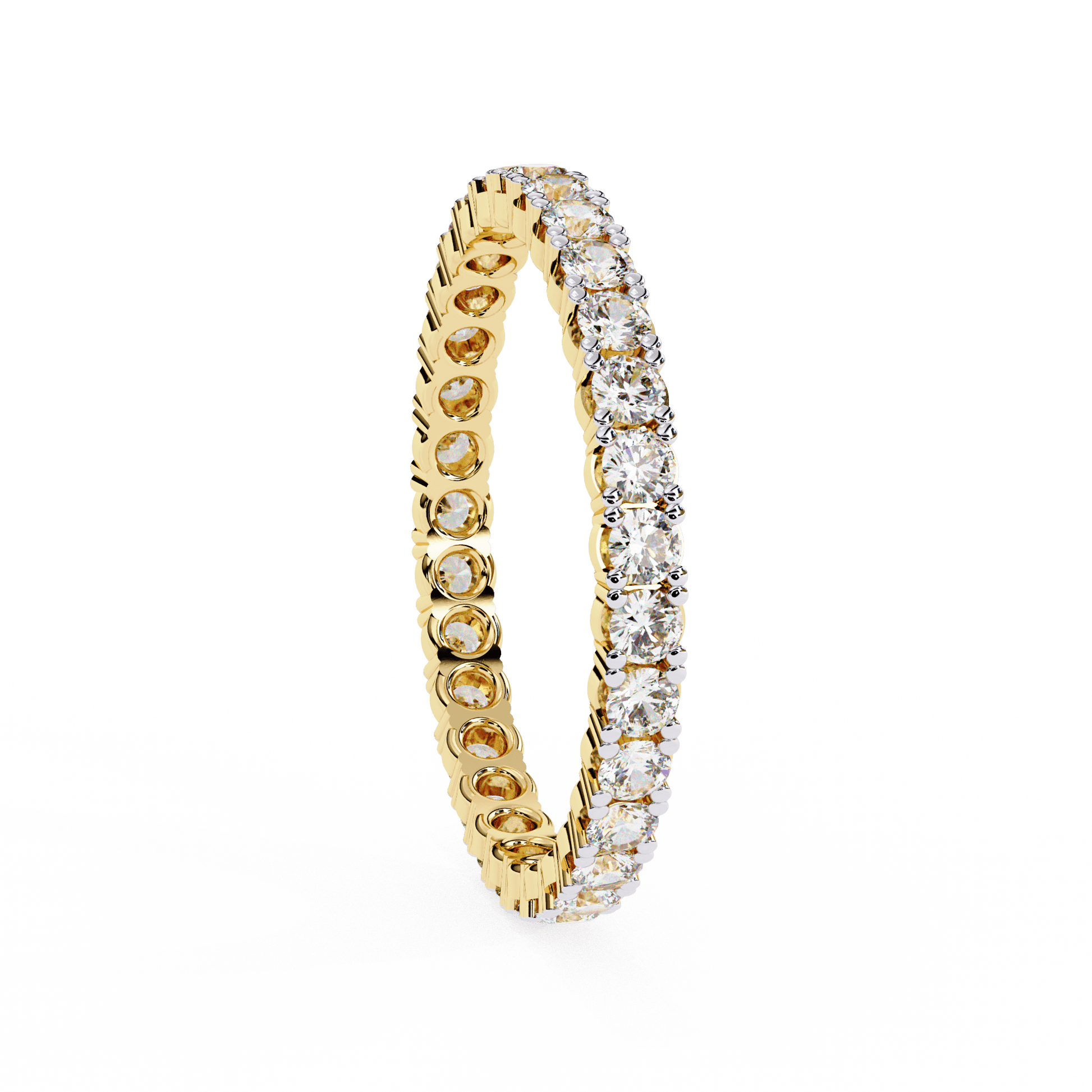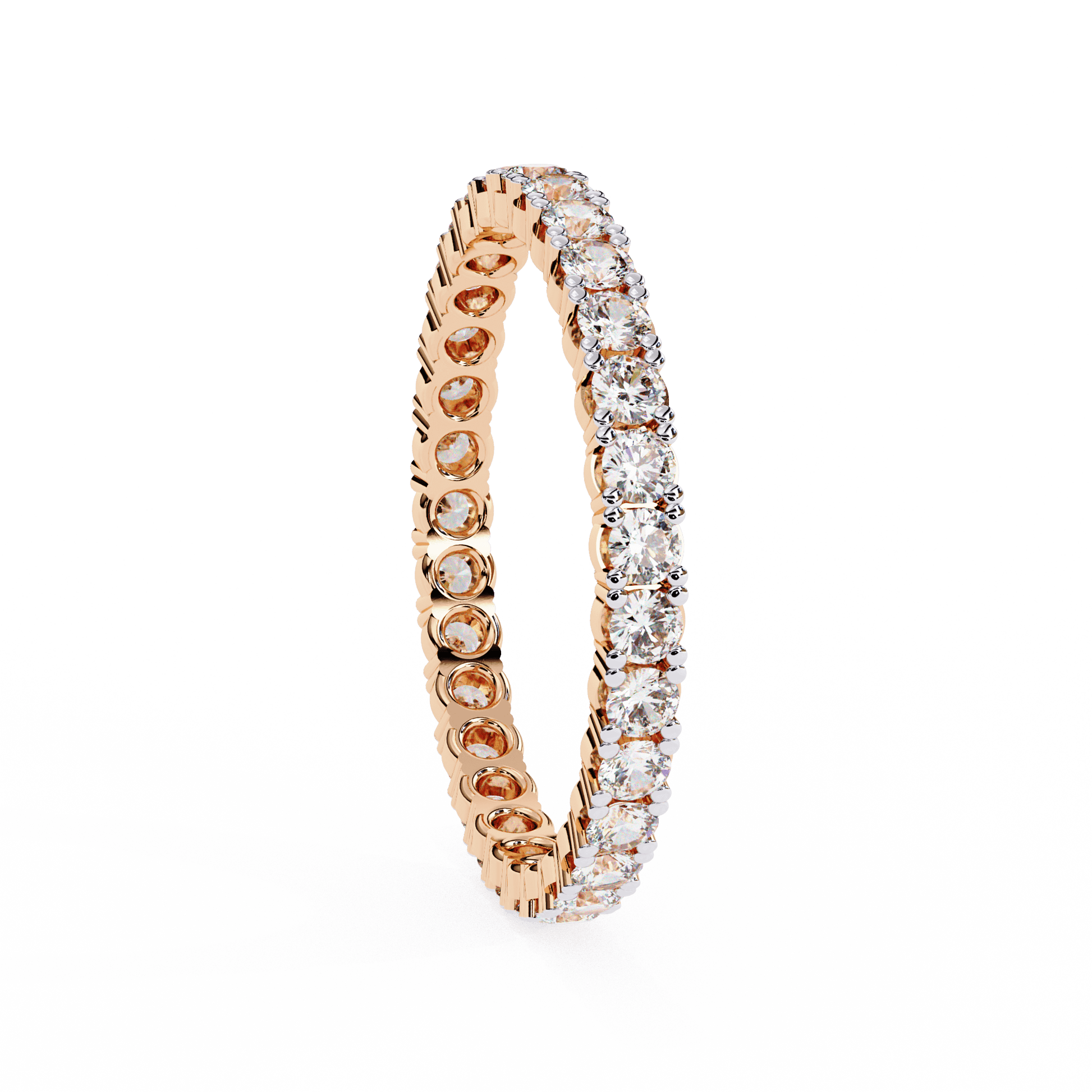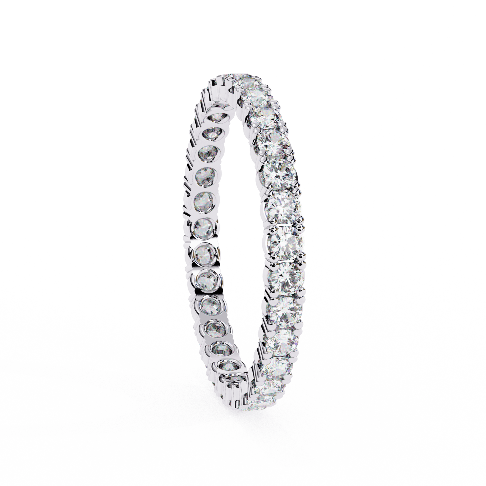 A timeless expression of brilliance, Colette is a refined full eternity band designed to captivate with its effortless sparkle. Each round diamond is meticulously secured by four prongs, allowing light to dance across every facet.