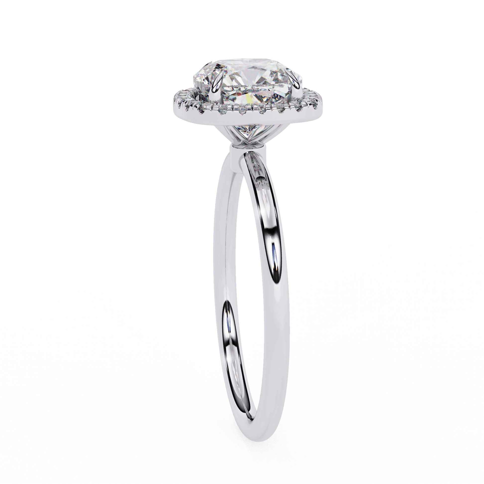 Encircling the center stone, a shimmering halo of diamonds enhances her brilliance, creating a soft, romantic glow. Daphne is a timeless design—graceful, sophisticated, and effortlessly radiant.