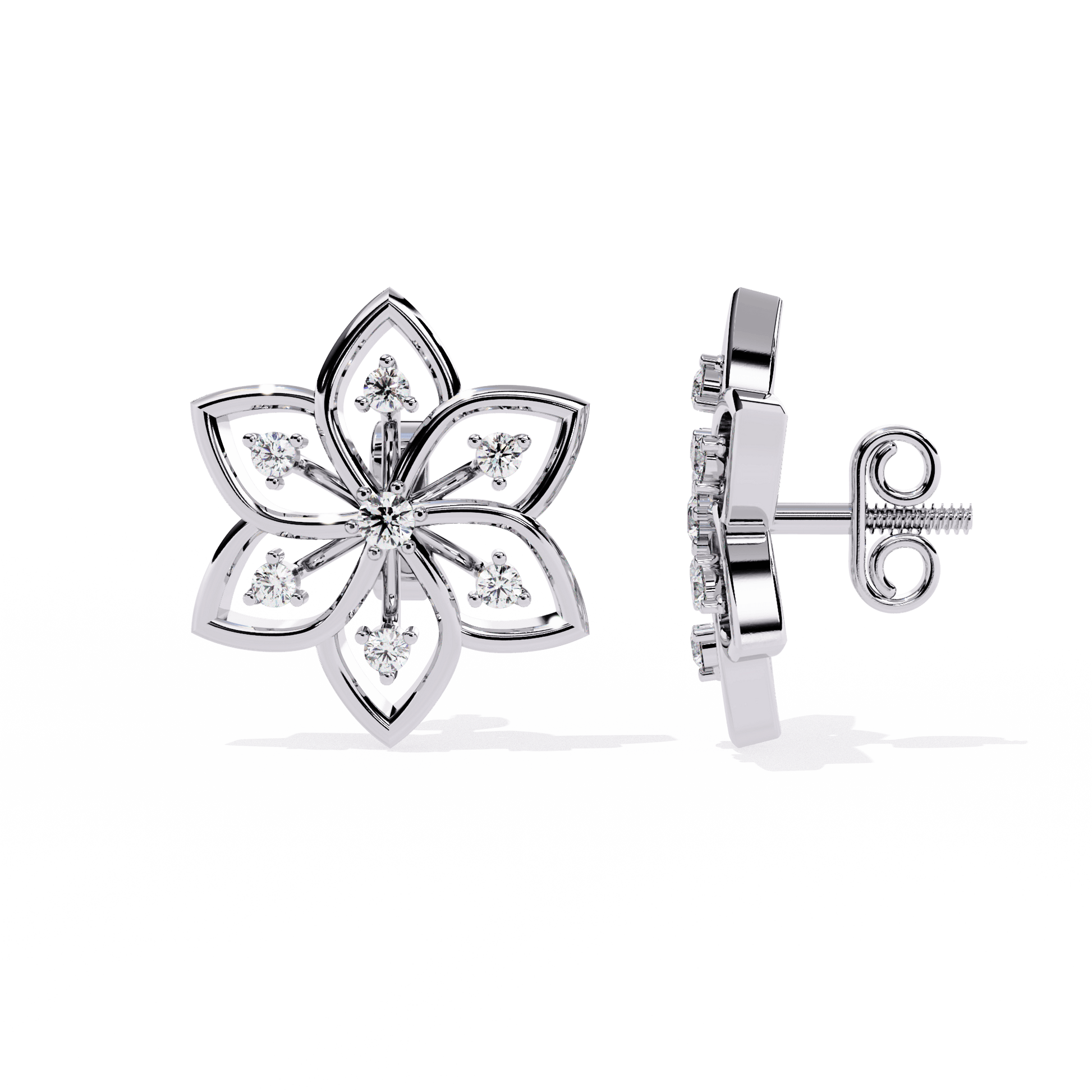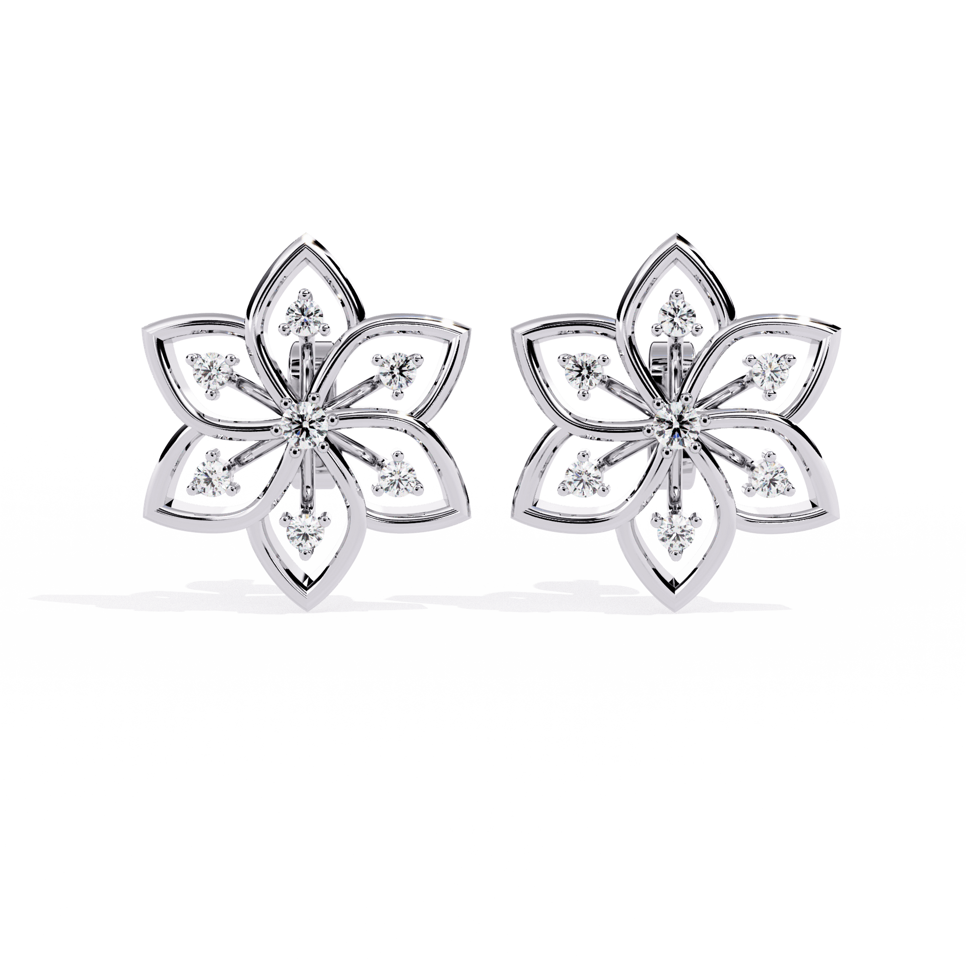– Floral silhouette with open petal structure and diamond accents