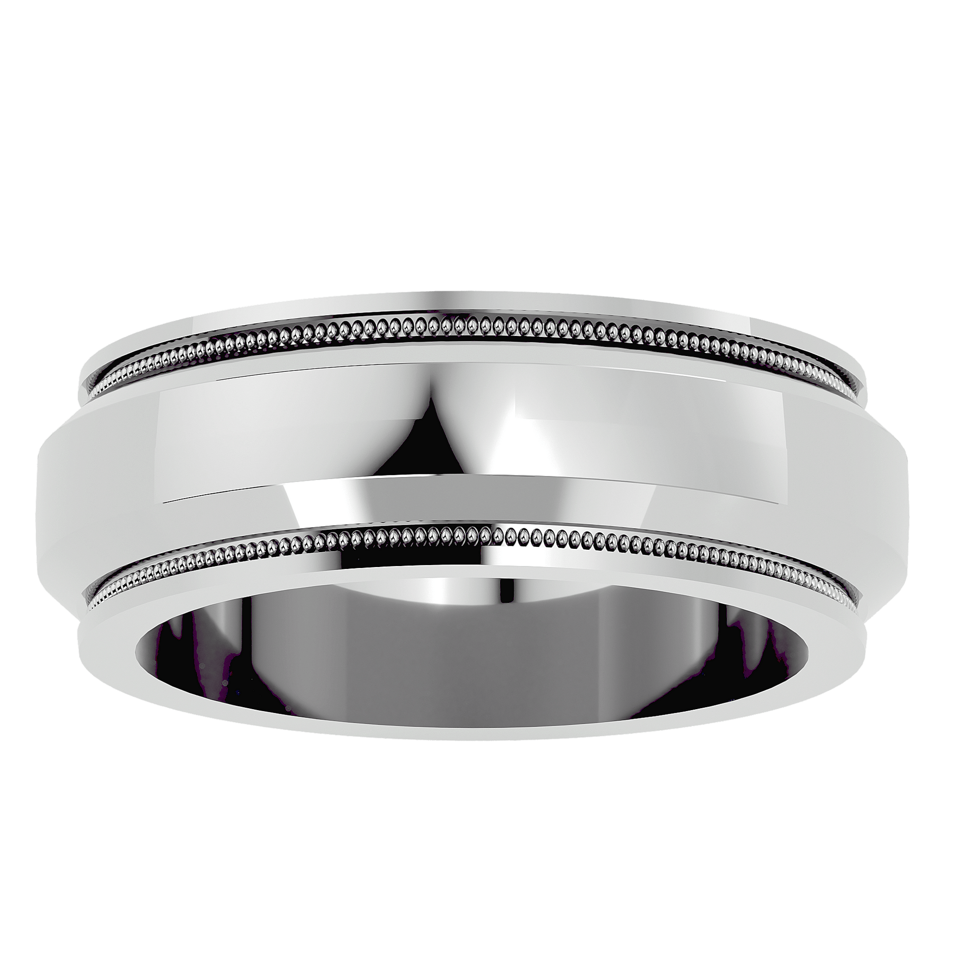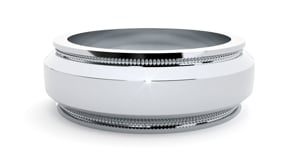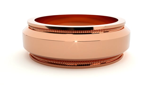 A wedding band of distinction, Dominic is crafted for the man who values understated sophistication. Featuring a polished surface accented by intricate milgrain detailing, this ring blends tradition with contemporary refinement. The structured grooves add depth and character, while the smooth finish ensures a sleek, comfortable fit.