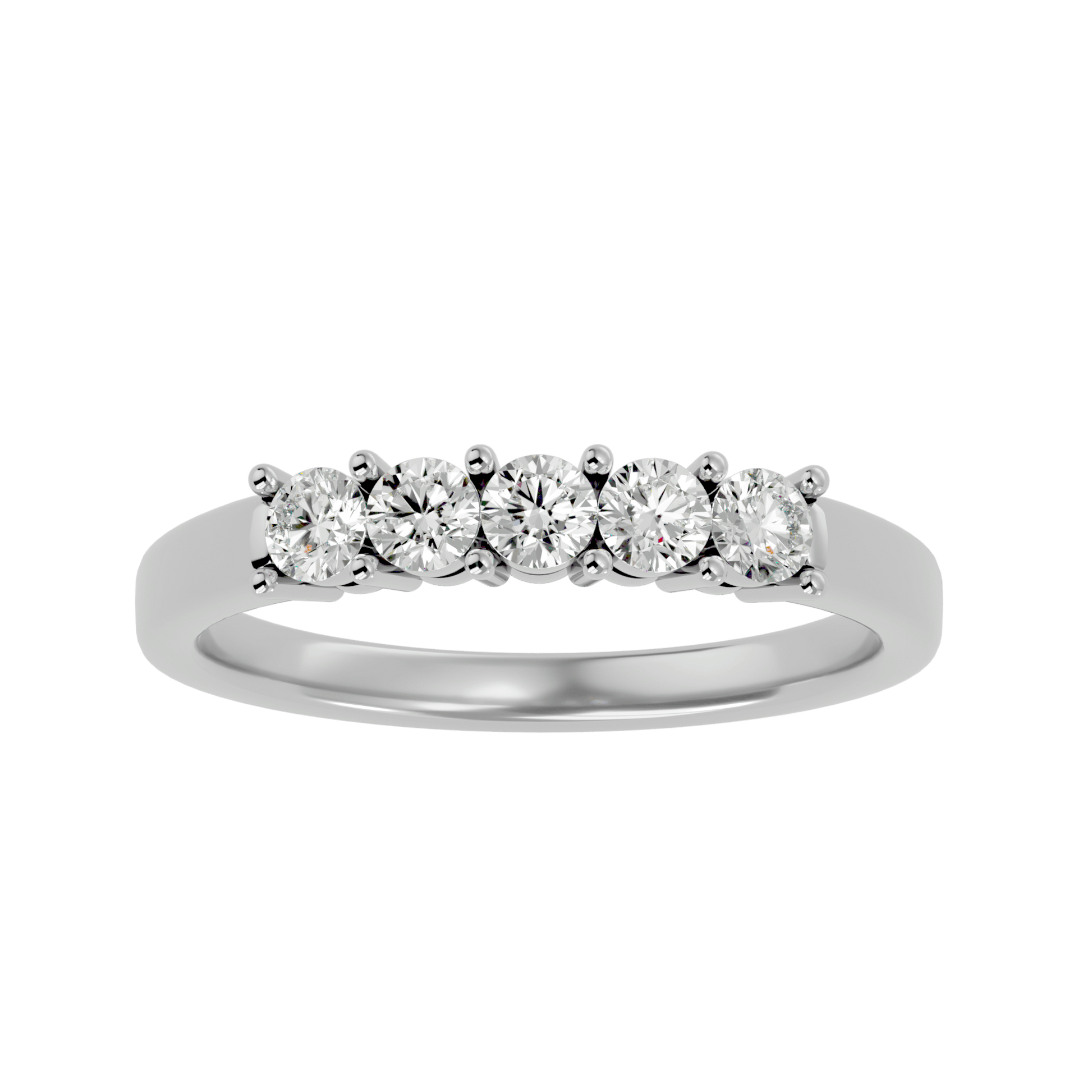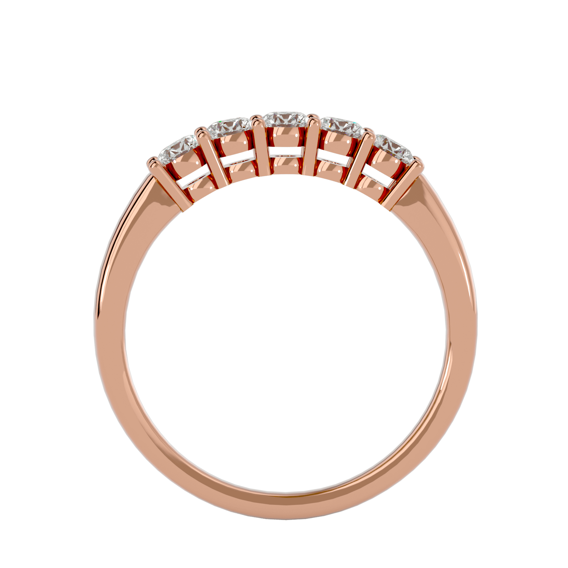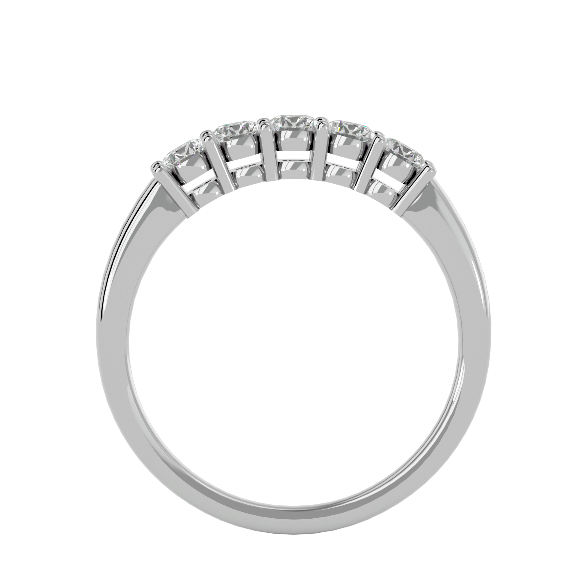 A refined expression of brilliance, Dominique features five stunning diamonds in a basket setting maximizing light exposure for exceptional sparkle. The subtly elevated cathedral-inspired design enhances each stone’s presence while ensuring a secure and elegant structure.