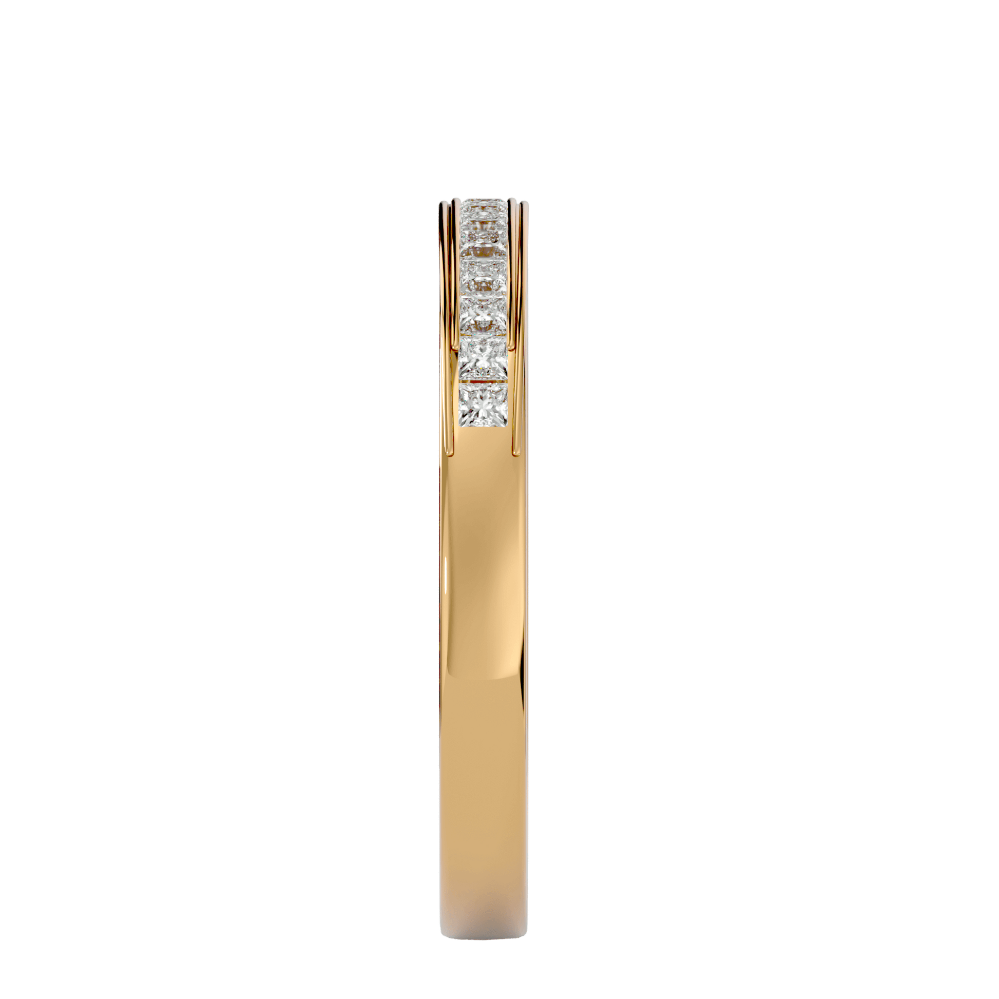 Gracefully embodying timeless elegance, Elisa is a refined 1/3 eternity band featuring princess-cut diamonds in a sleek channel setting. The brilliance of each diamond is accentuated by a delicately crafted filigree pattern on the inner gallery, adding a touch of vintage charm.