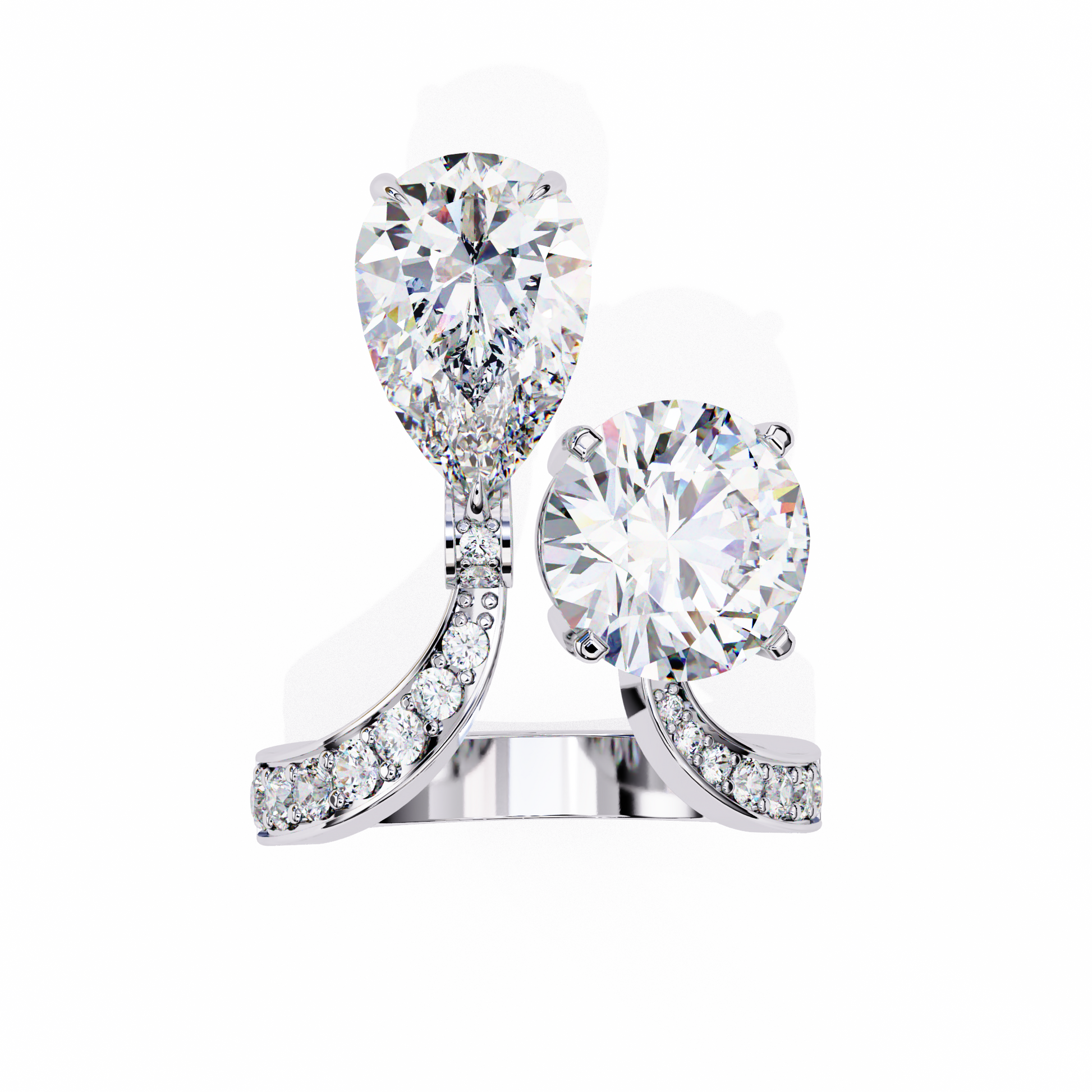 Note: Ring features a 3ct Pear and a 4ct Round cut diamond