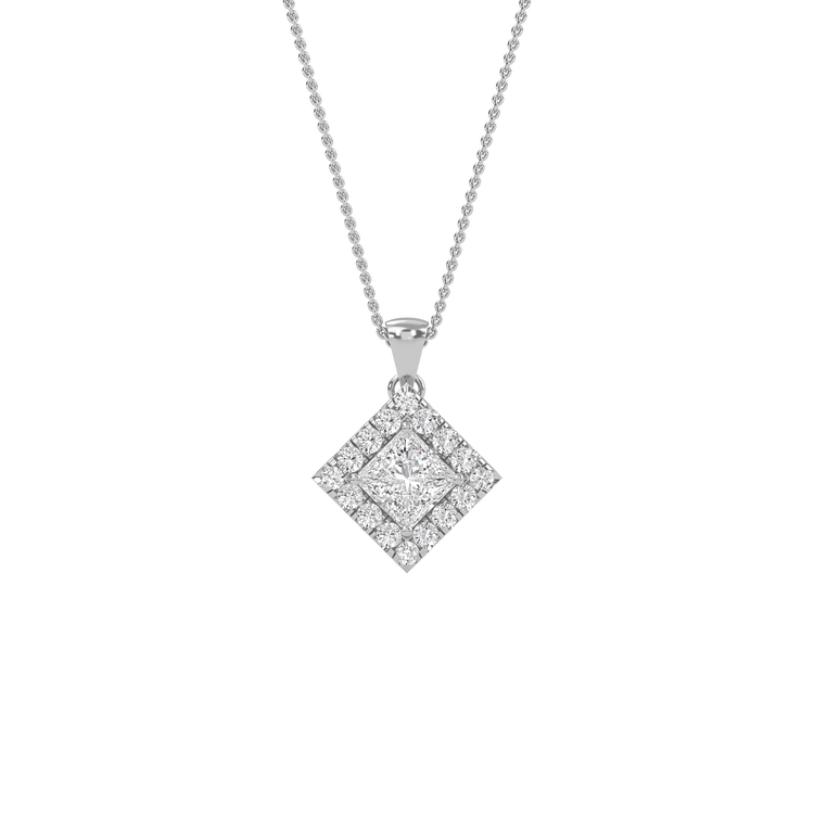 A celebration of timeless symmetry, Emma features a princess-cut diamond embraced by a halo of brilliant round accents. Set in a classic claw setting and framed in a striking square silhouette, this piece brings modern elegance to a beloved design. Whether layered or worn solo, Emma adds a refined sparkle to every moment.