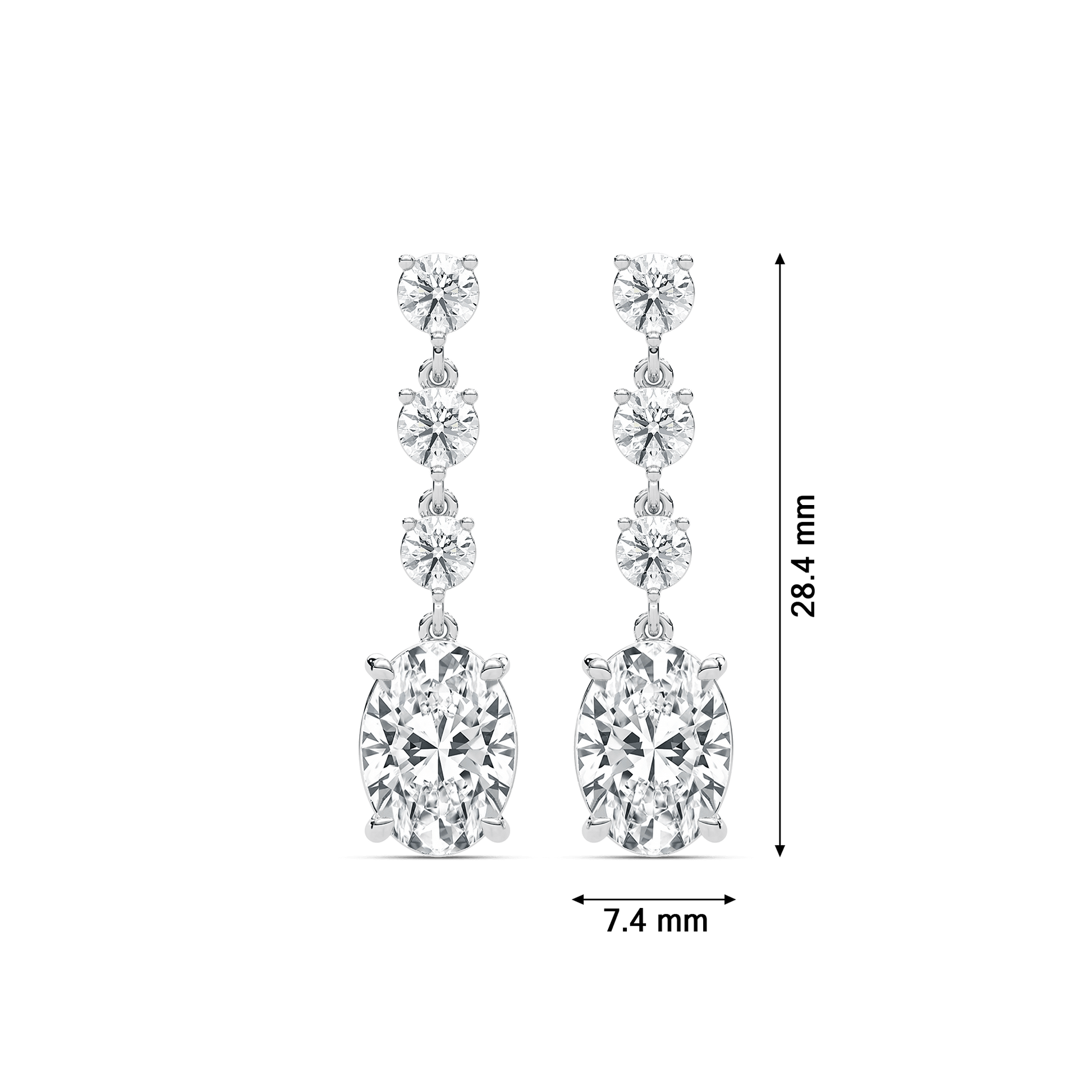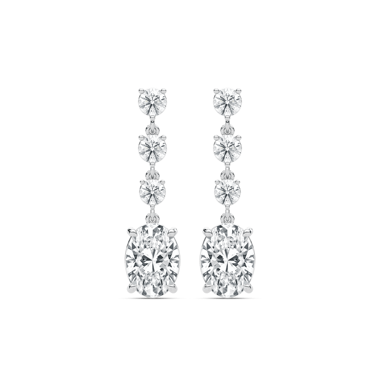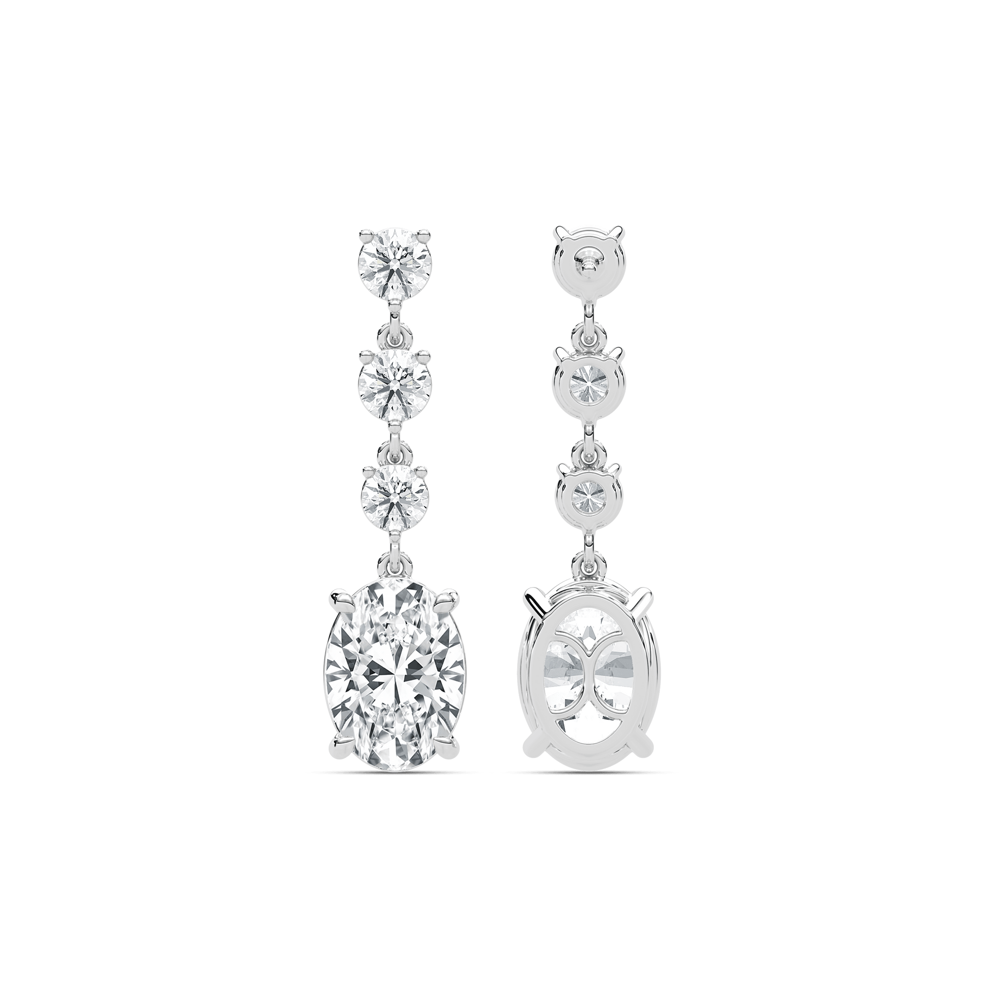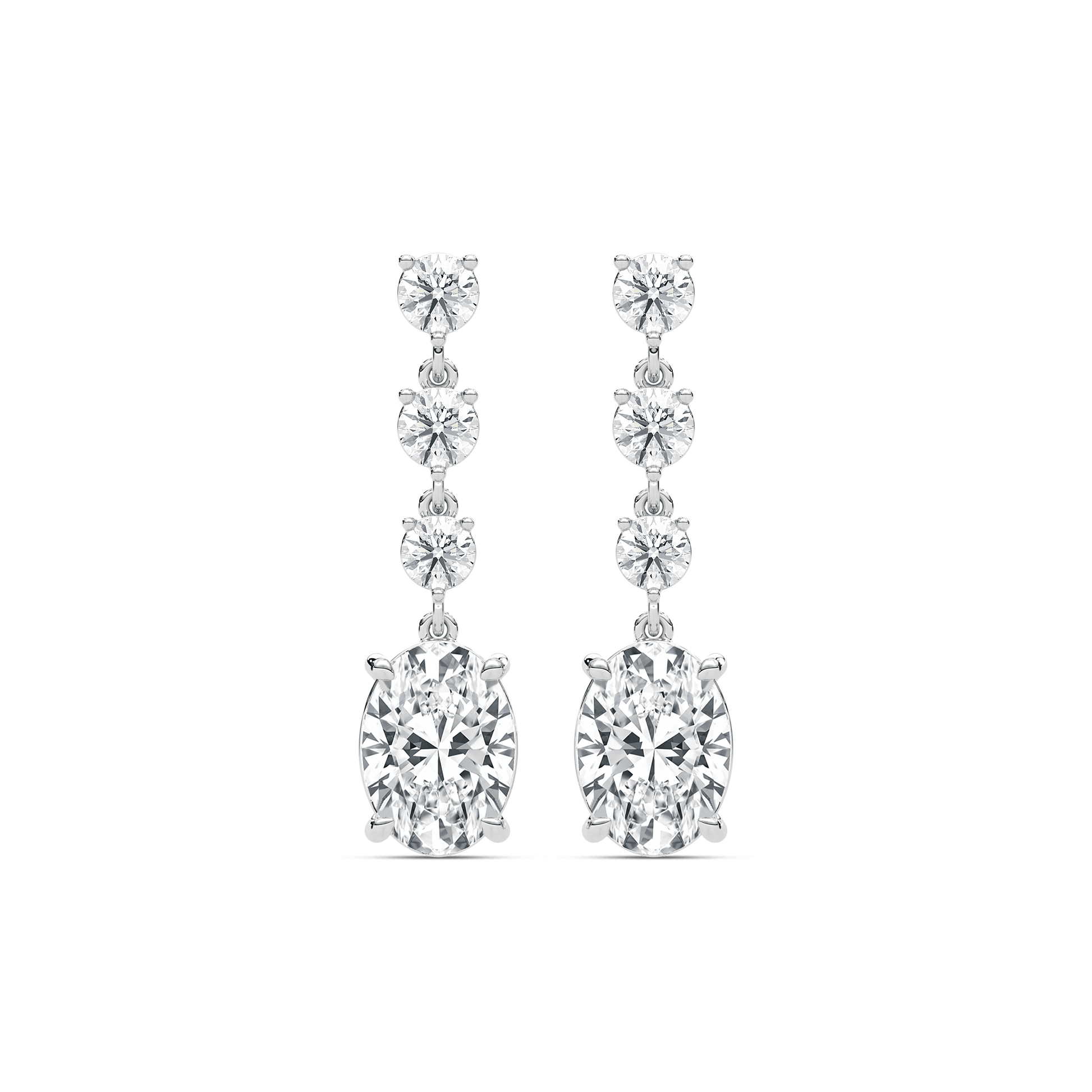 Eva captures timeless glamour in a refined silhouette. Three graduated round diamonds flow into a striking oval-cut lab diamond, creating movement, sparkle, and elegance. Designed to elongate the neckline, Eva is an effortless choice for both evening wear and bridal beauty.