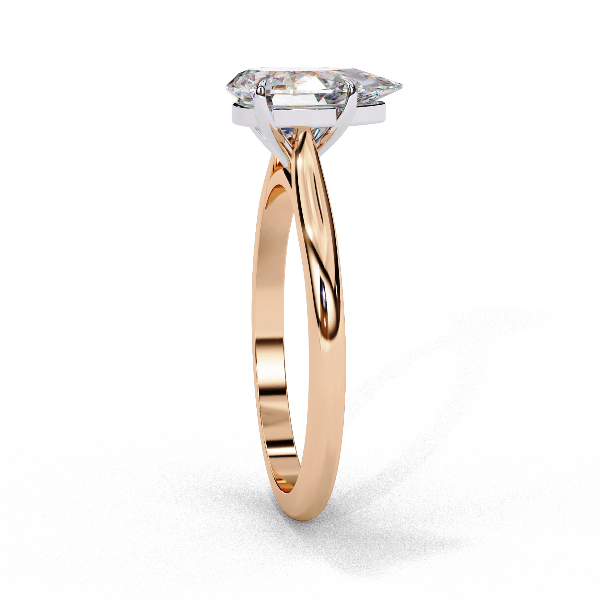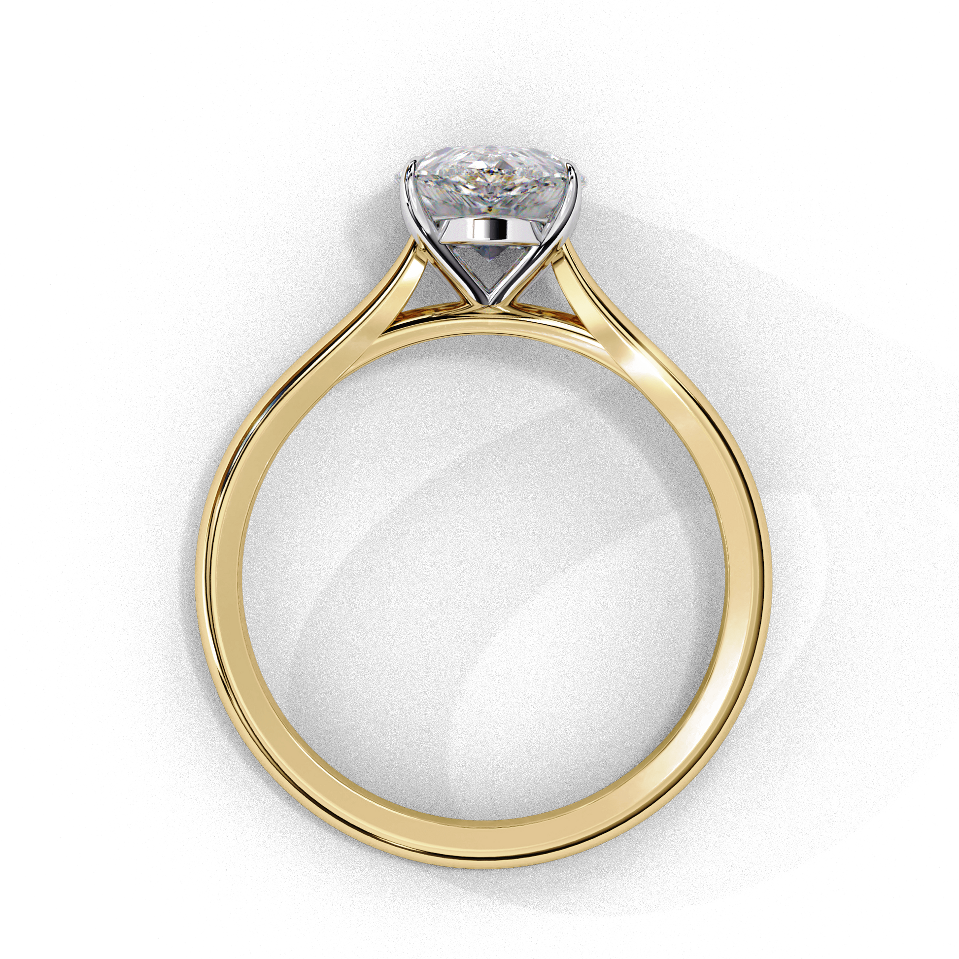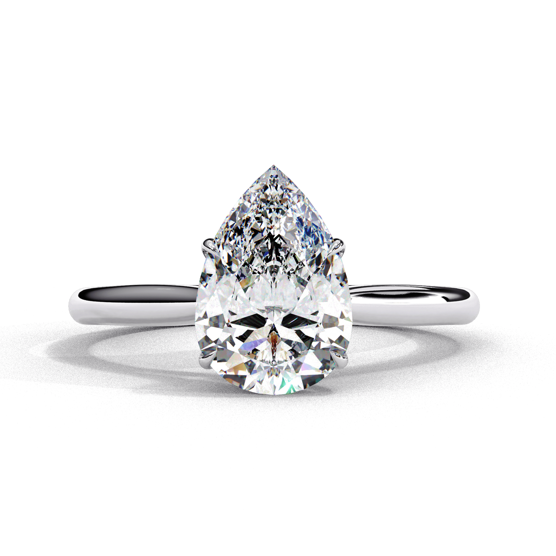 Evangelina features a Pear cut solitaire, set in a four-claw cathedral setting with an elegant slope that elevates the diamond for maximum brilliance. The two-tone design enhances its architectural beauty, combining strength with elegance. Evangelina is a perfect balance of classic and modern.