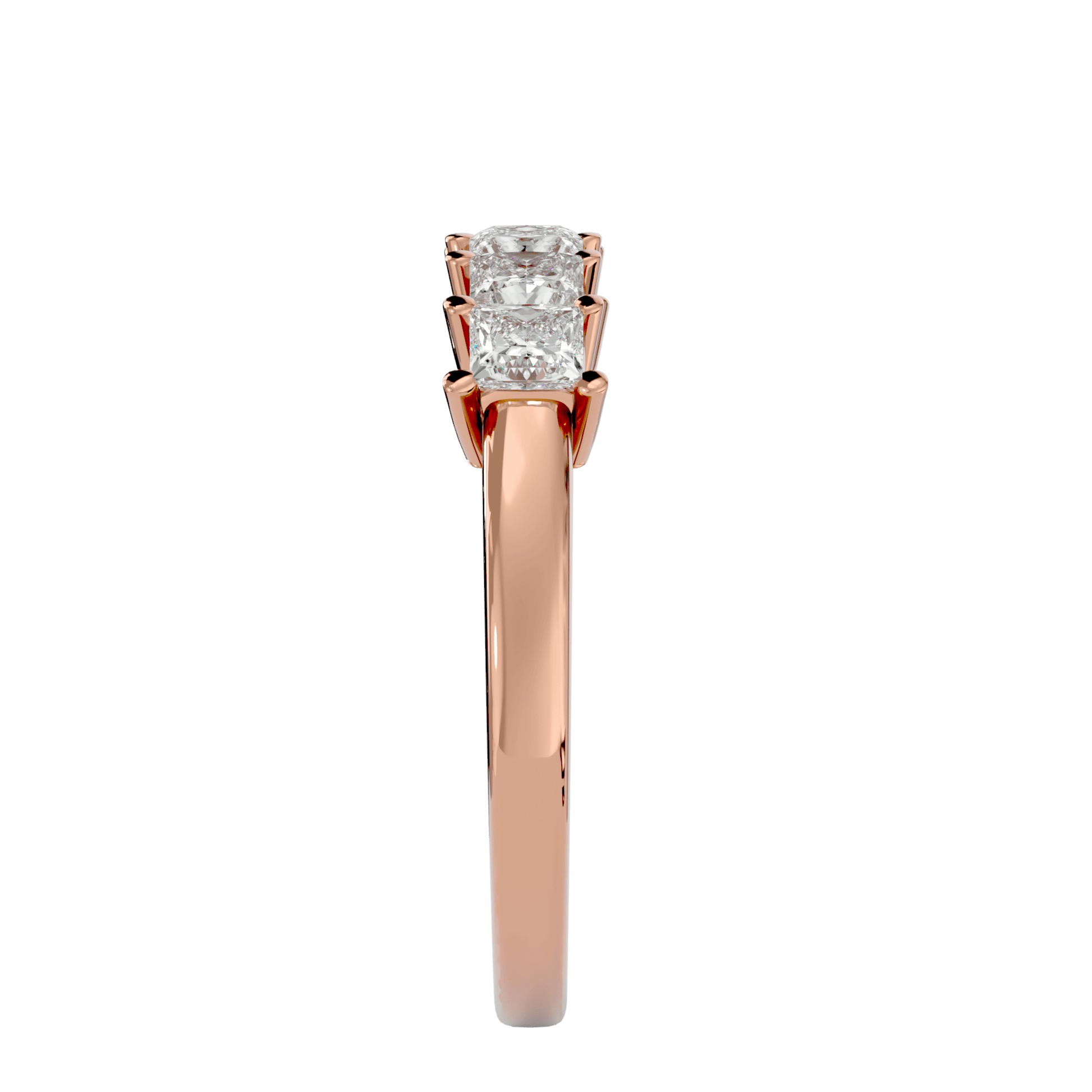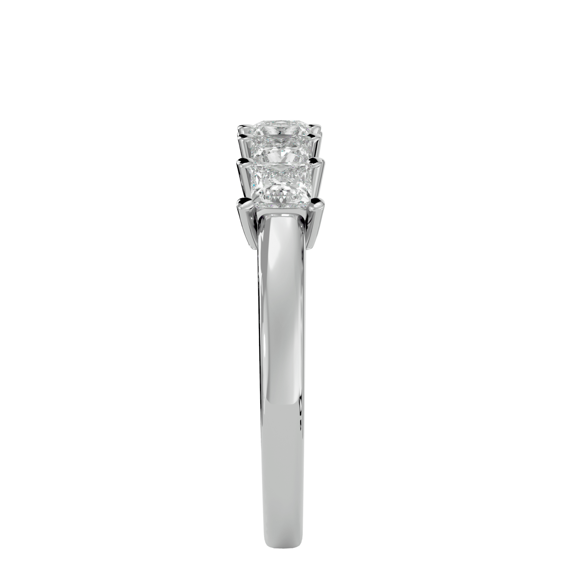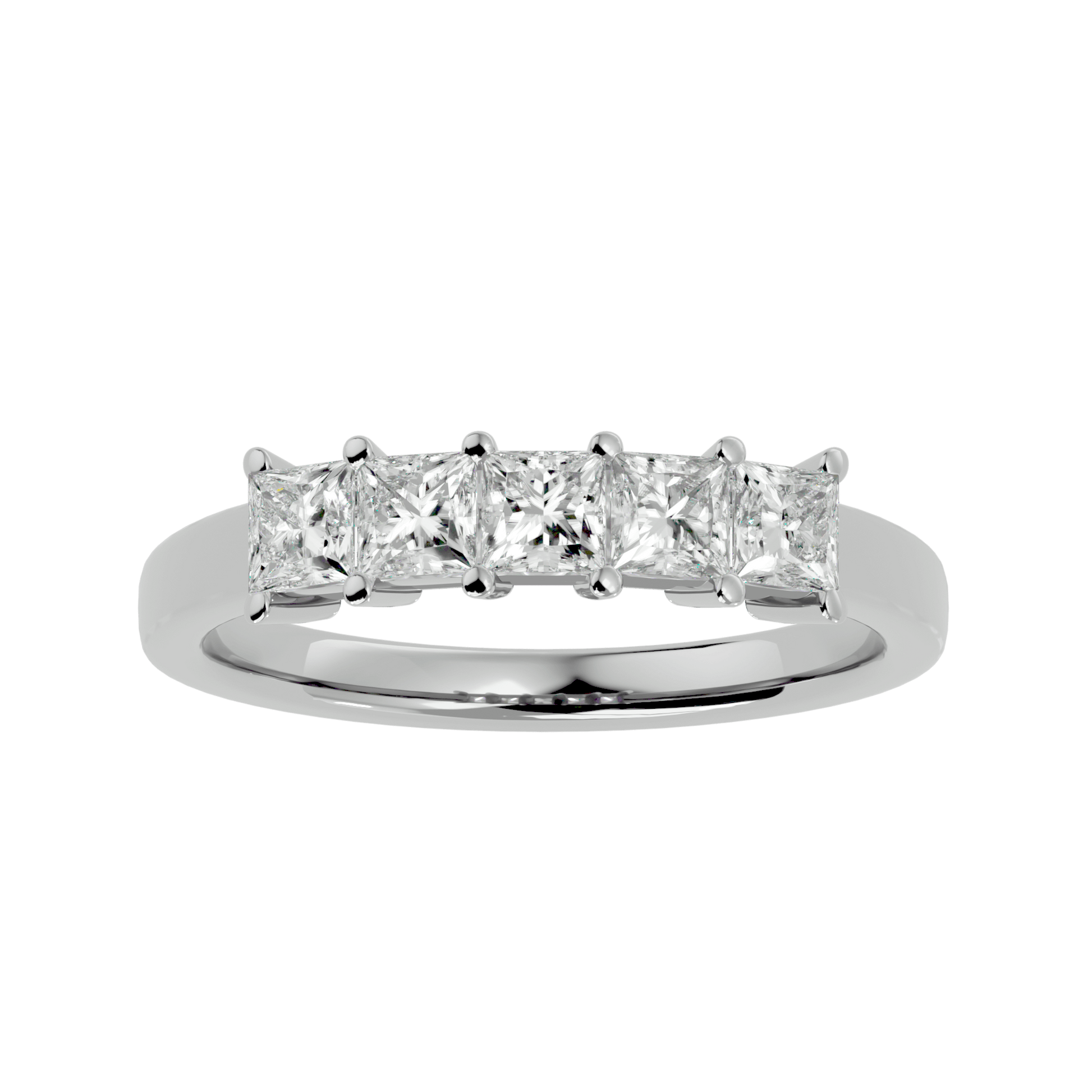 A celebration of timeless elegance, the Fiorella ring showcases five exquisite princess-cut diamonds, each meticulously set in a refined basket setting. The sleek, shared-prong design allows light to dance through every facet, enhancing the brilliance of each stone.