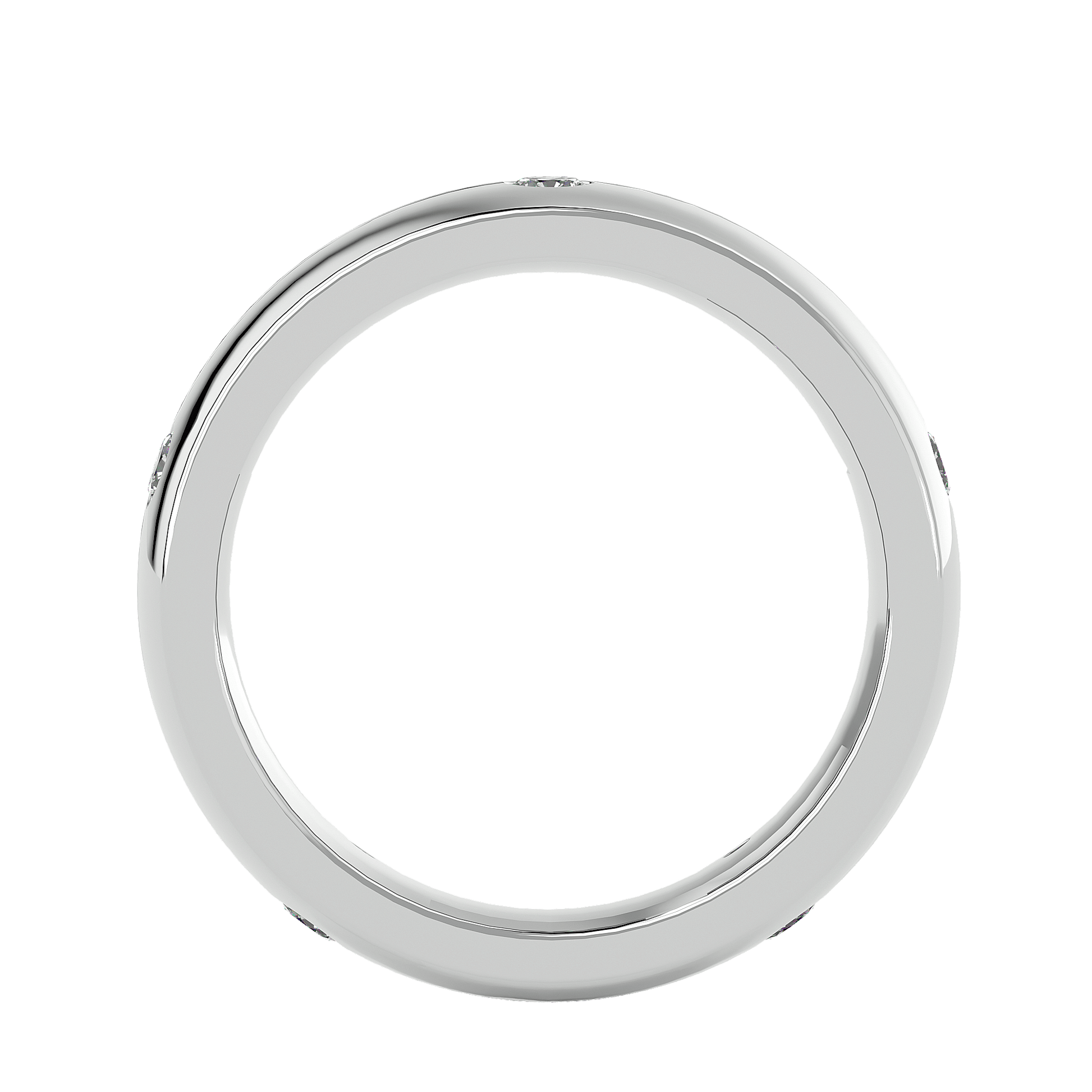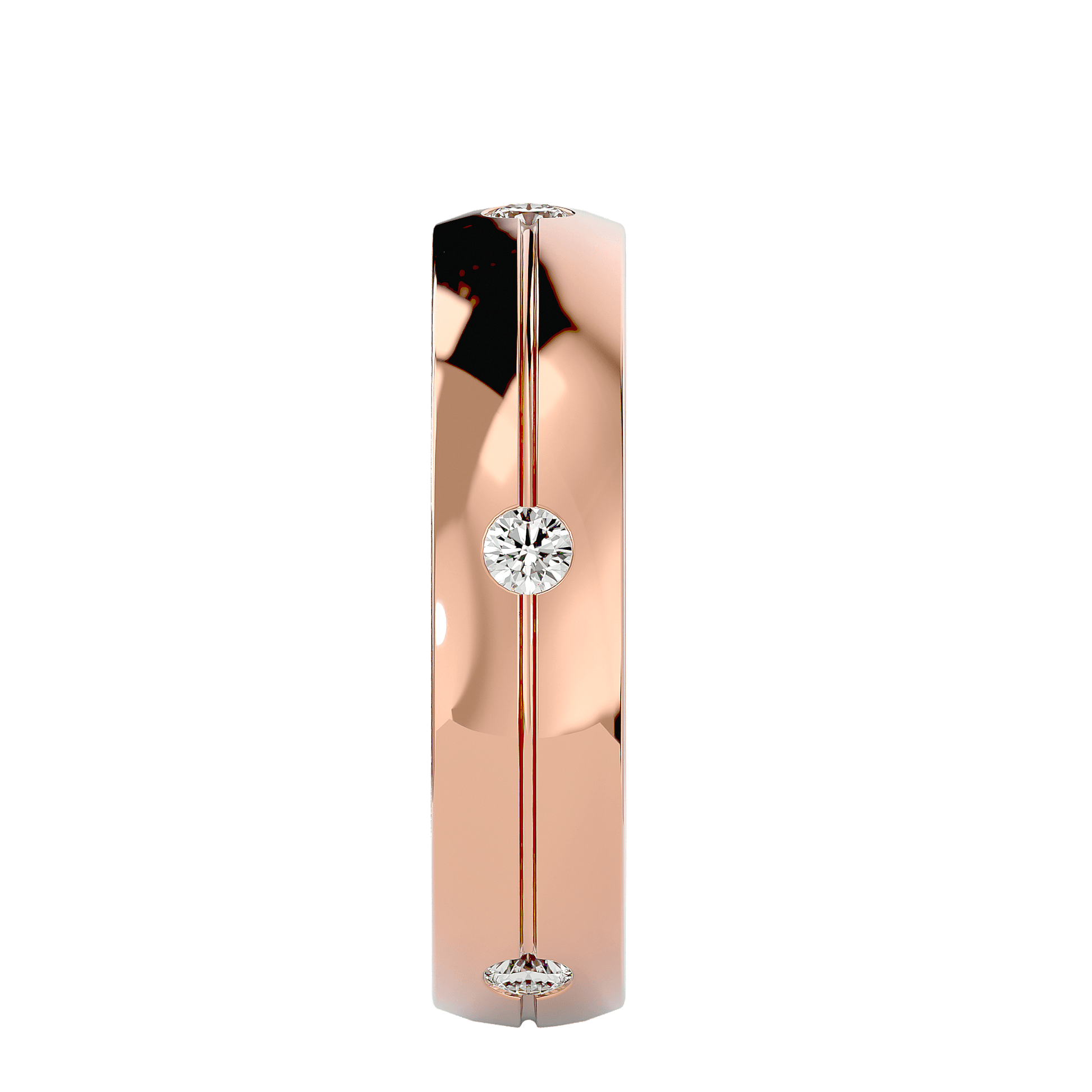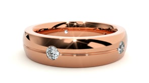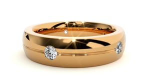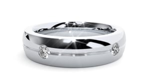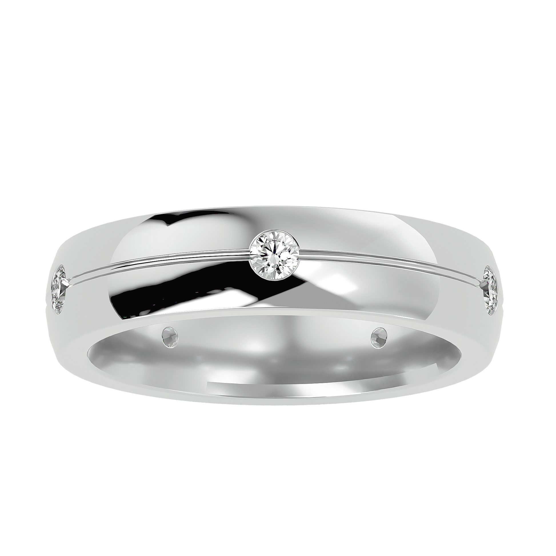 Crafted for those who value understated elegance, Idris features a shallow channel cut that encircles the band, adding depth while maintaining a smooth, polished aesthetic. Five flush-set round diamonds are placed evenly around the ring, offering a touch of brilliance without excess.