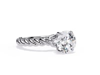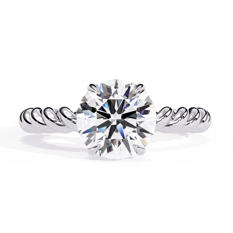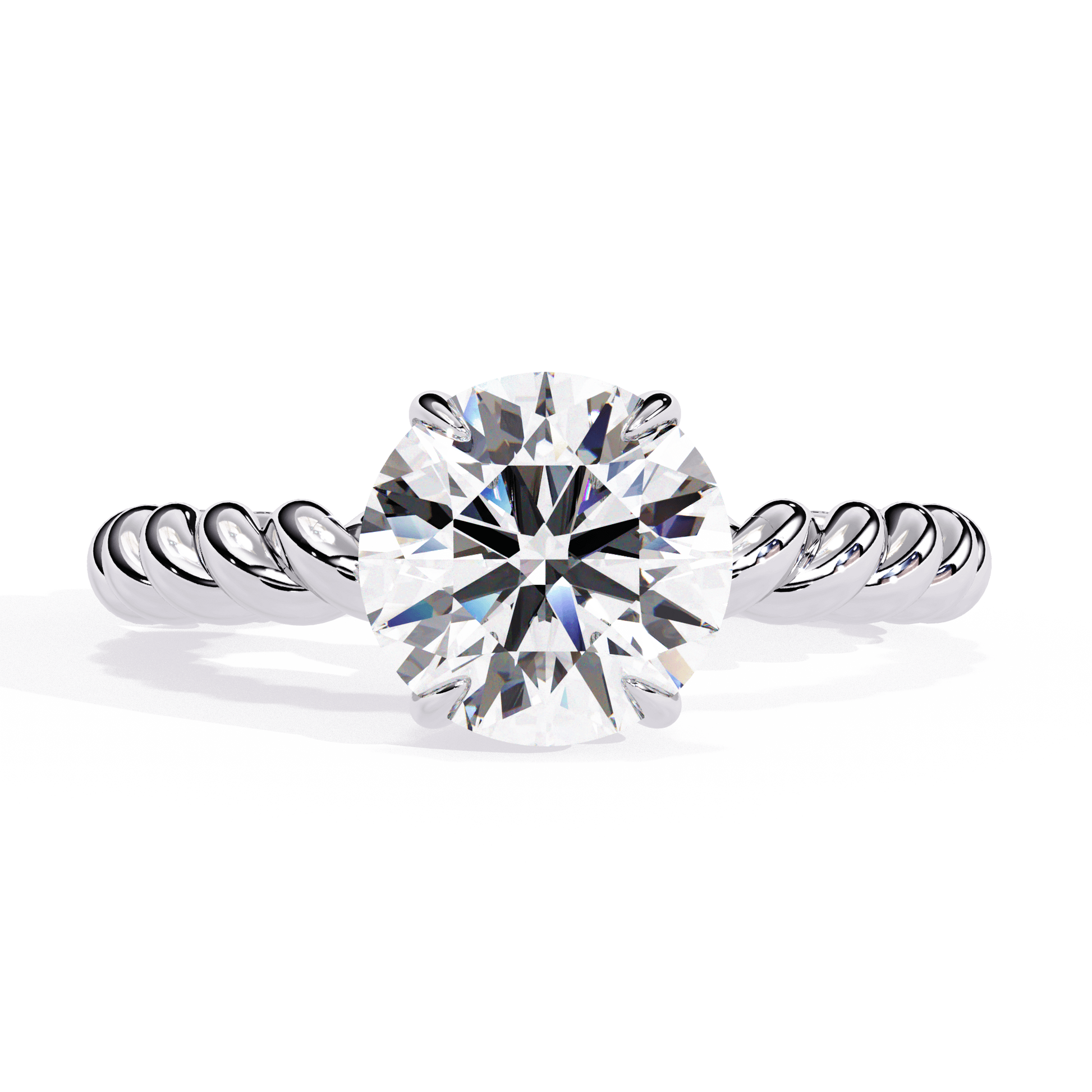 Ignatia is a symbol of eternal love and intertwined destinies. At its core, a breathtaking 2-carat center stone is elegantly secured in a four-claw setting with a delicate gallery rail, allowing light to dance through every facet.
