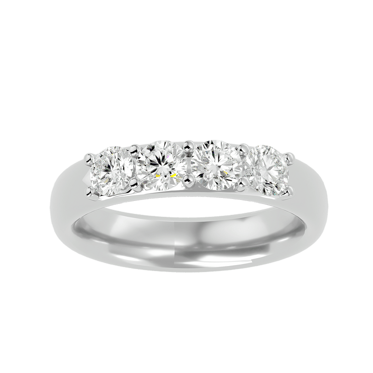 A refined expression of brilliance, Isolde features four exquisite diamonds, each set in a secure shared prong setting to maximize light exposure and radiance. The polished, substantial band enhances the presence of each stone, creating a bold yet timeless silhouette.
