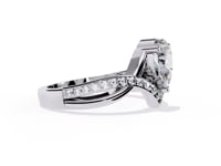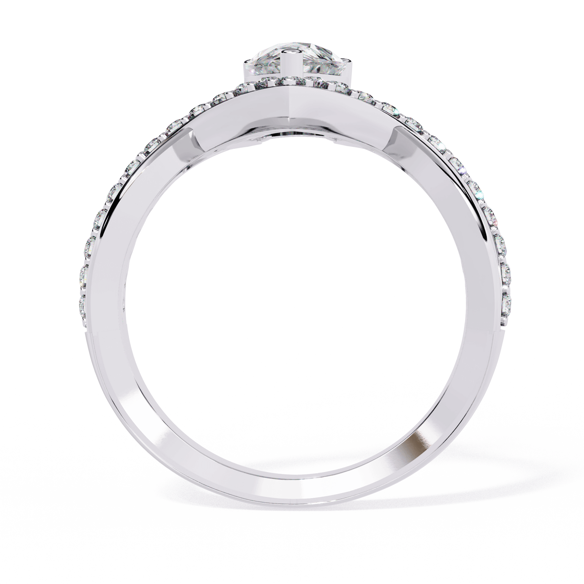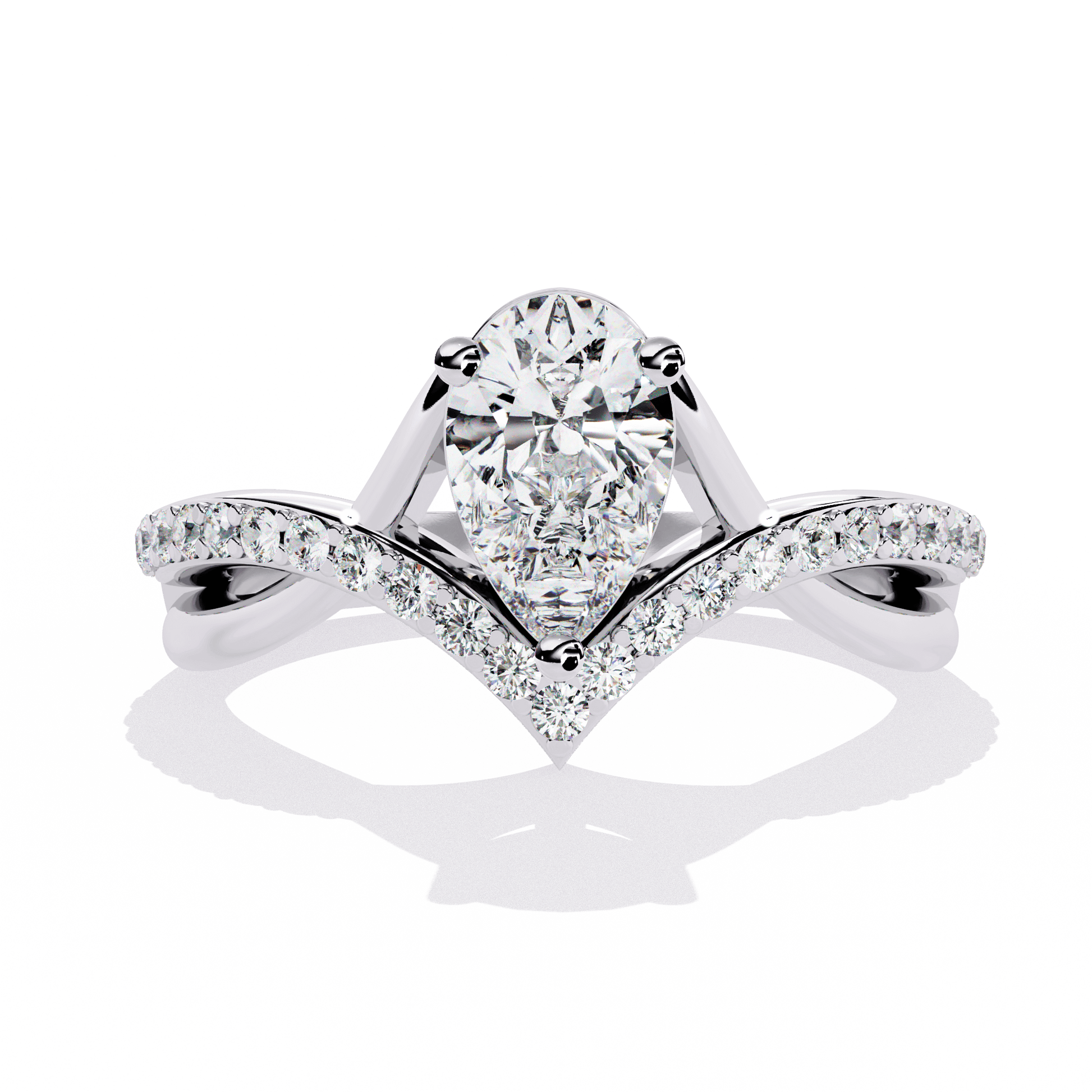 Jamila is a masterpiece of modern elegance and refined craftsmanship. She features a mesmerizing Pear-cut diamond, securely nestled within a sleek low bezel setting, enhanced by three delicate claws for a perfect balance of structure and brilliance. Her split shank design gracefully cradles the center stone, creating a seamless flow of sophistication.