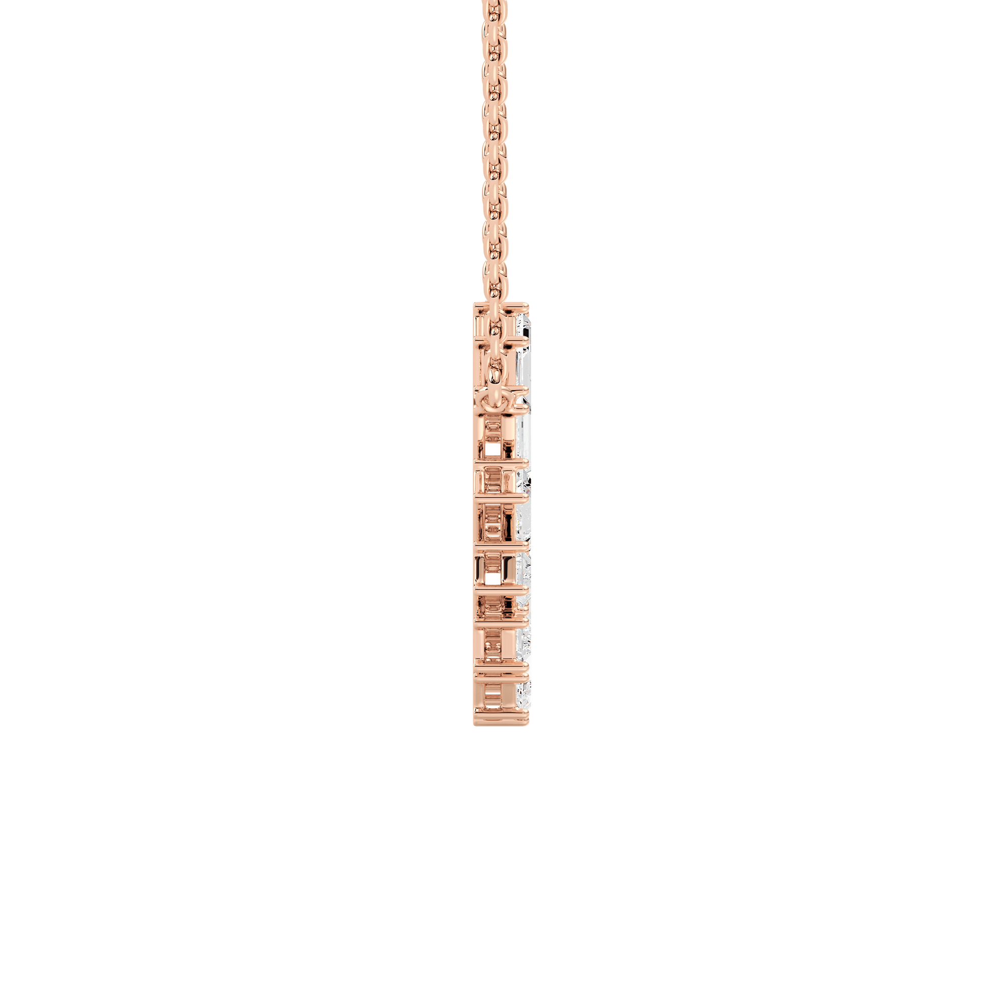 Sculptural, sleek, and radiant. The Kristin pendant features a full circle of baguette-cut diamonds, each meticulously set to form a seamless geometric loop. Balanced between refined symmetry and modern allure, this piece is a standout addition to any collection — whether worn solo or layered with delicate chains. Its dynamic silhouette adds visual rhythm, making it ideal for everyday wear or special occasions alike.