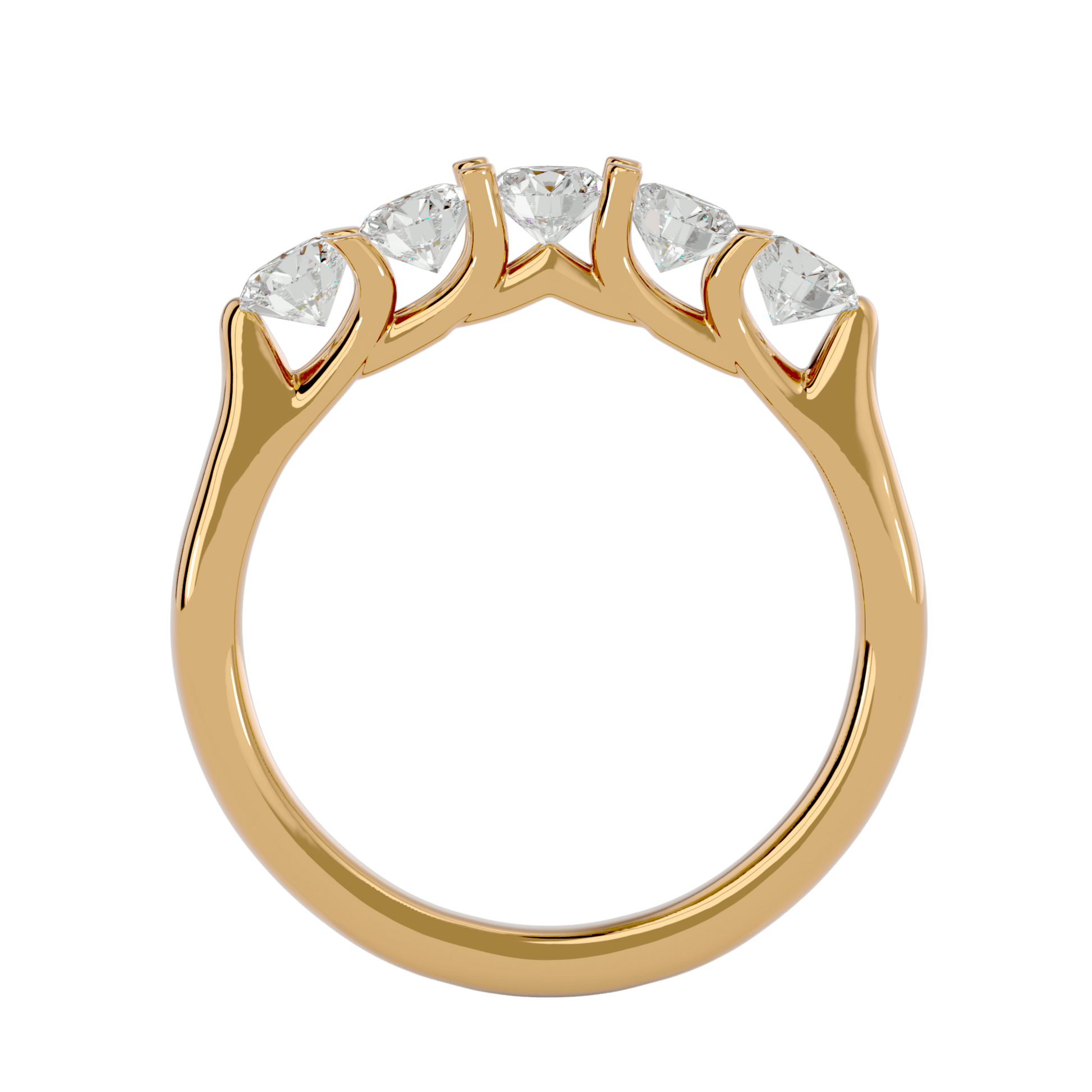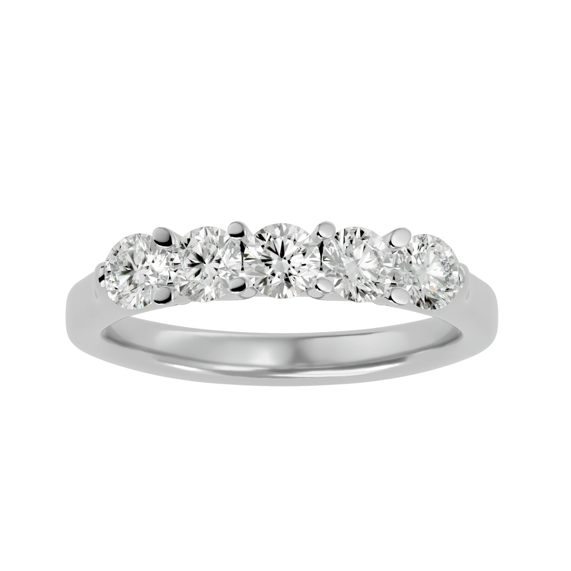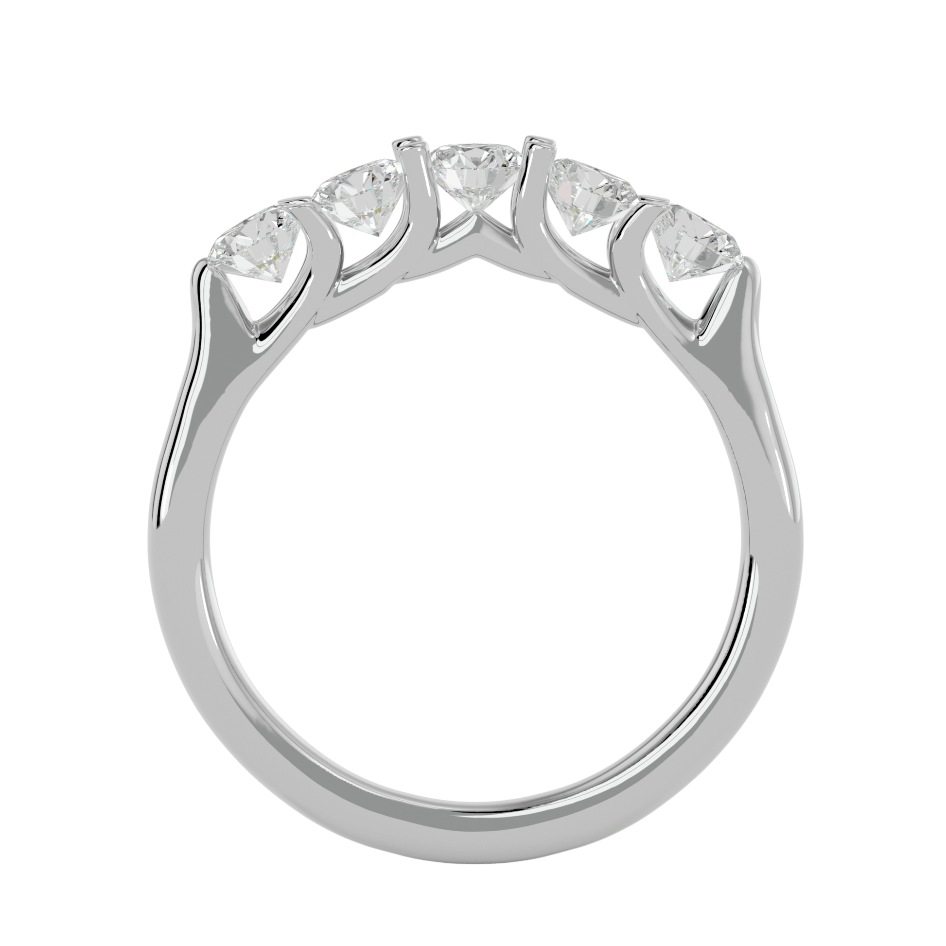 A refined expression of brilliance, Liliana features five stunning diamonds set in a shared prong setting, maximizing light exposure for exceptional sparkle. The subtly elevated cathedral-inspired design enhances each stone’s presence while ensuring a secure and elegant structure.
