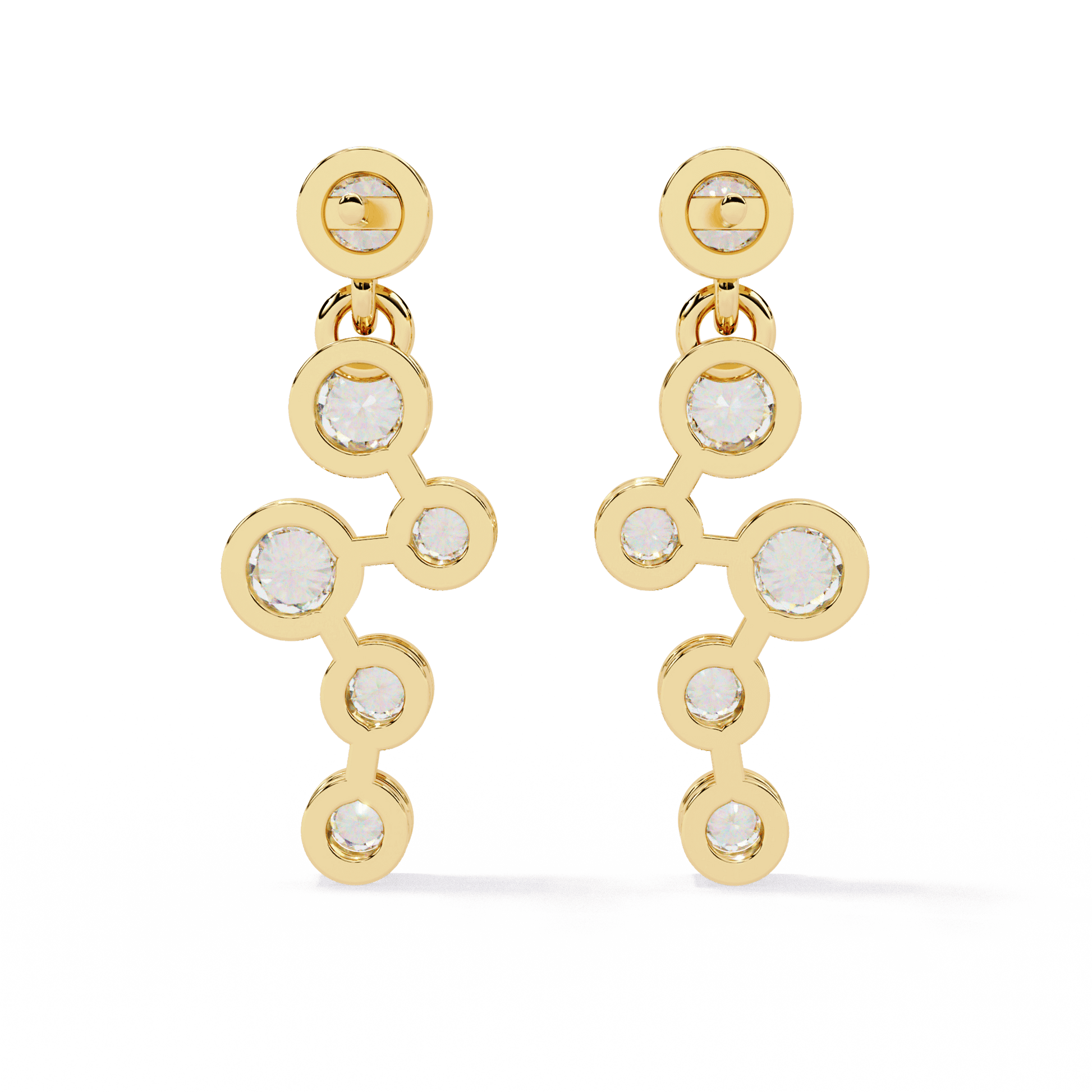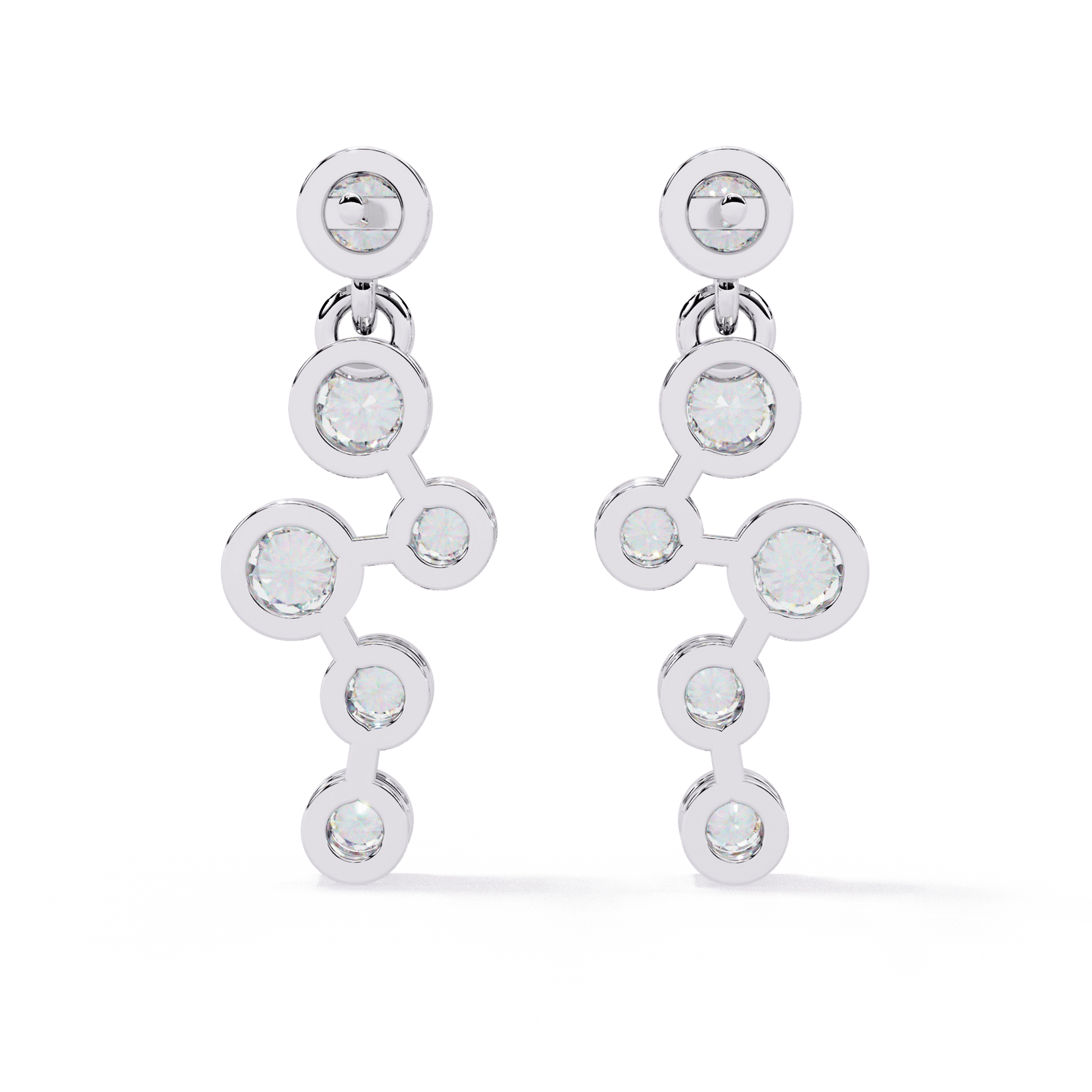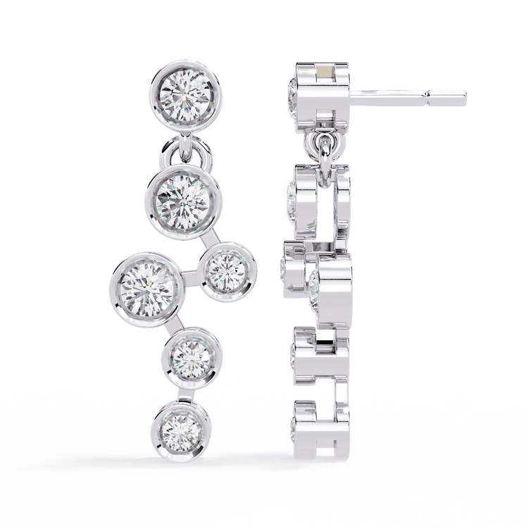 – Setting: Bezel-set round diamonds in a cascading drop stud design