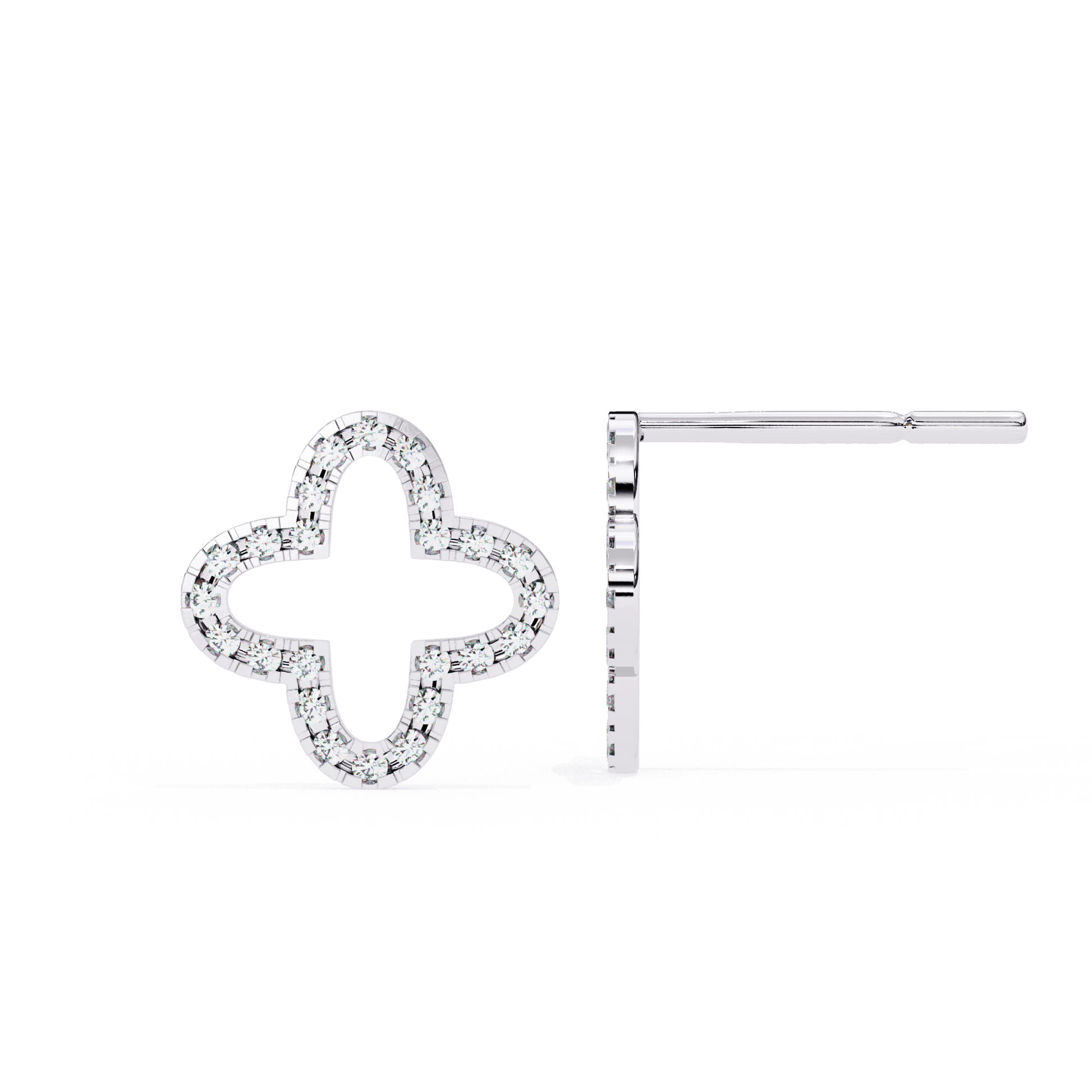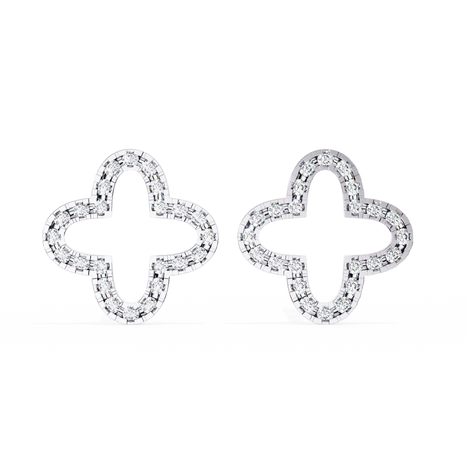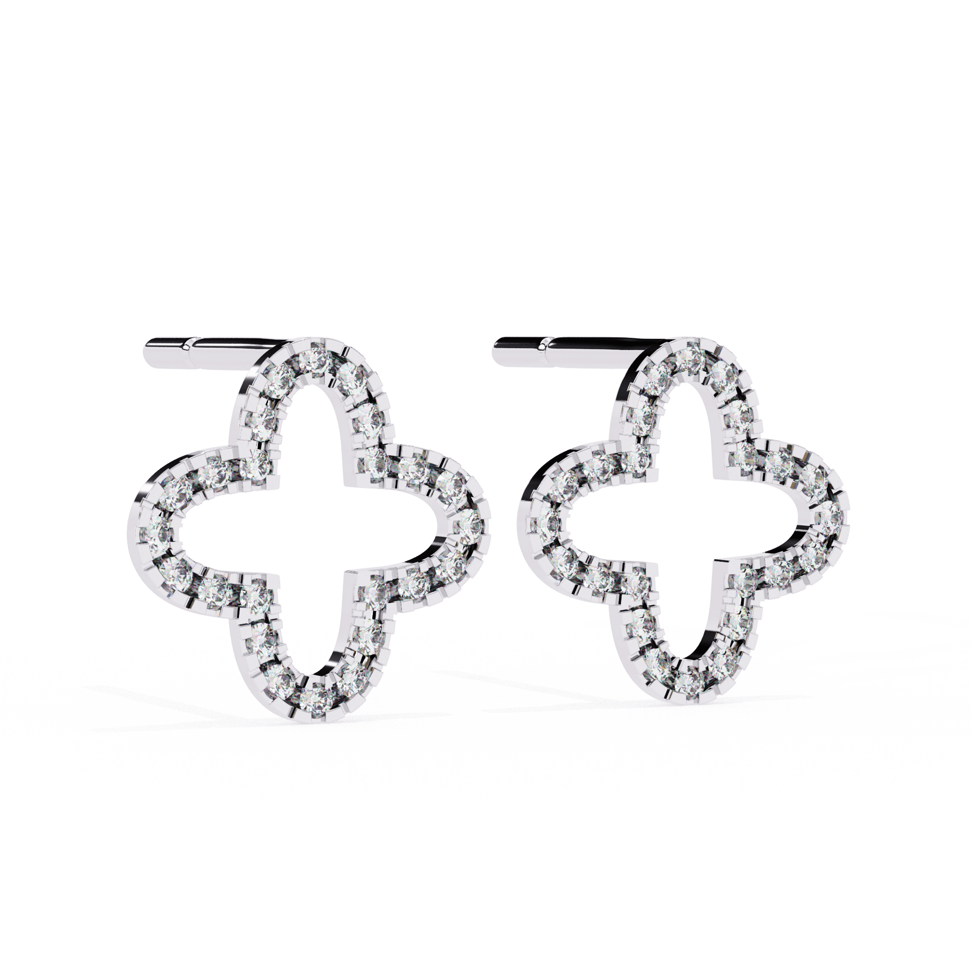 A modern interpretation of a timeless motif, Lune showcases the elegant quatrefoil silhouette paved entirely with round brilliant diamonds. The negative space at the center brings a light, airy feel, while the precise arrangement of each stone ensures radiant sparkle from every angle. A striking blend of symmetry and softness, these studs are perfect for day-to-night wear.