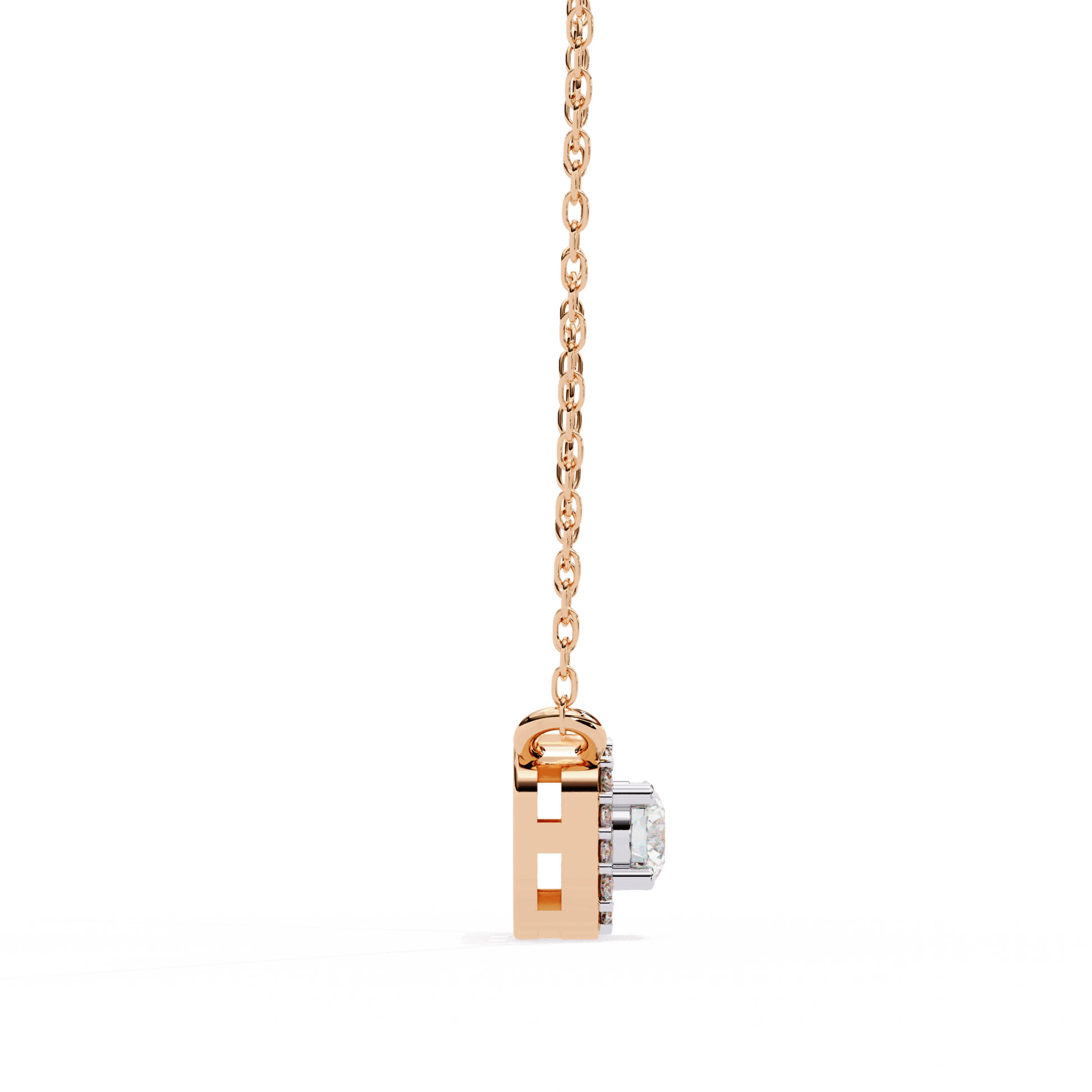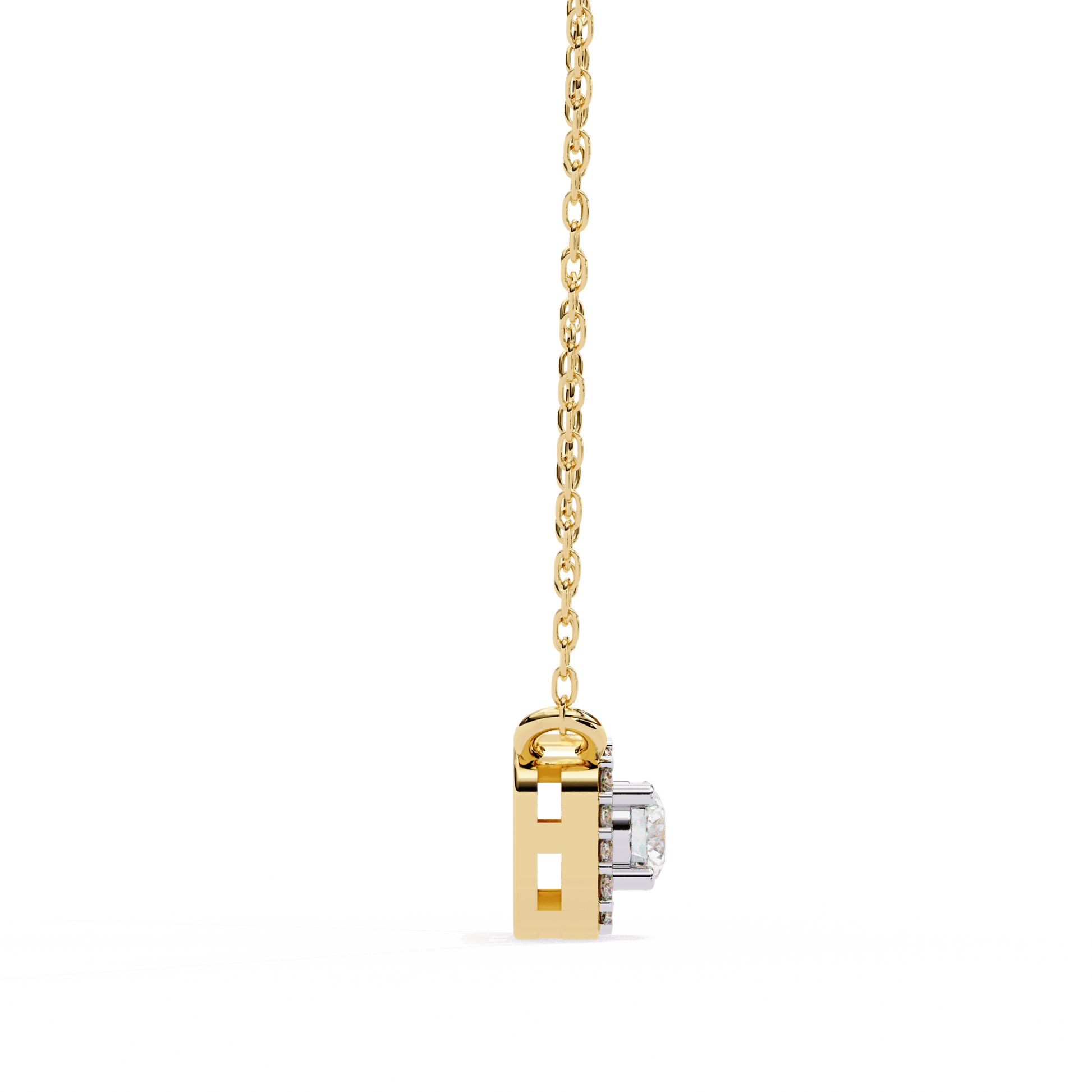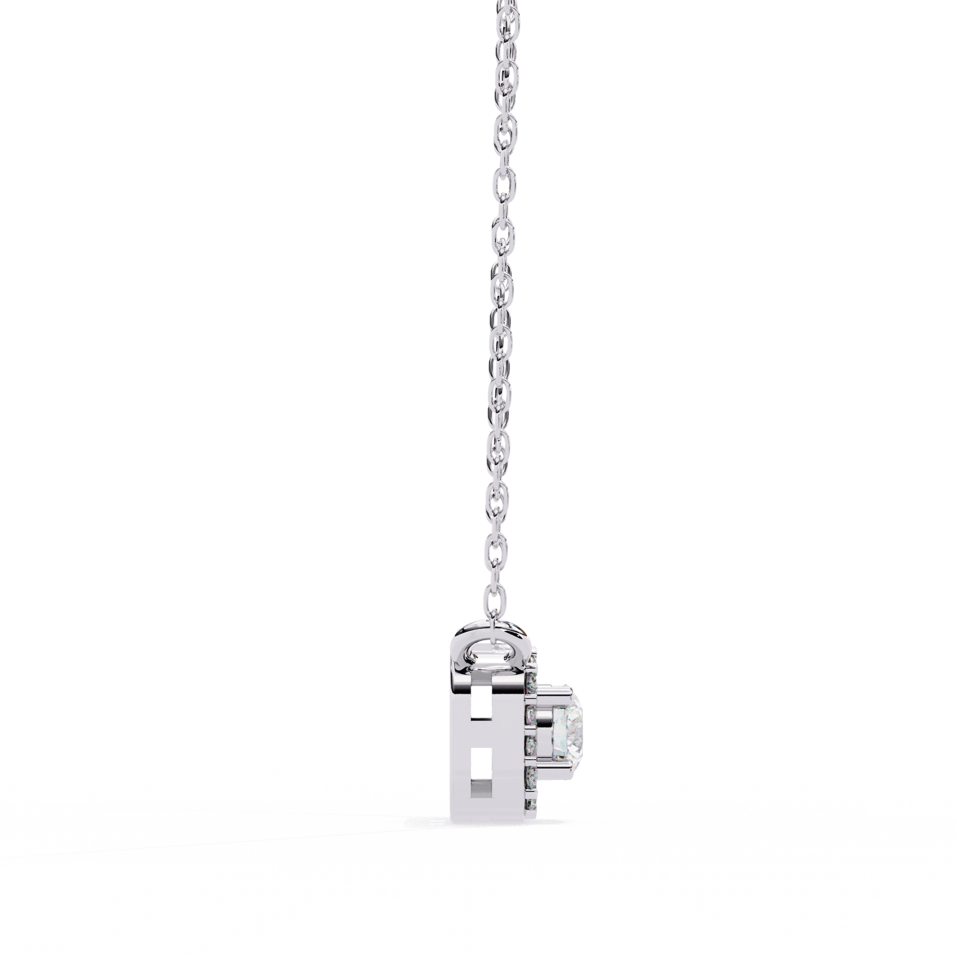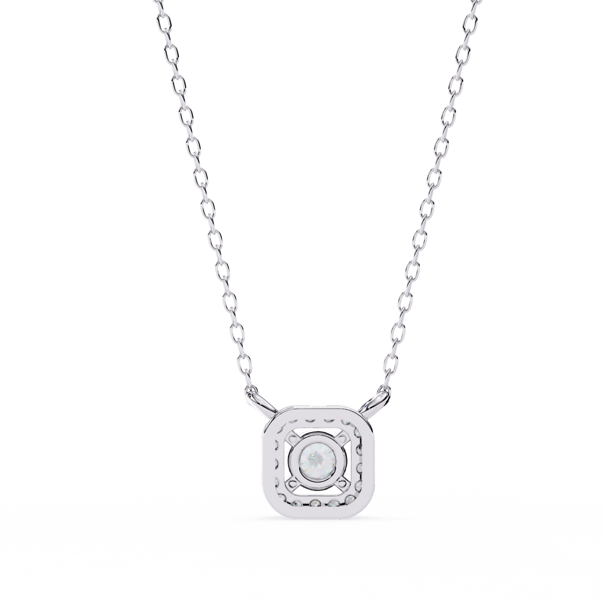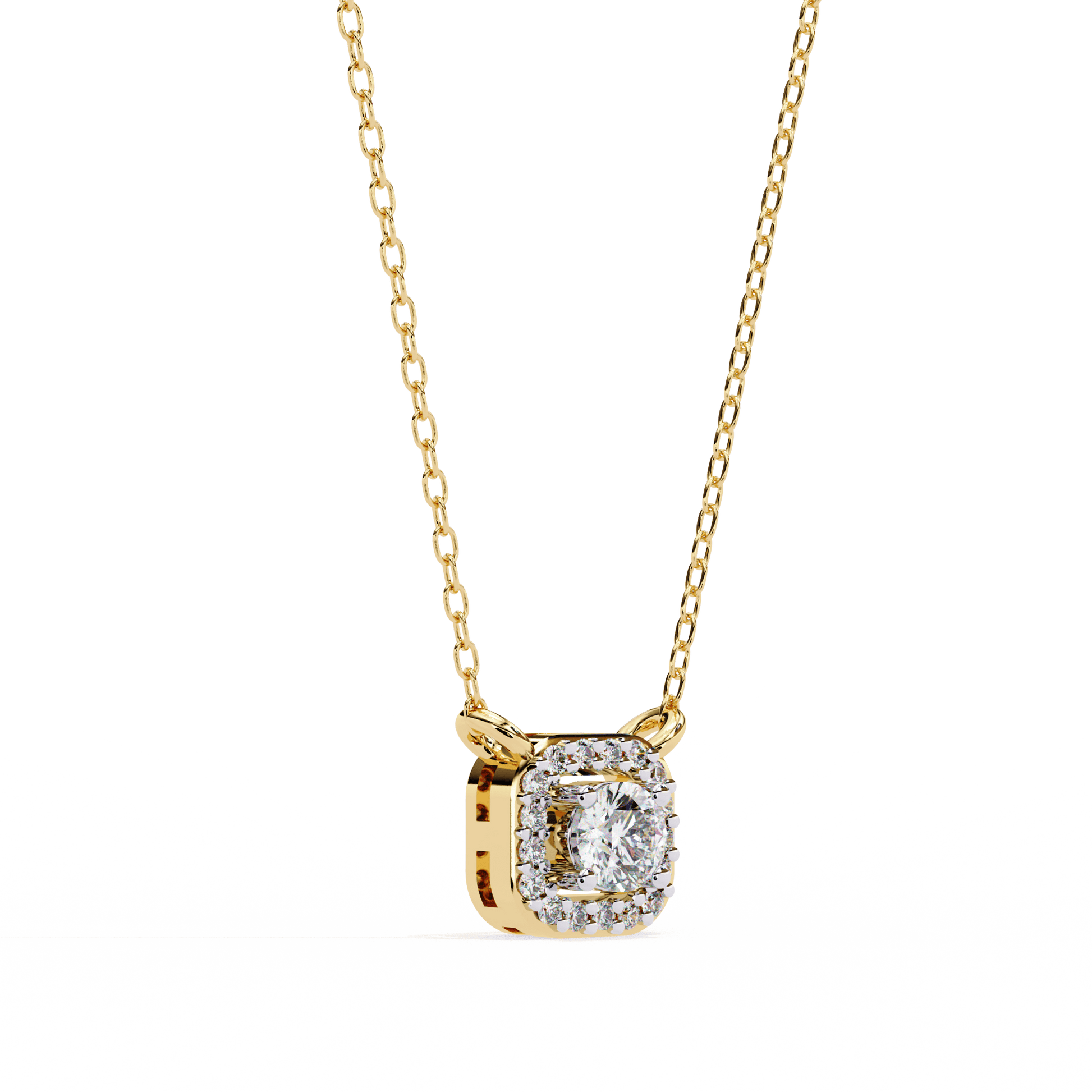 A graceful blend of elegance and radiance, the Mandy pendant features a round-cut solitaire embraced by a seamless halo of round diamonds. This pendant offers timeless sparkle and a softly structured profile.