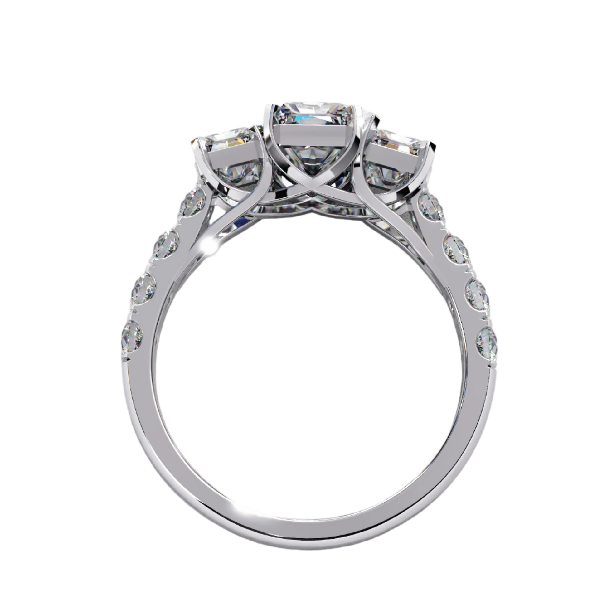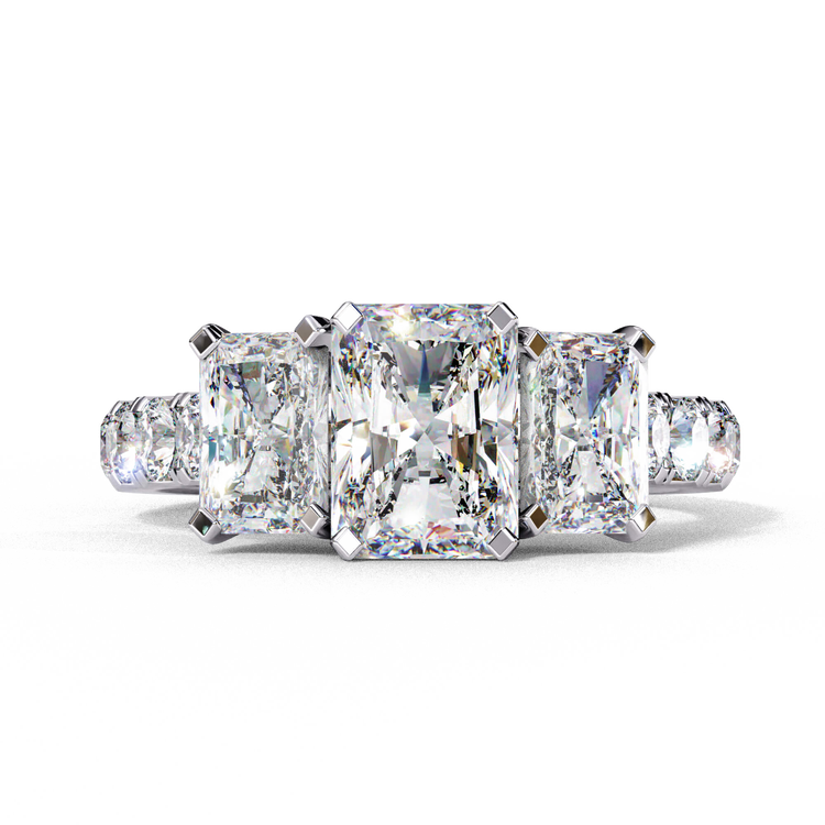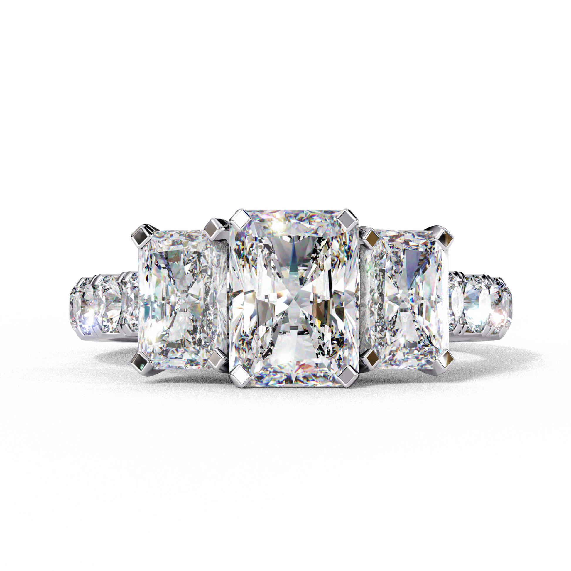 Note: Image features a 1.5ct Radiant diamond and 2x 0.75ct Radiant diamonds (3tcw)