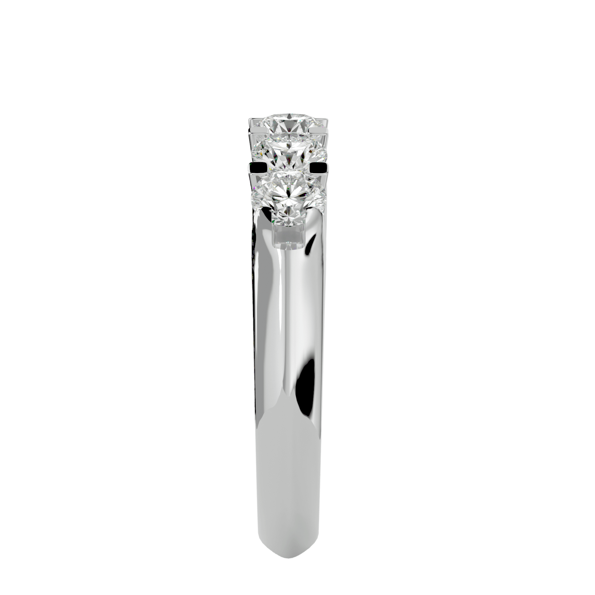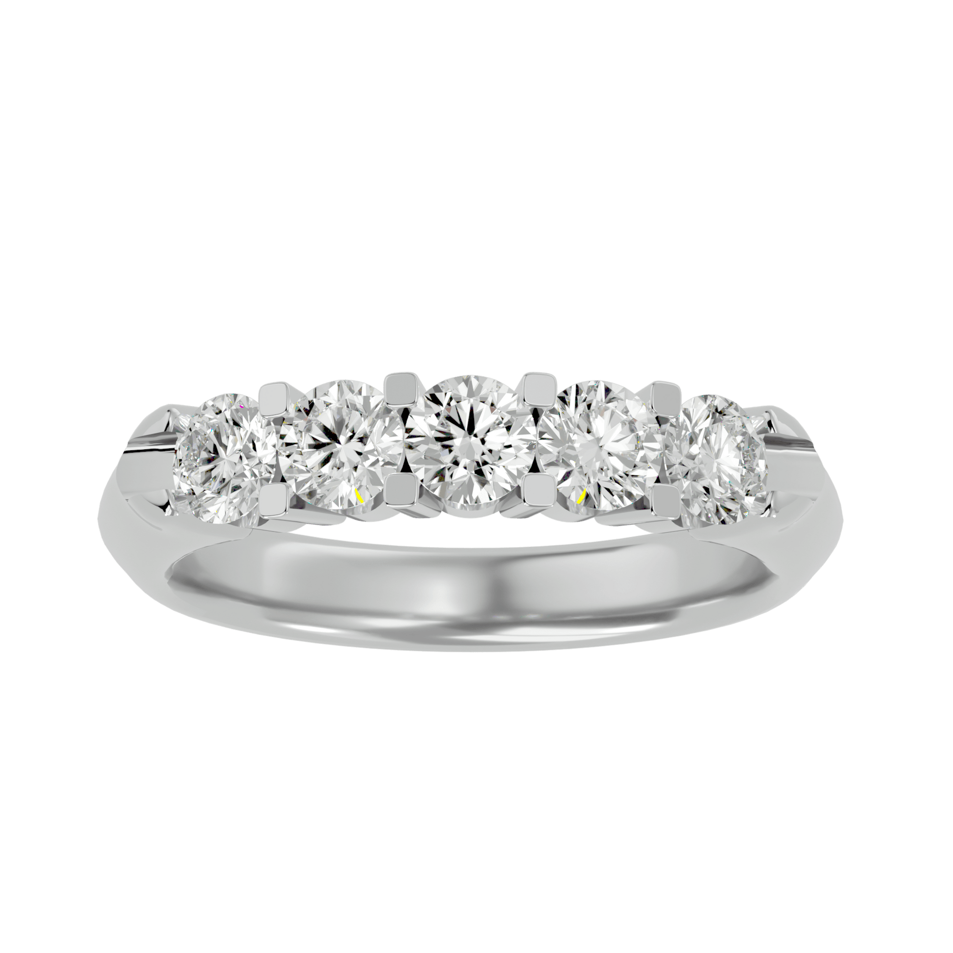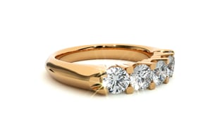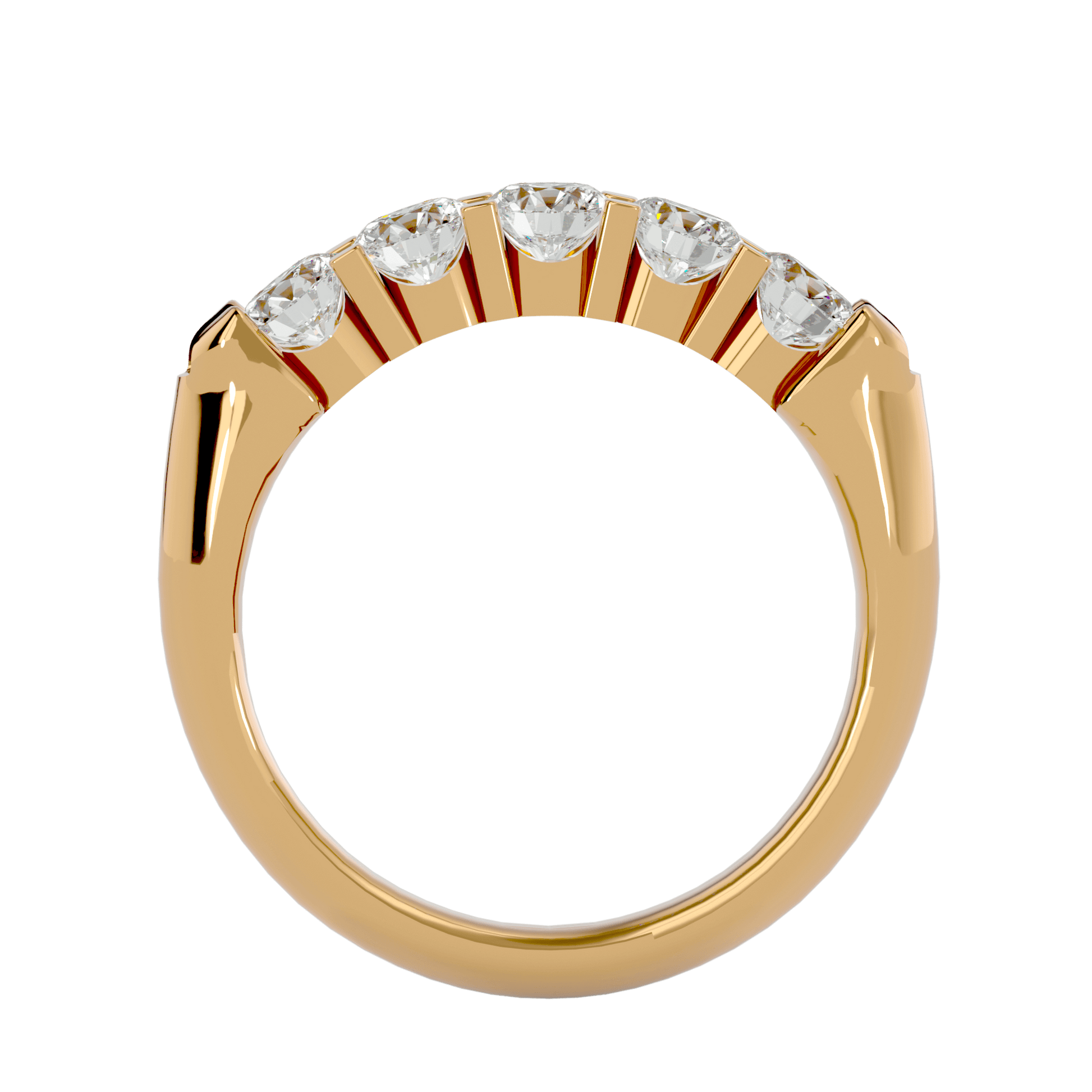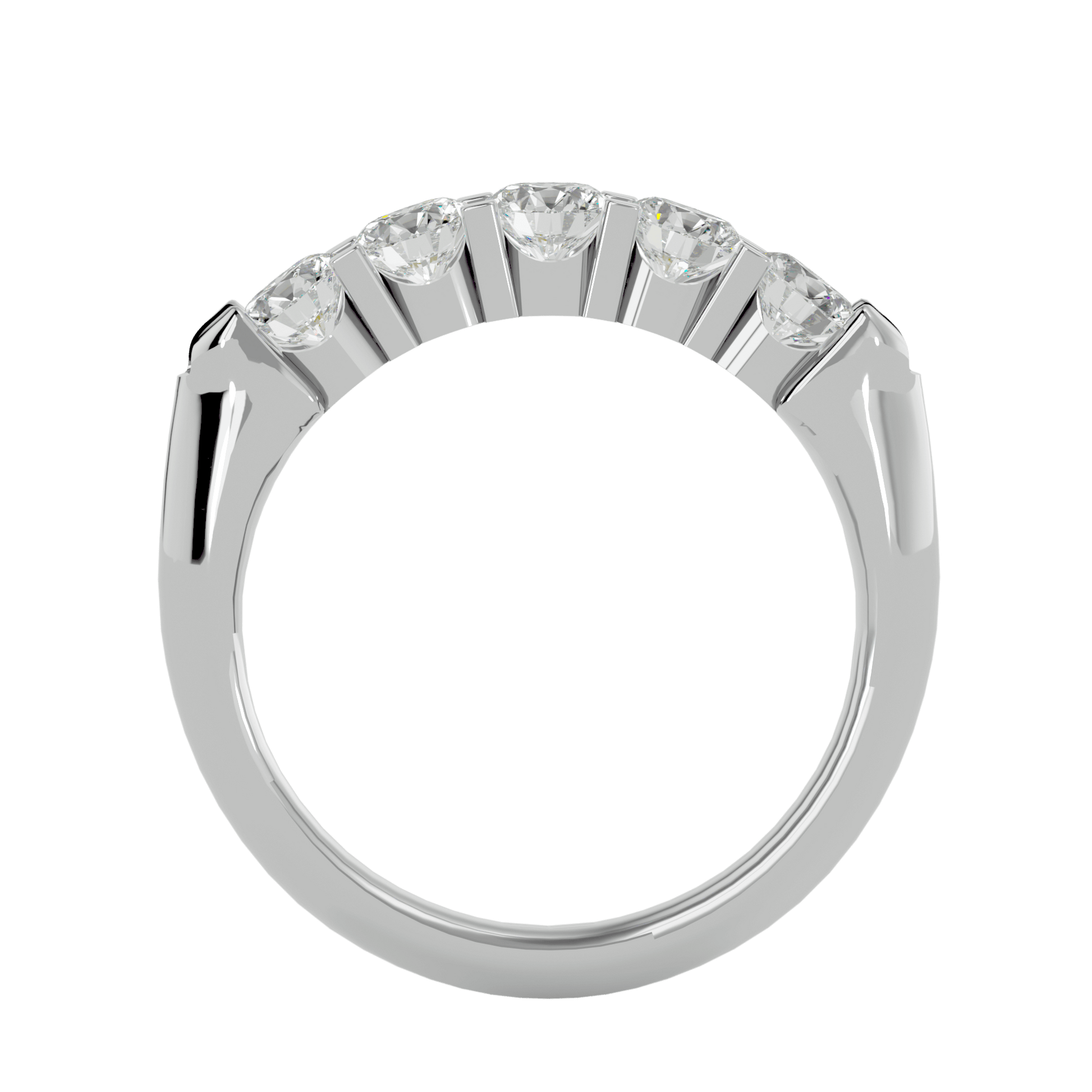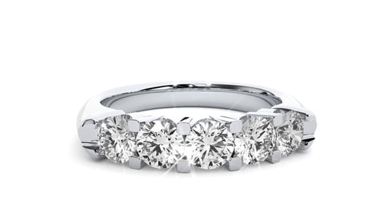 Elegant and refined, Mirabelle features five brilliant diamonds set in a U-prong setting, designed to maximize light exposure for exceptional sparkle. The cathedral-style band gracefully rises to meet the diamonds, enhancing their brilliance while providing structural support. The tapered band, which narrows towards the base, creates a delicate, refined silhouette that ensures both comfort and elegance.