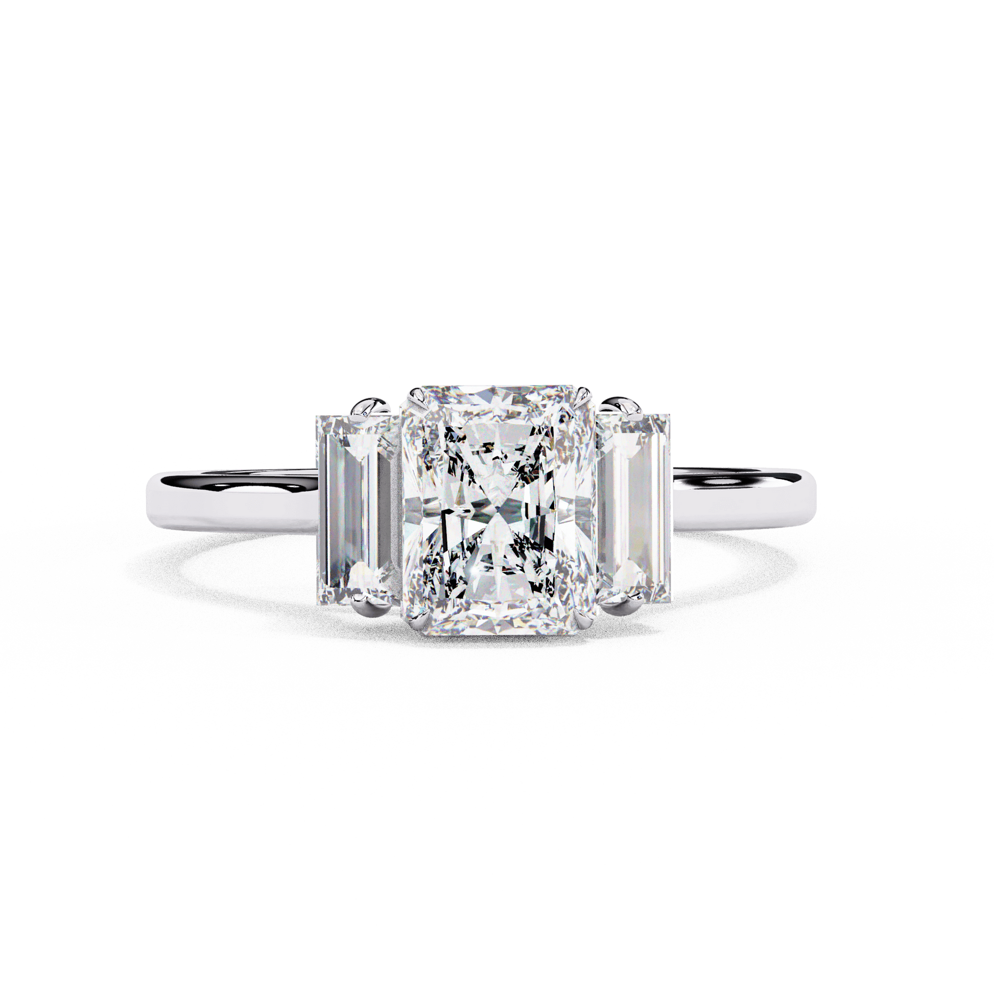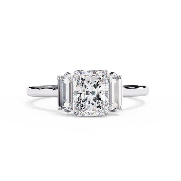 Note: Image features a 1ct Radiant diamond and 2x 0.2ct Baguette diamonds (1.4tcw)