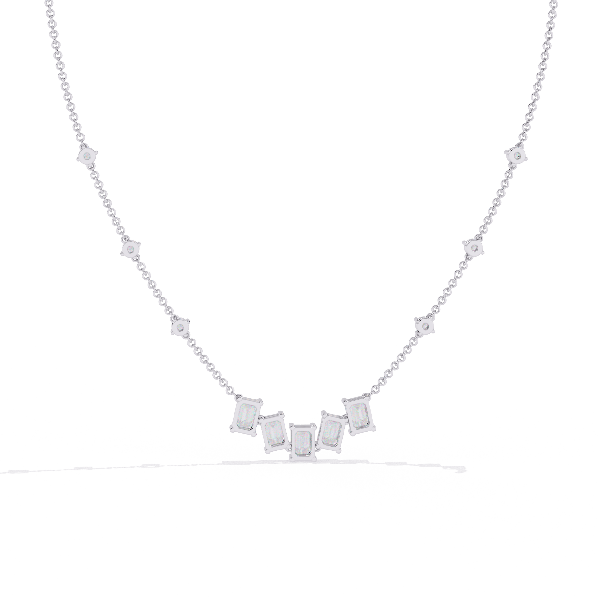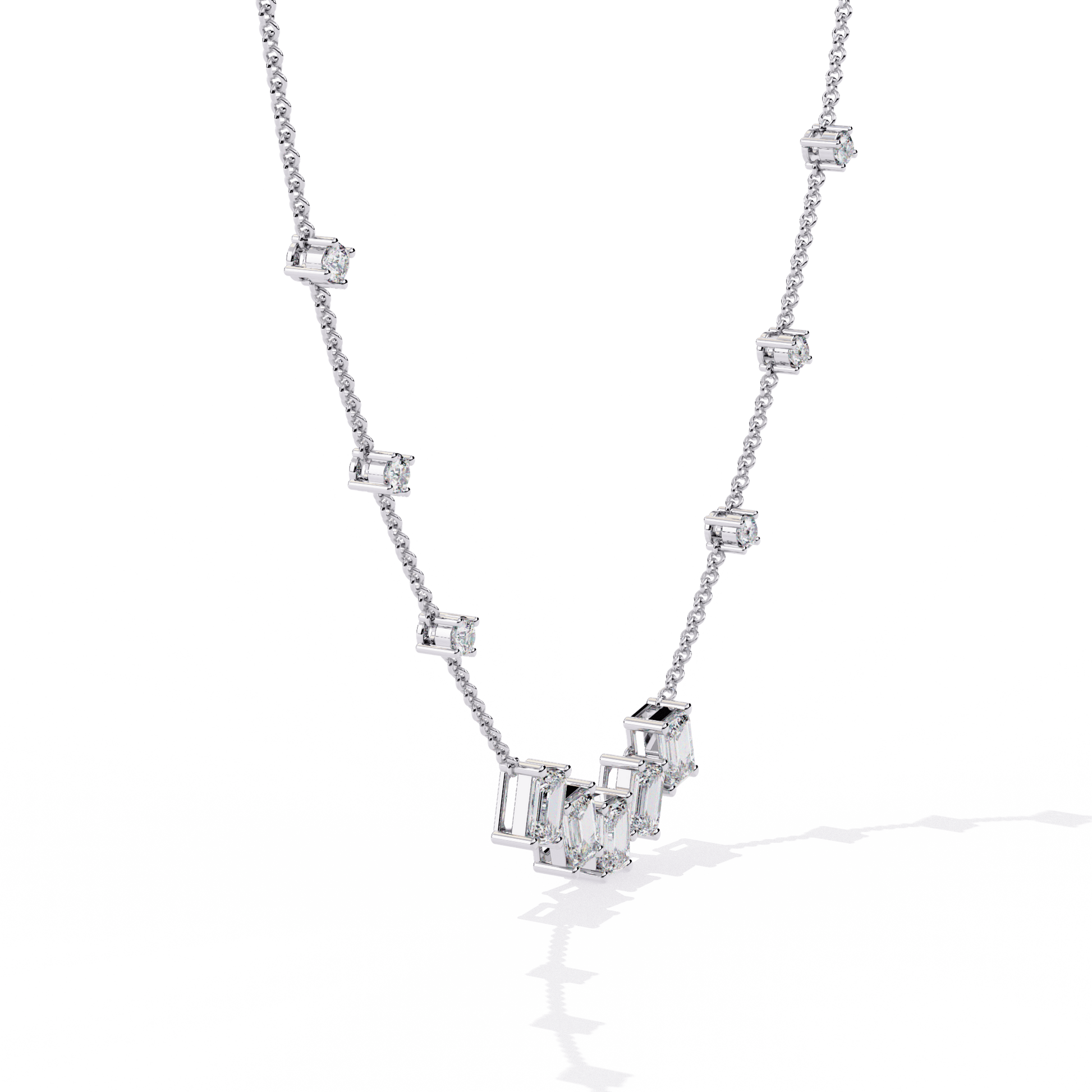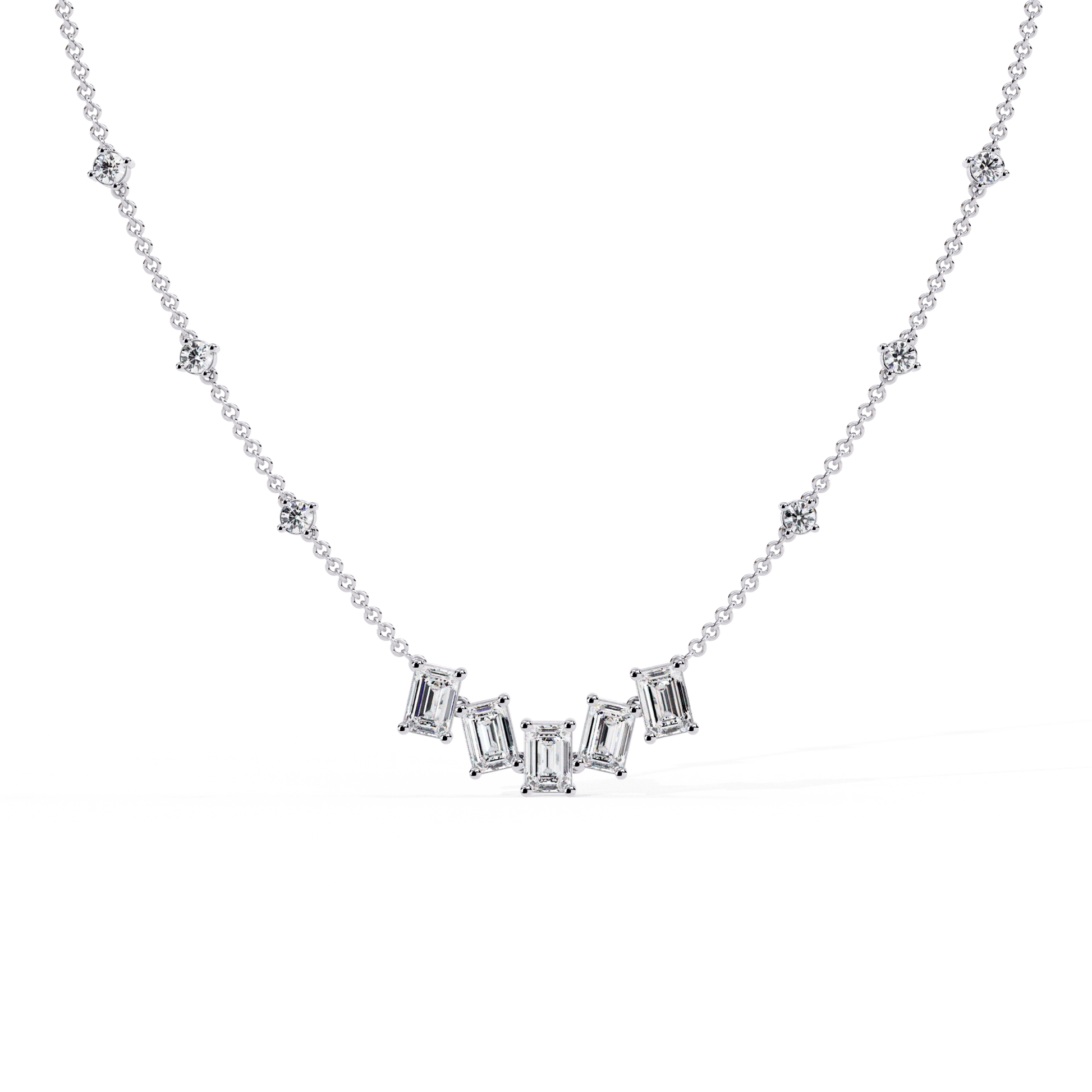 Nancy – Emerald-Cut and Round Diamond Necklace