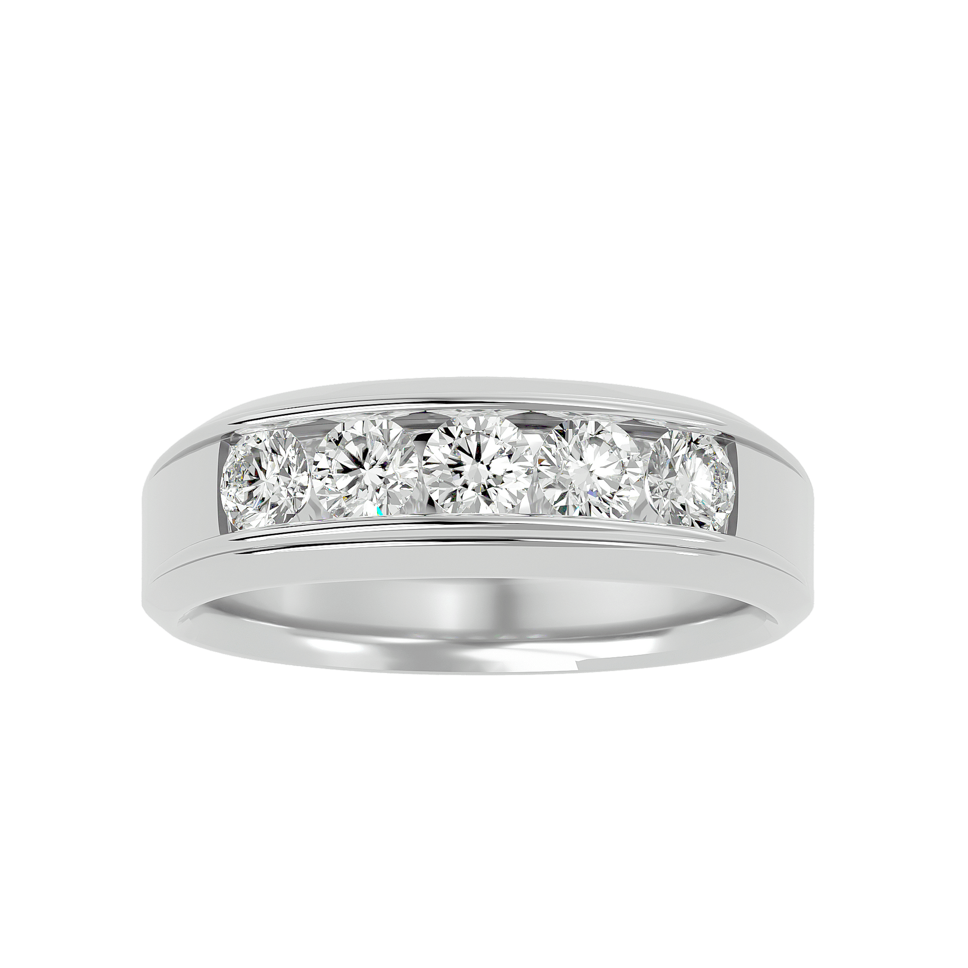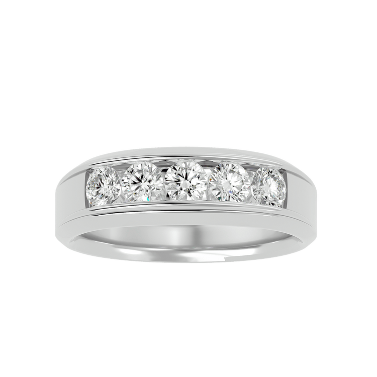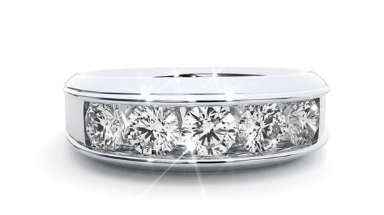Designed for the man who exudes quiet strength and refined taste, Nico is a statement of understated luxury. This striking band features a channel-set row of five brilliant round diamonds, totaling approximately 1.3 carats, running through the center of the band. The seamless setting enhances the diamonds' brilliance while ensuring a sleek, modern silhouette.