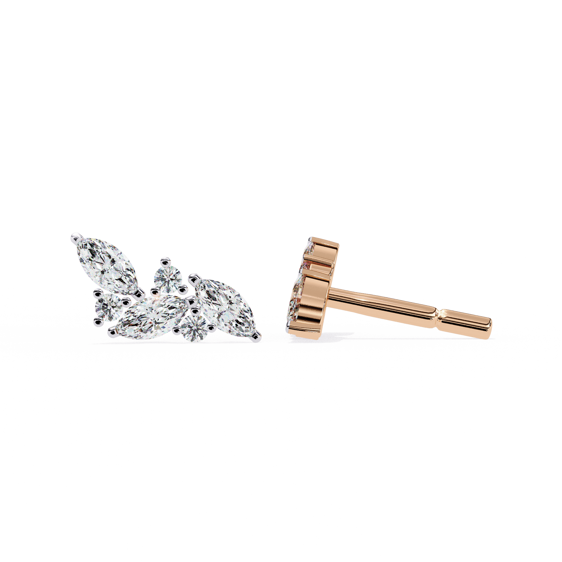 – Marquise and round-cut diamond studs