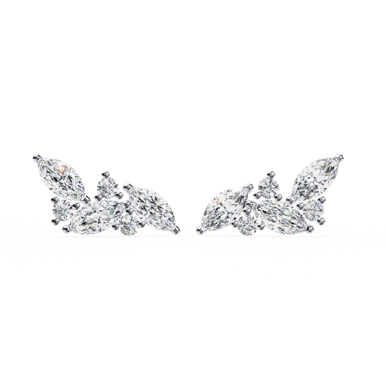 A bold interpretation of lightness and motion, the Sakina studs are crafted in a graceful feather-like silhouette. Marquise-cut diamonds sweep outward from the center, accented by brilliant round diamonds, creating an airy, sculptural composition. Designed to trace the natural curve of the ear, these studs evoke elegance in flight — effortless, radiant, and unmistakably refined.