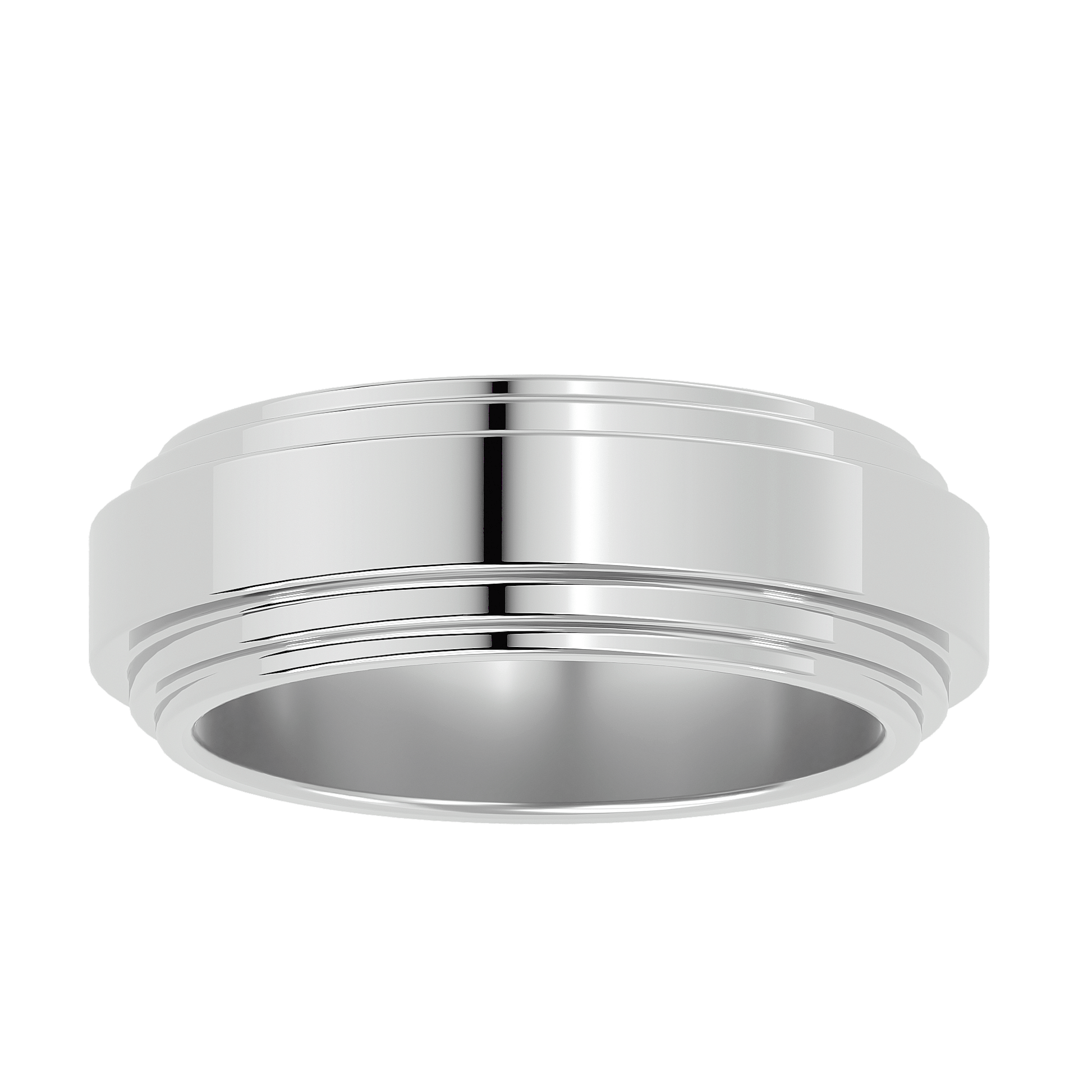 For the man who values clean lines and thoughtful details, Sebastian is a wedding band that merges classic design with contemporary structure. The polished finish enhances its sleek look, while the three parallel grooves add subtle dimension and depth.