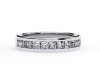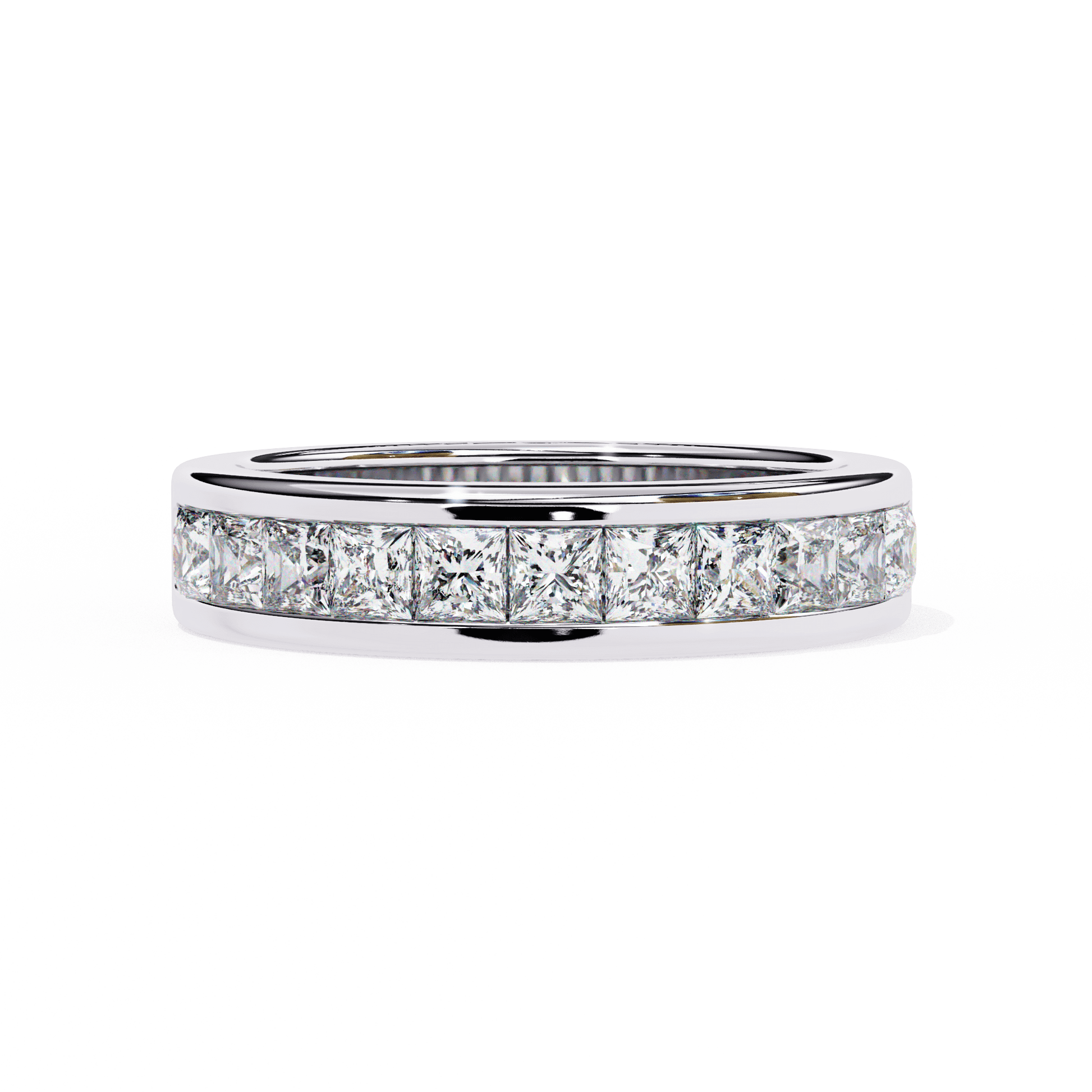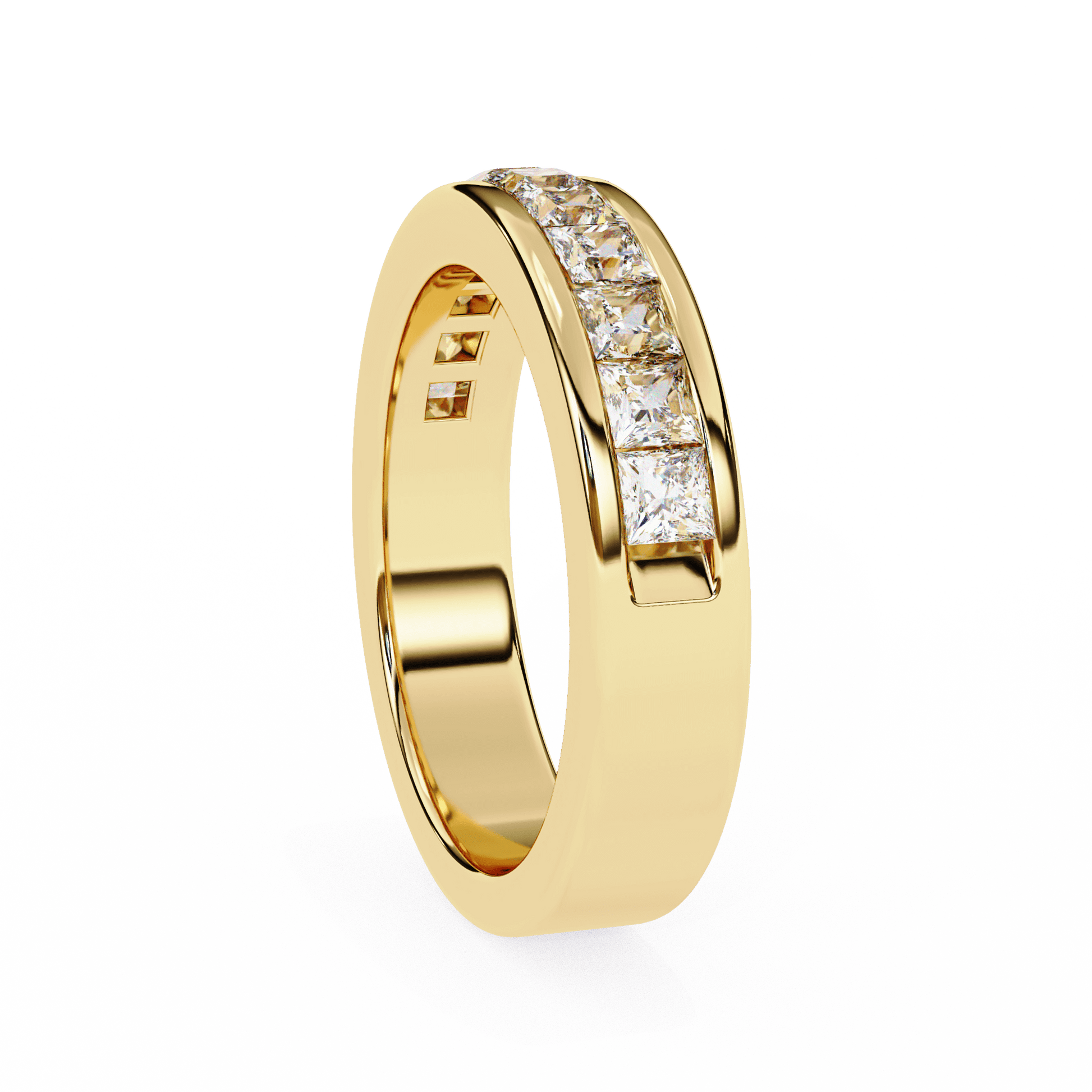 Refined elegance meets brilliance in the Selena band. This classic half-eternity design features a seamless row of princess cut diamonds, set within a sleek channel setting for a polished, uninterrupted sparkle. Crafted for both durability and beauty, Selena's structured design ensures a smooth fit, making it the perfect wedding band or stacking piece.