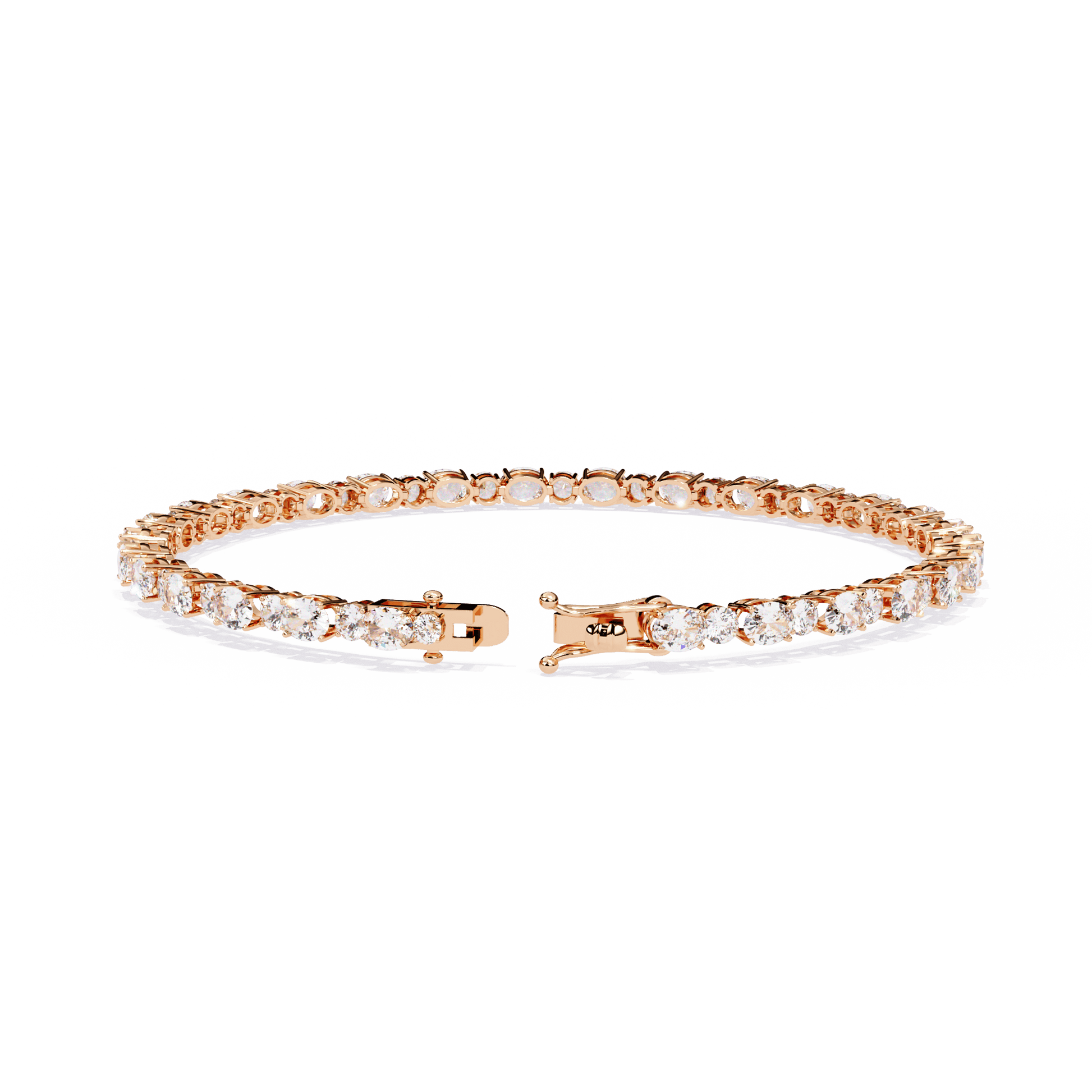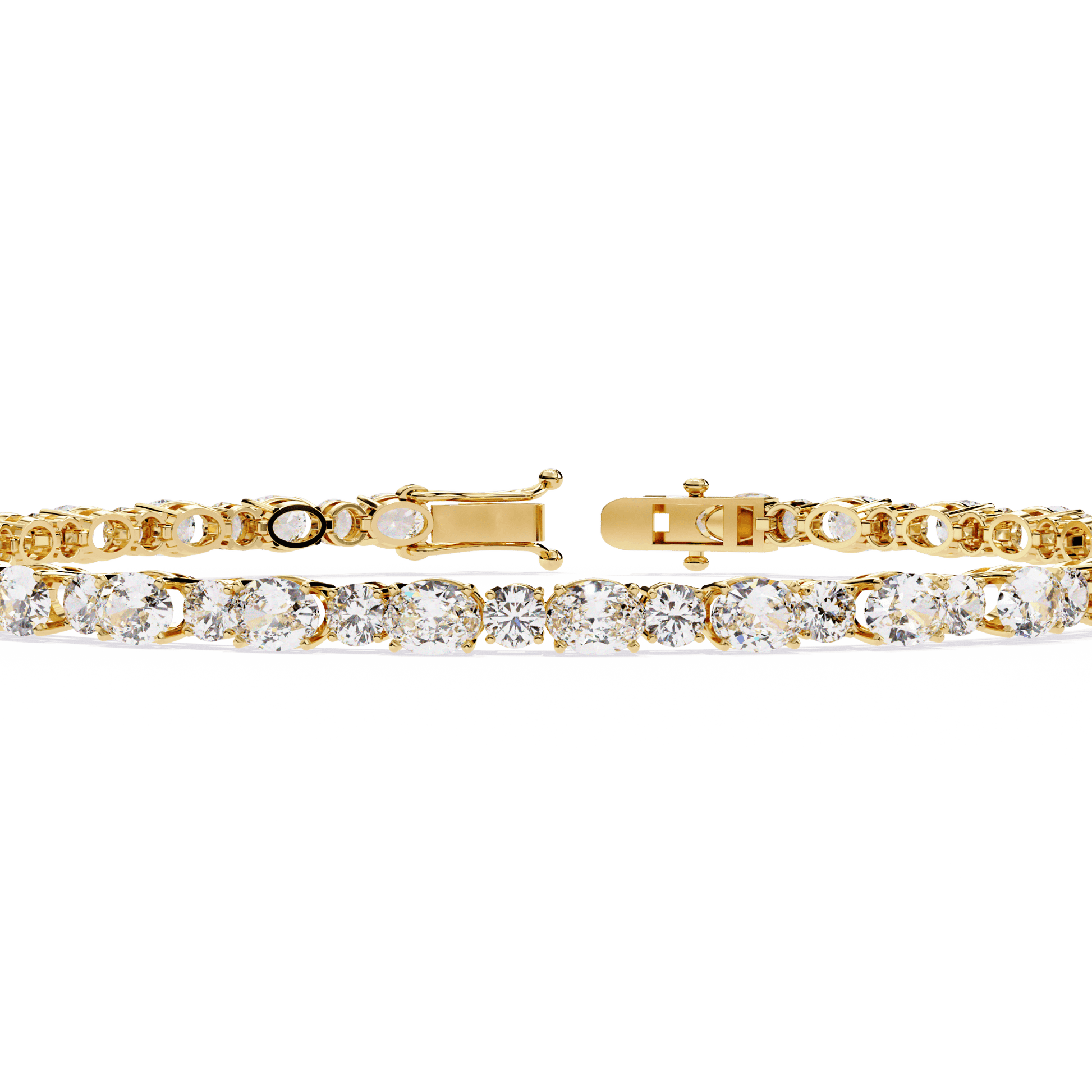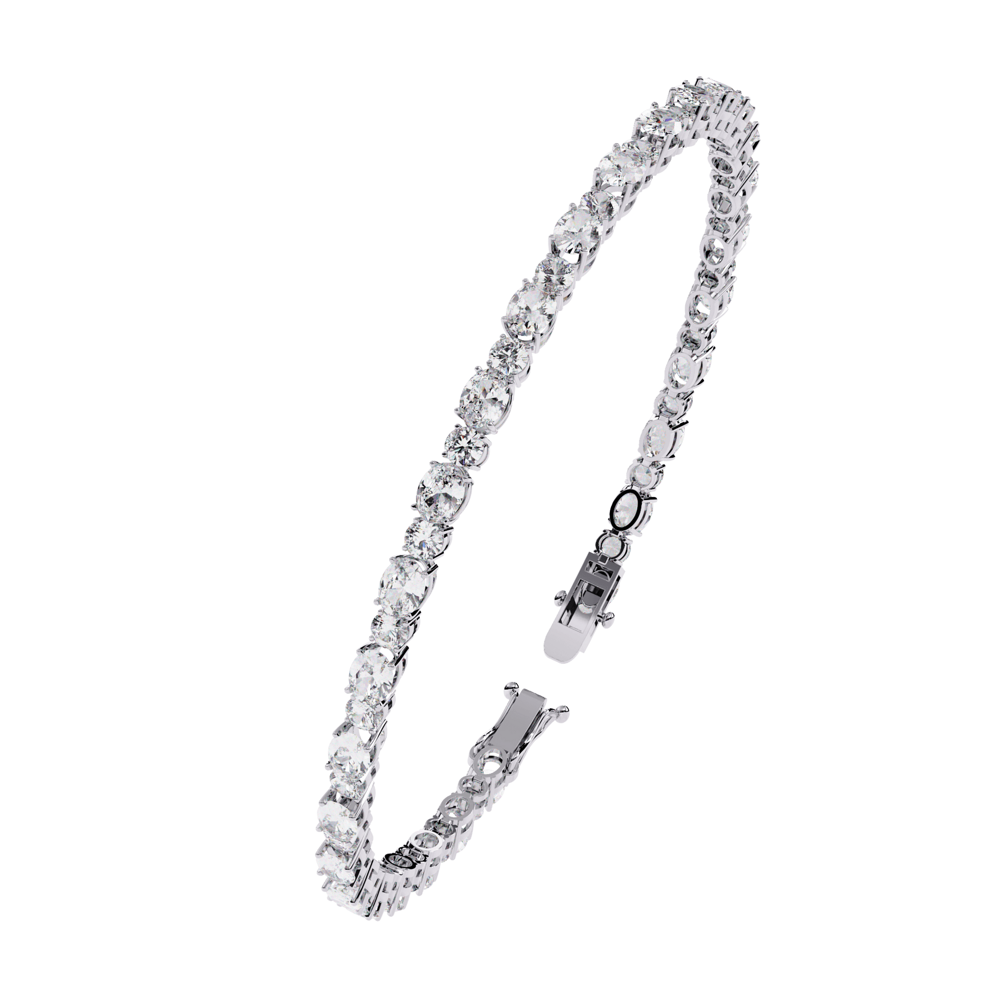– Alternating oval (4x3mm) and round-cut diamonds (2.5mm)