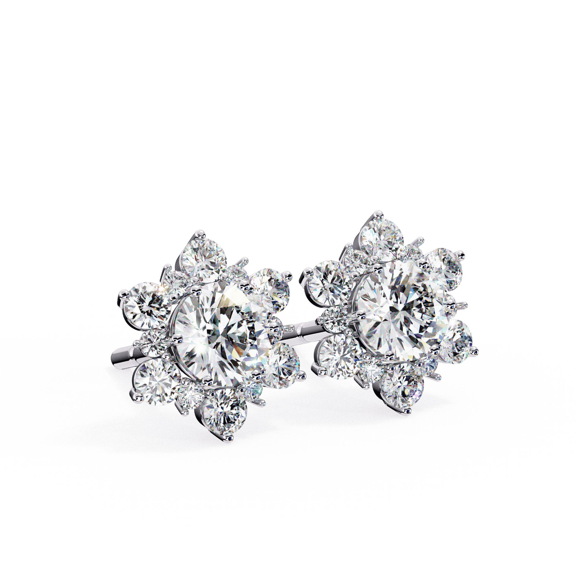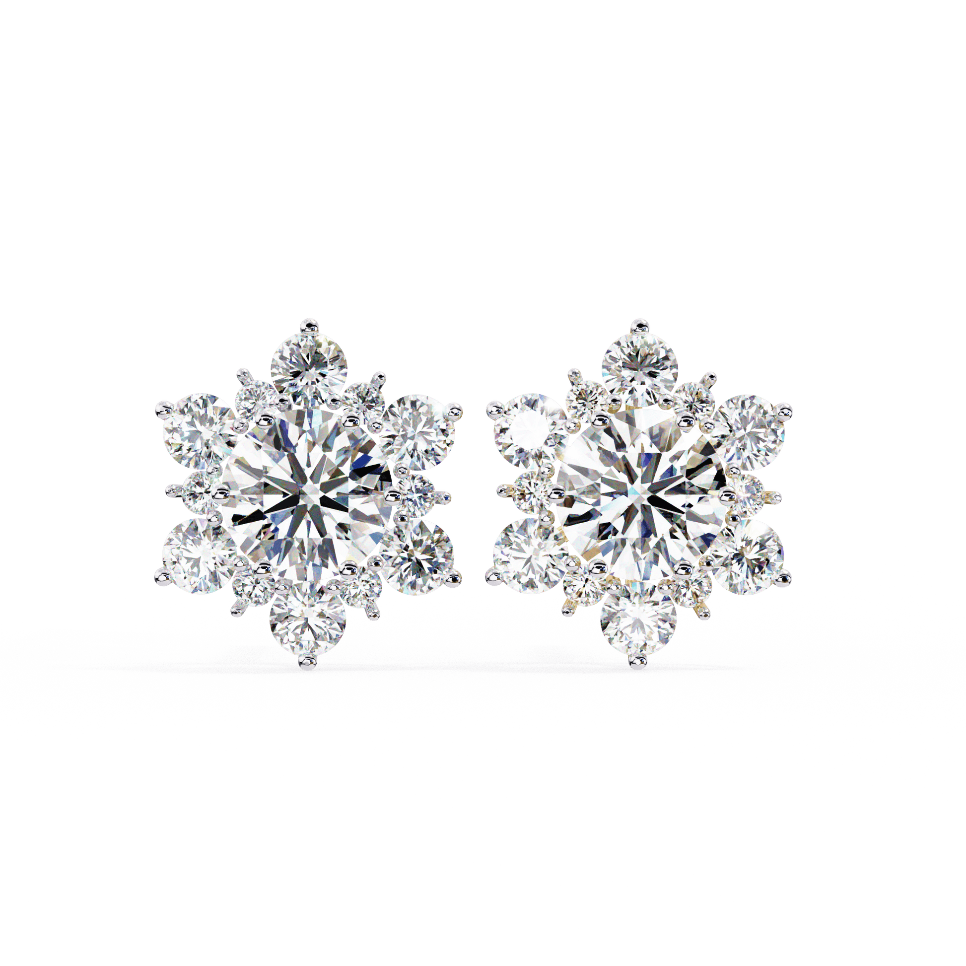 A delicate nod to nature’s most fleeting beauty. Snow features a luminous round-cut diamond, framed in a dazzling snowflake-inspired design of round diamonds. Each accent is meticulously set to create a dimensional snowflake effect, offering radiant sparkle from every angle. Elegant and eye-catching, these earrings bring a refined, wintry charm to any ensemble.