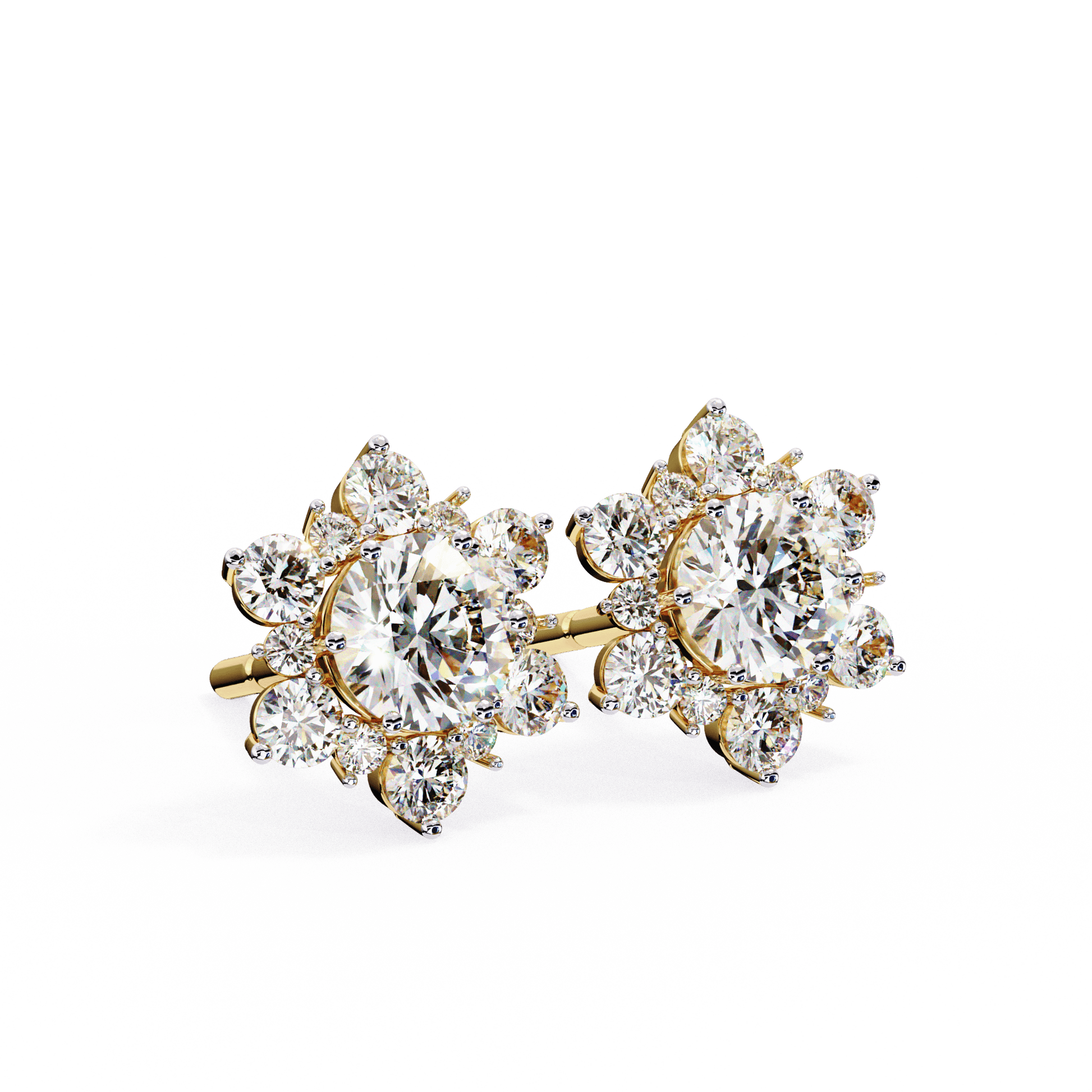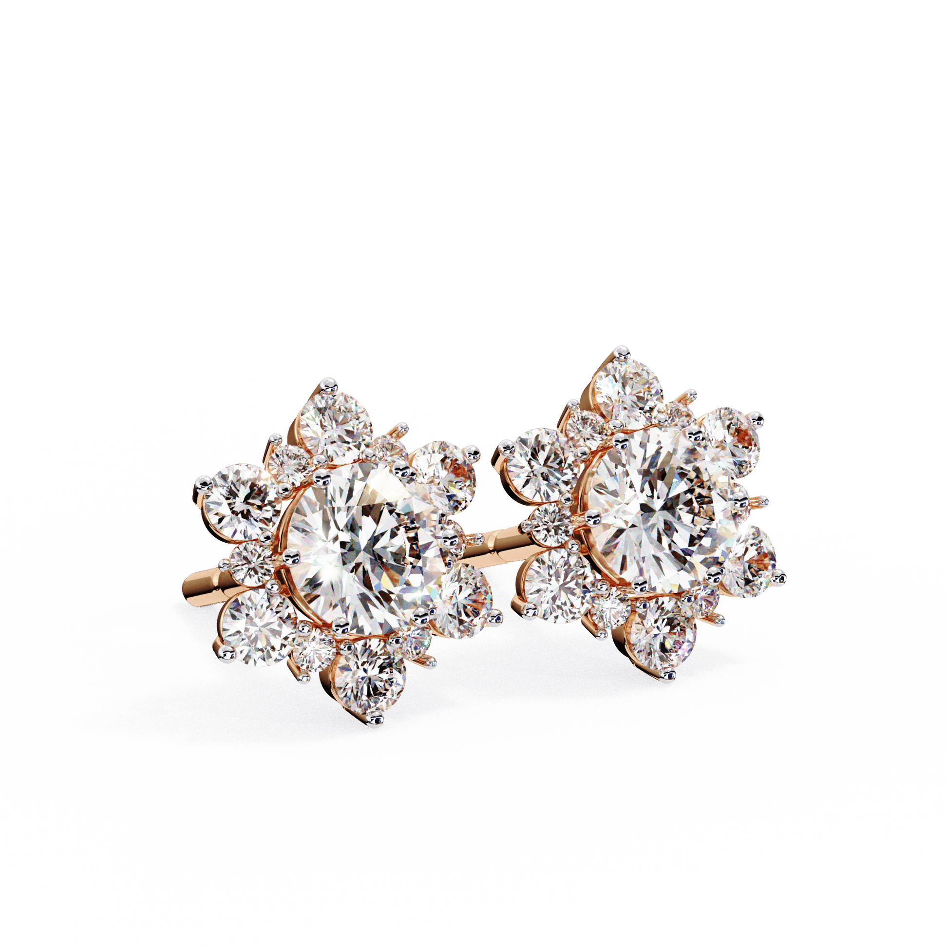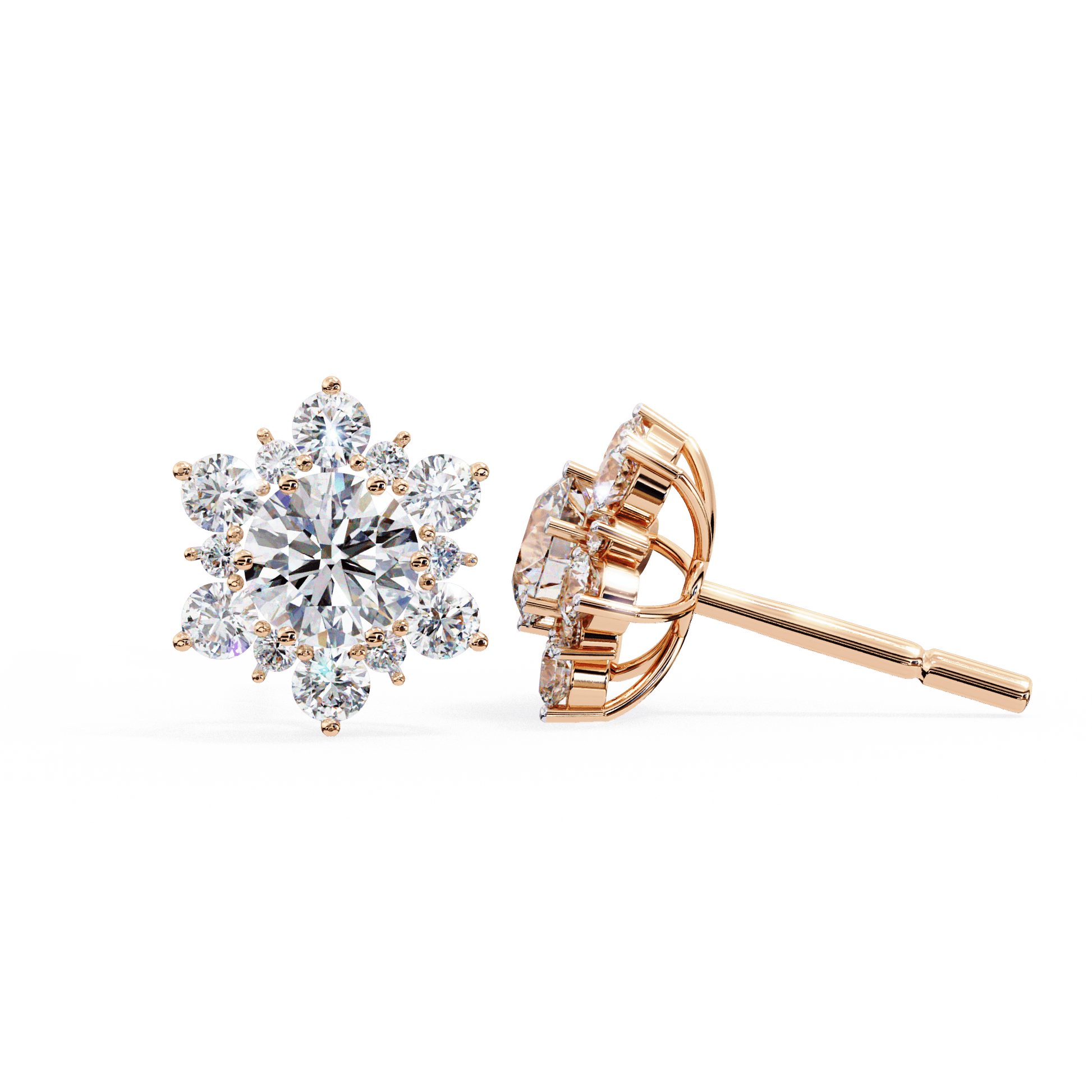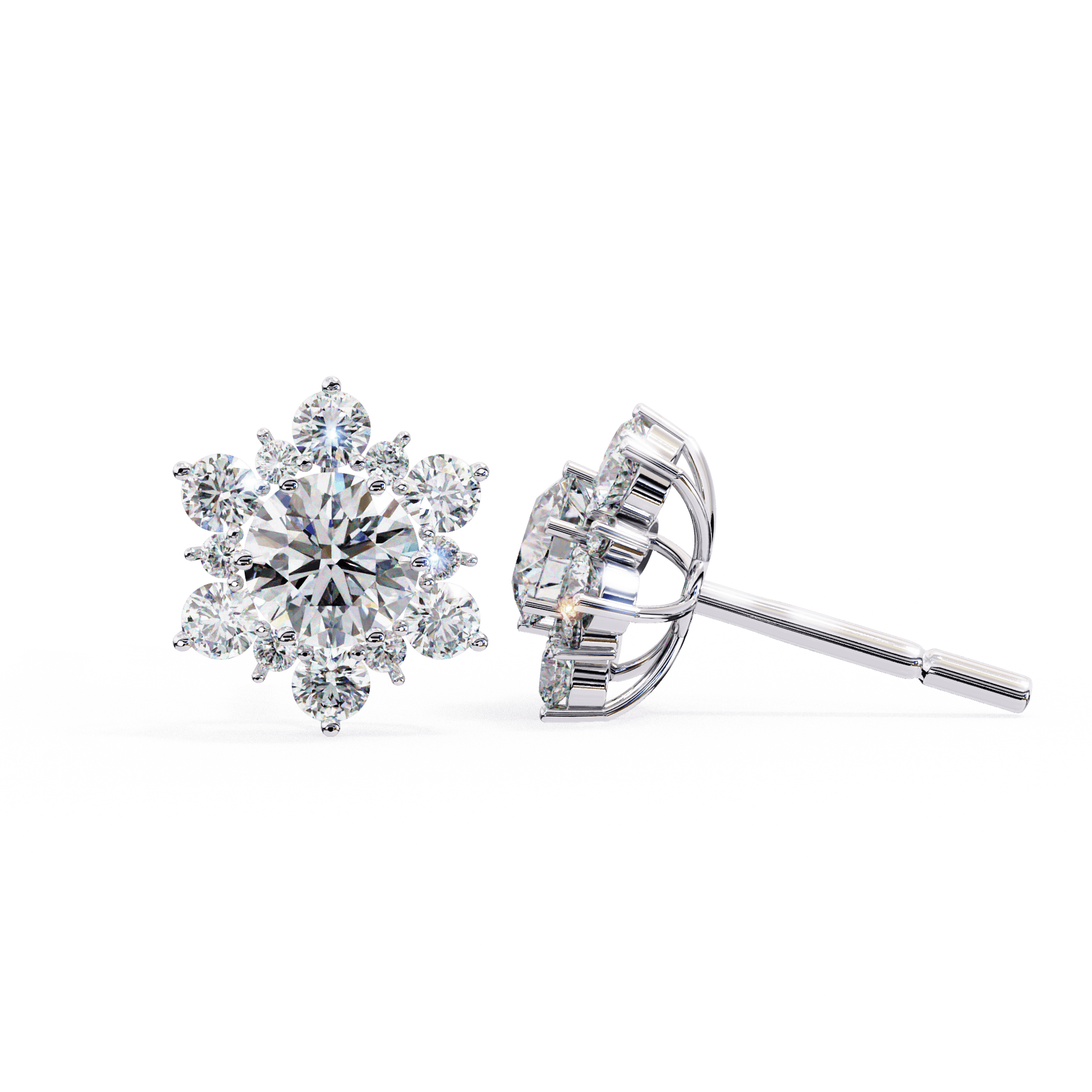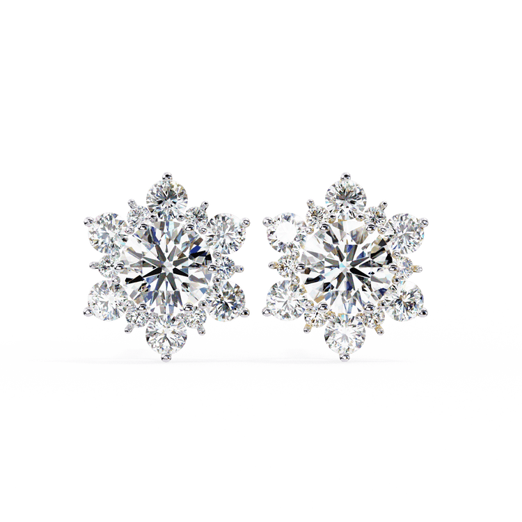 Snow- Round Diamond Floral Halo Stud Earrings