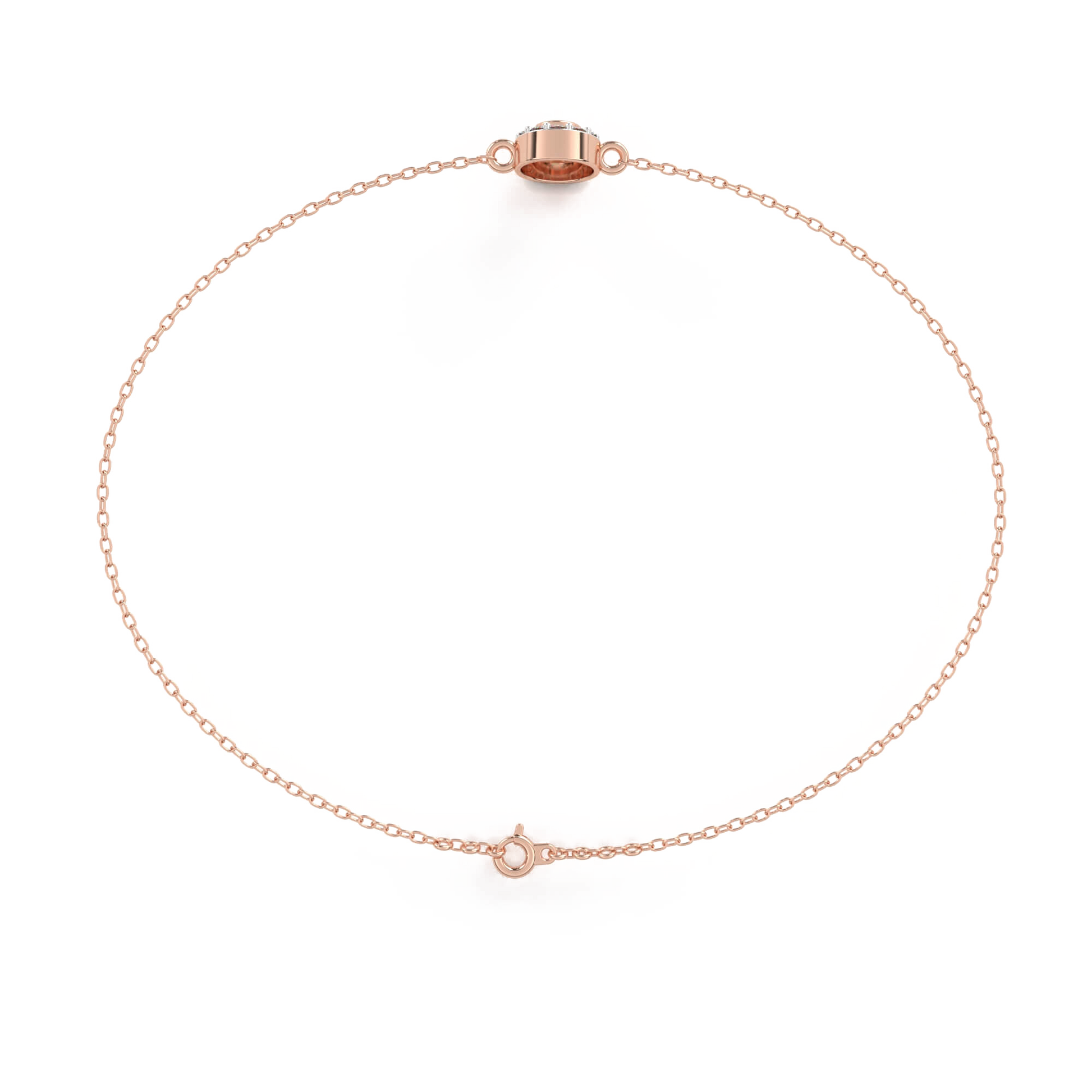 Understated yet radiant, Teresa is a refined diamond bracelet that balances everyday elegance with timeless charm. At its heart is a bezel-set round diamond, surrounded by a delicate single halo of pavé-set diamonds. The circular silhouette is sleek and modern, with soft brilliance that catches the light from every angle.